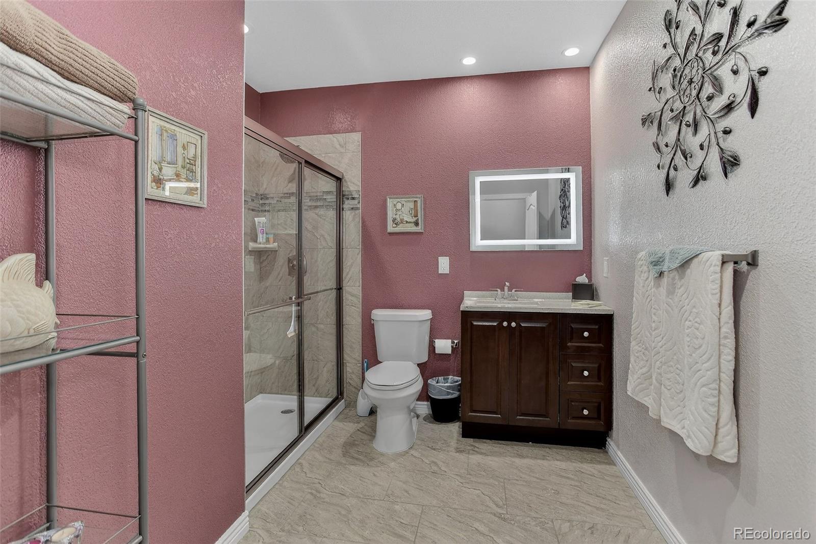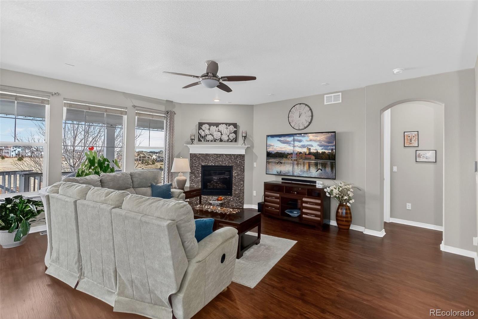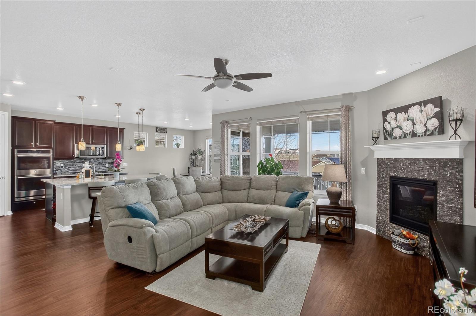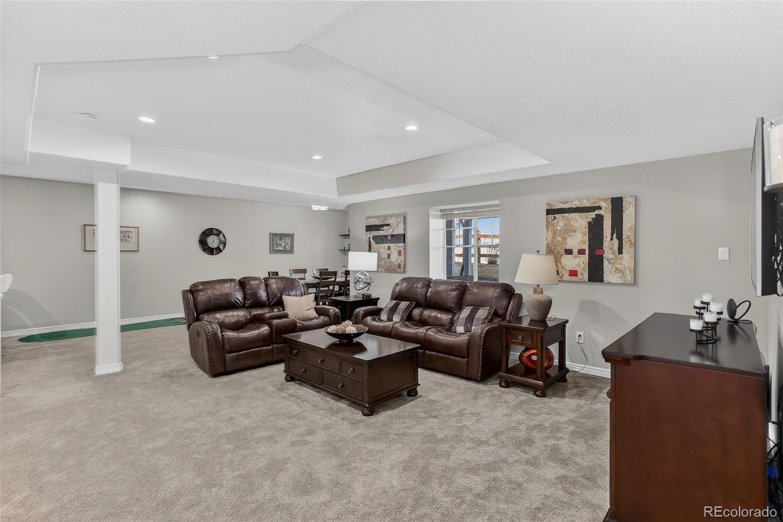Impeccably maintained and exceptionally clean, this stunning 4-bedroom, 3-bath home offers comfort, space, and breathtaking views of downtown Denver. From the moment you arrive, the charming front porch welcomes you in. Step inside to an inviting open floor plan designed for both everyday living and entertaining. The spacious kitchen features granite countertops, a double oven, a brand-new dishwasher, and plenty of prep space for hosting with ease. The cozy fireplace anchors the main living area, creating a warm and inviting atmosphere. The large primary suite is a true retreat, complete with a luxurious 5-piece bath, walk-in large closet, and generous space to unwind. Two other bedrooms and main floor laundry round out the main level. Downstairs, the beautifully finished basement expands your living area with a massive family room, wet bar, an additional bedroom with a large walk-in closet, and a ¾ bath—perfect for guests or multi-generational living. Two separate storage areas provide plenty of room for organization. Step outside to the oversized back deck and take in the amazing views of downtown Denver—ideal for relaxing evenings or entertaining under the Colorado sky. The 3-car finished garage is a standout feature, complete with built-in cabinets and a painted floor for a clean, polished look. This home truly checks every box: location, views, condition, and thoughtful upgrades throughout. Don’t miss your opportunity to make it yours!