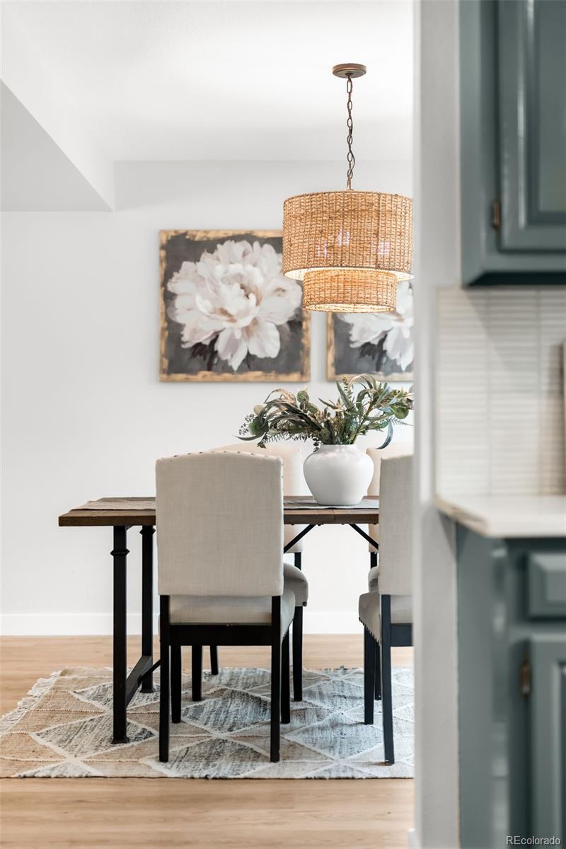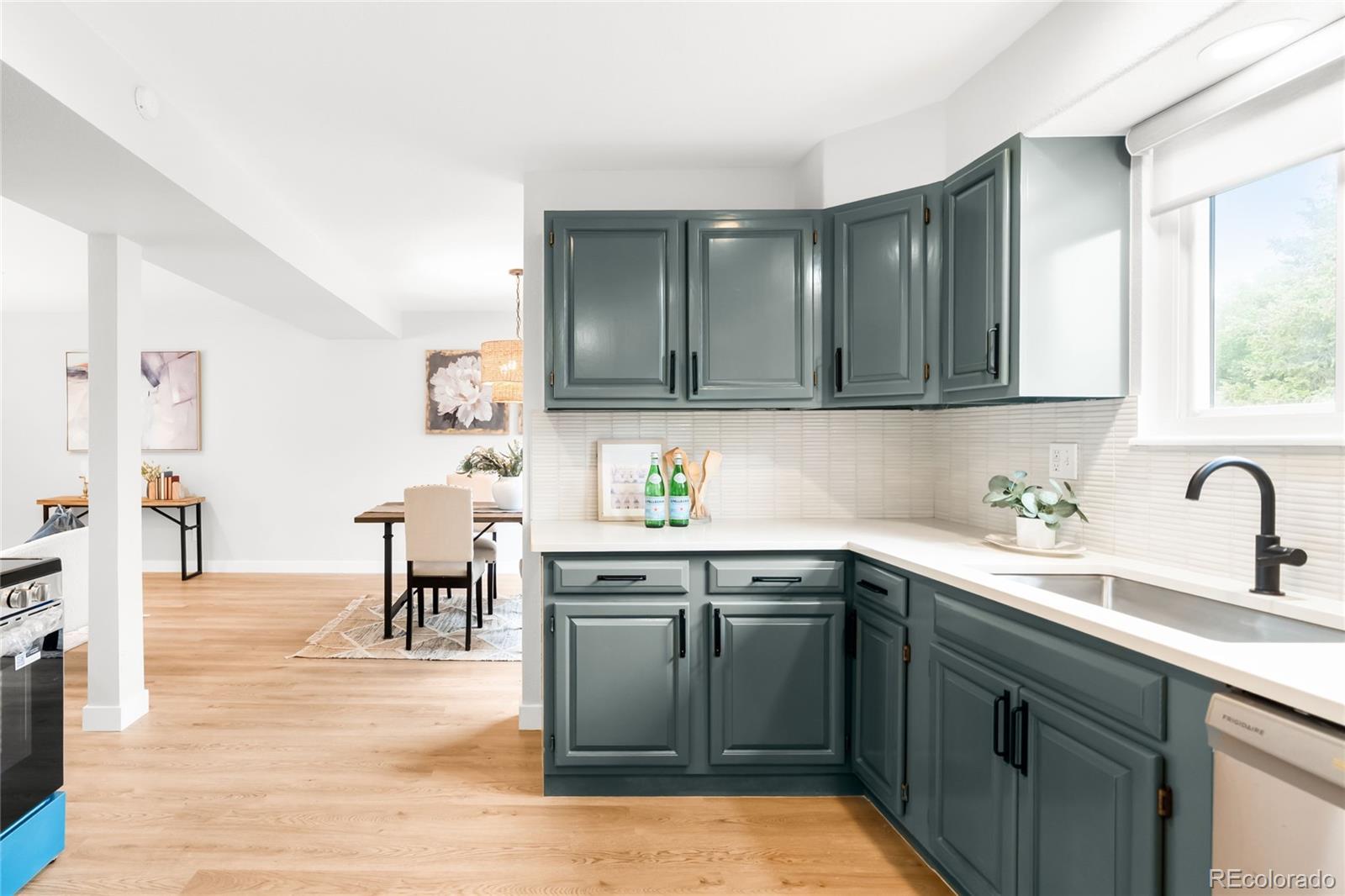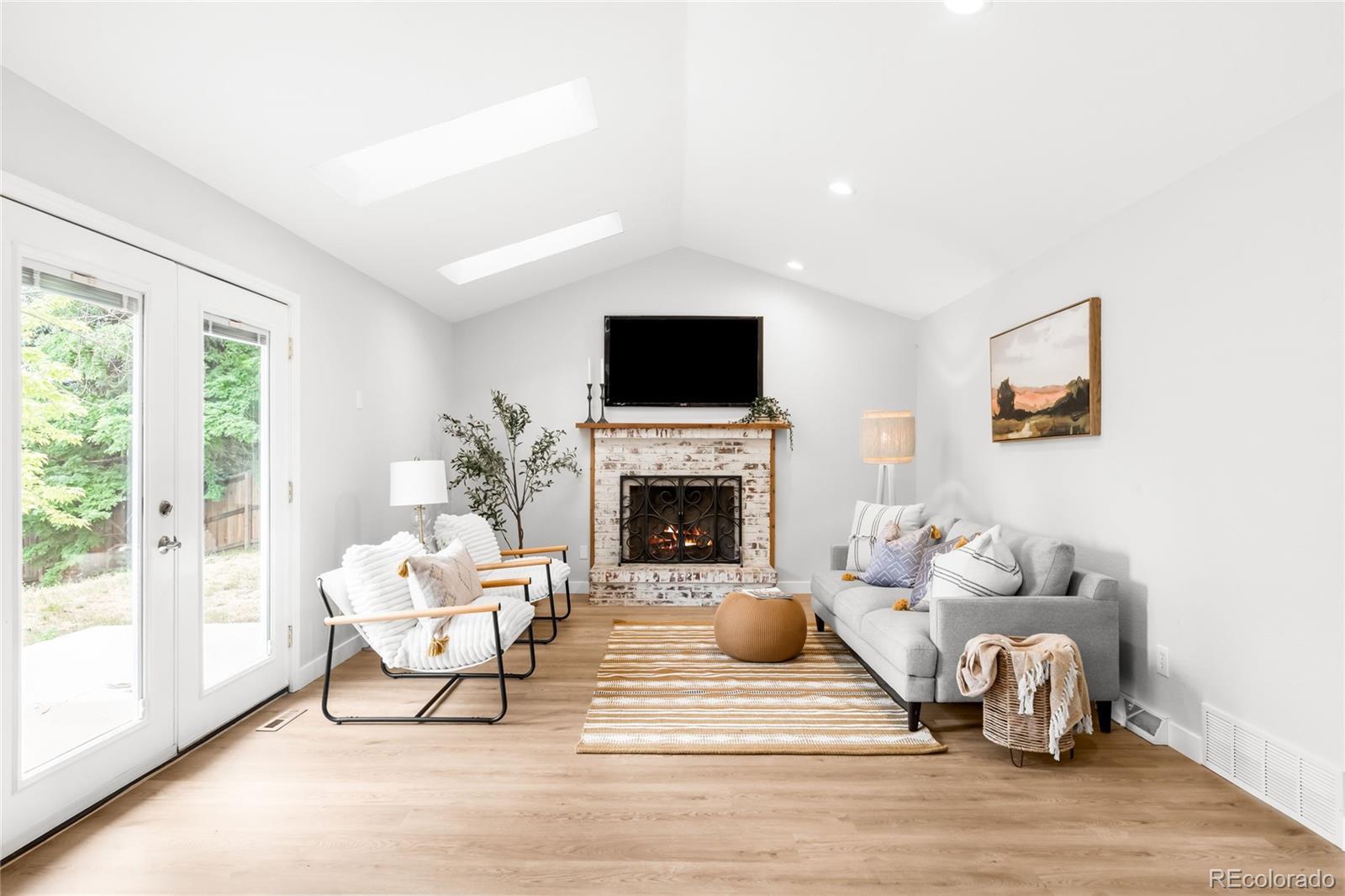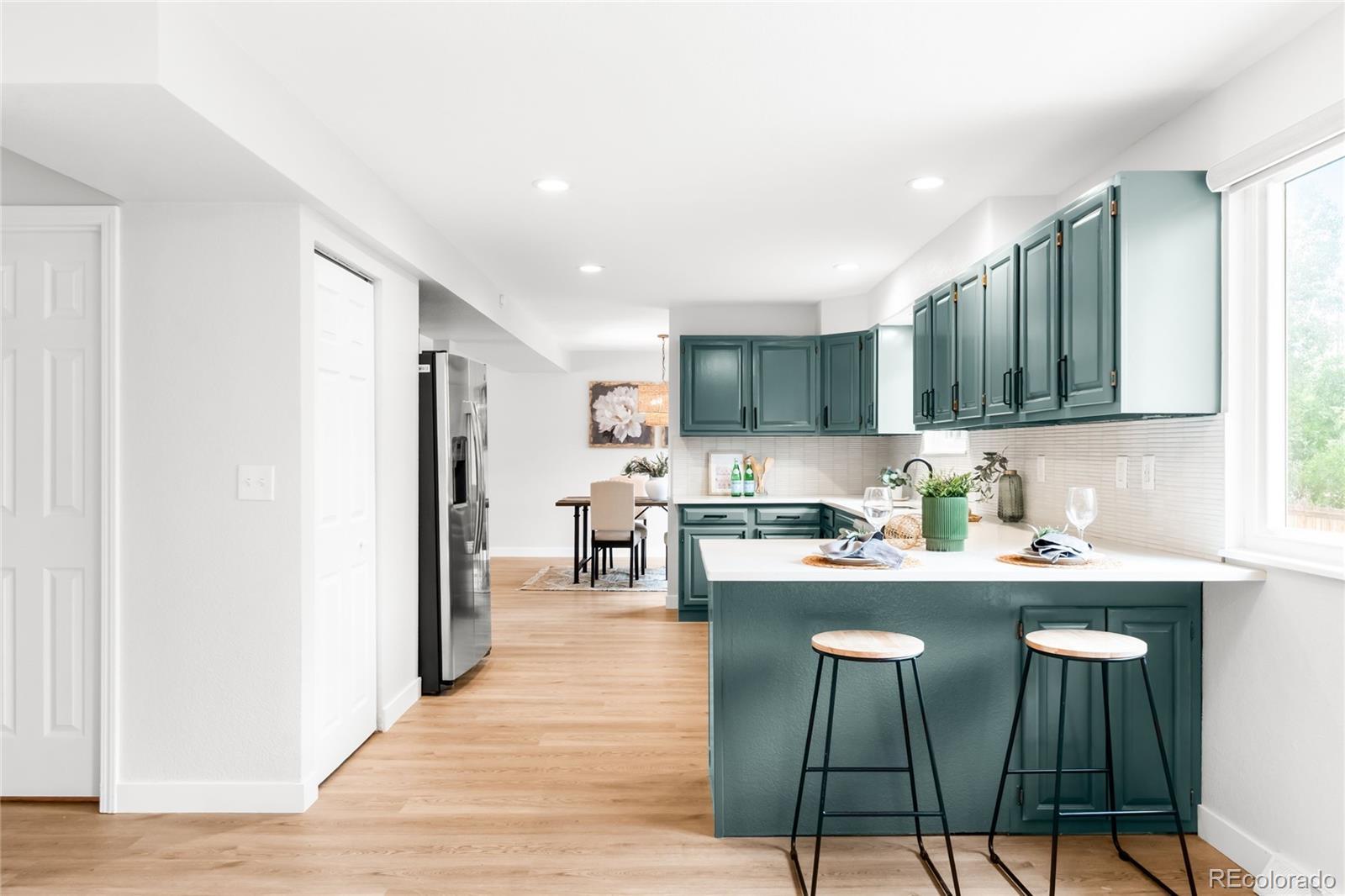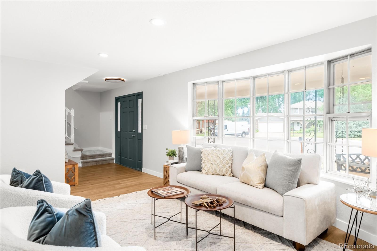 Nestled on a peaceful cul-de-sac in Ridgeview Hills North, this beautifully updated residence offers space, style and an ideal location. Set on a generous corner lot with mature trees and bonus RV or boat parking, this home welcomes with a covered front porch and timeless curb appeal. New flooring and fresh paint create a crisp, modern canvas throughout a bright, thoughtfully designed layout. A formal living room is bathed in natural light from a wide bay window, while a statement light fixture crowns the dining room. The updated kitchen shines with new appliances, ample cabinetry and a peninsula with seating — perfect for casual meals. A vaulted living area with skylights and a cozy fireplace adds warmth and volume. The spacious primary suite includes an en-suite bathroom and generous closet space. Outside, a large, fenced-in backyard offers endless potential for personalization. Just one block from the elementary school, this home presents an exceptional opportunity in Centennial.