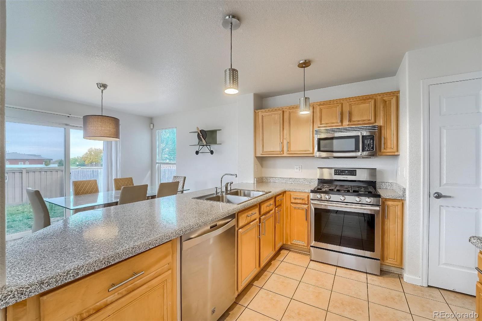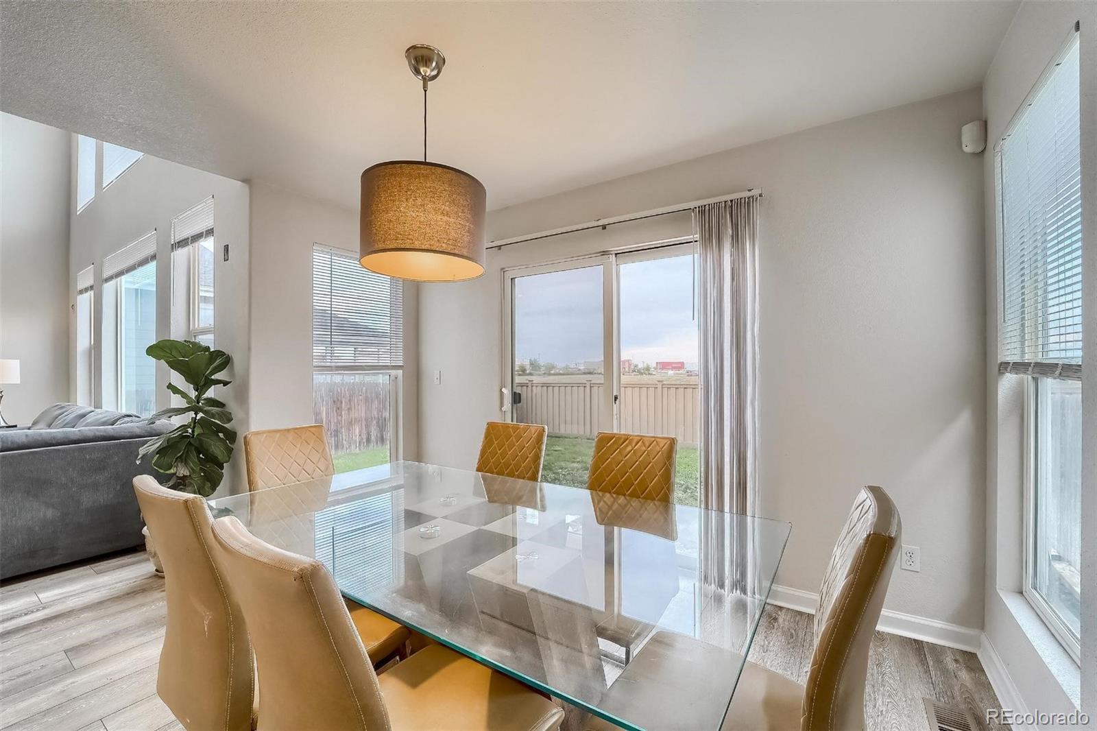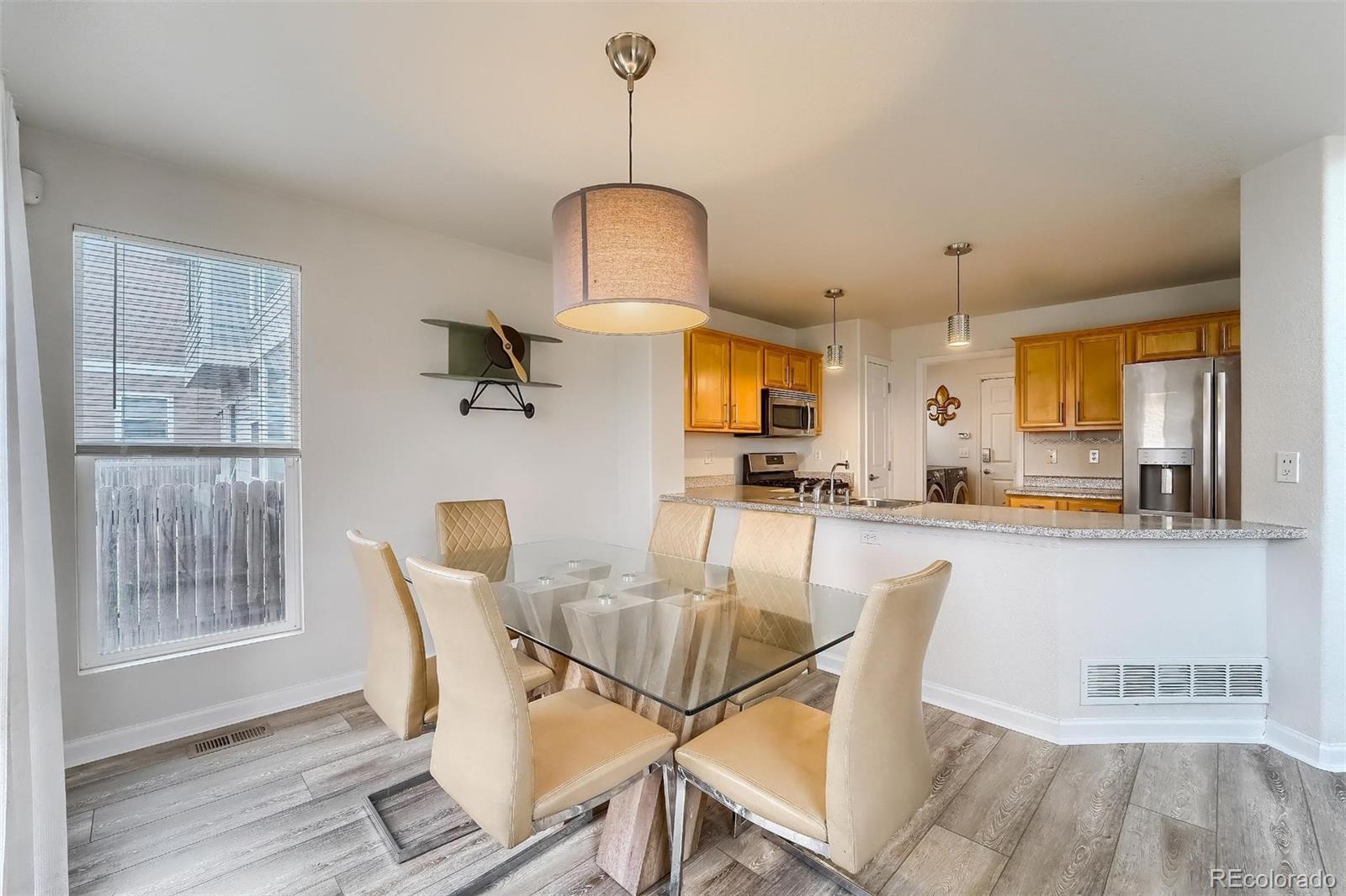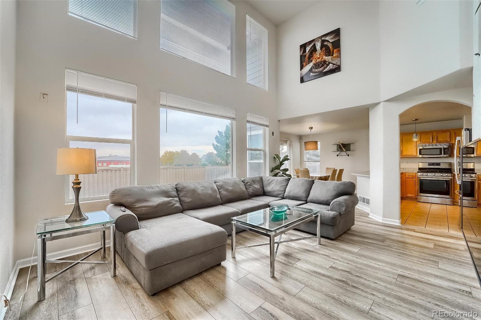New carpet has been installed! One of the best values in the area! Here's your chance to own a gorgeous home in the convenient neighborhood of Skylake Ranch in Thornton. This 3 bedroom, 3 bathroom, 2 car garage home is a winner for those looking for a comfortable amount of living space, lots of natural light, views of morning sunrises, and soaring ceilings (and for those looking to assume a VA loan with a 2.25% interest rate!). Be wow'd by the large windows, high ceilings, and luxury vinyl plank flooring as you walk into the main living area. The open floor plan provides an opportunity for the kitchen, dining area, and living area to nicely flow together so you can comfortably entertain guests and family! This kitchen features the ideal natural gas stove/oven (chefs, rejoice!), newer stainless appliances, refurbished countertops, and plenty of cabinet storage. The mudroom includes the washer/dryer, a closet, and access to the crawlspace (yes, more STORAGE even though there's no basement) and 2 car garage. A main floor half bath is convenient for everyone. Upstairs, the primary suite is spacious and features an ensuite bathroom with walk-in closet. An additional full bathroom is adjacent to two other bedrooms. Perfect for a home office set up as well. Need amenities nearby? Walk to the new and very popular Billy Birch pub and yard, Starbucks, Skylake Park, a daycare, and Anythink Library at Wright Farms. New paint, new blinds, cleaned carpets, cleaned air ducts, and a new AC as well!