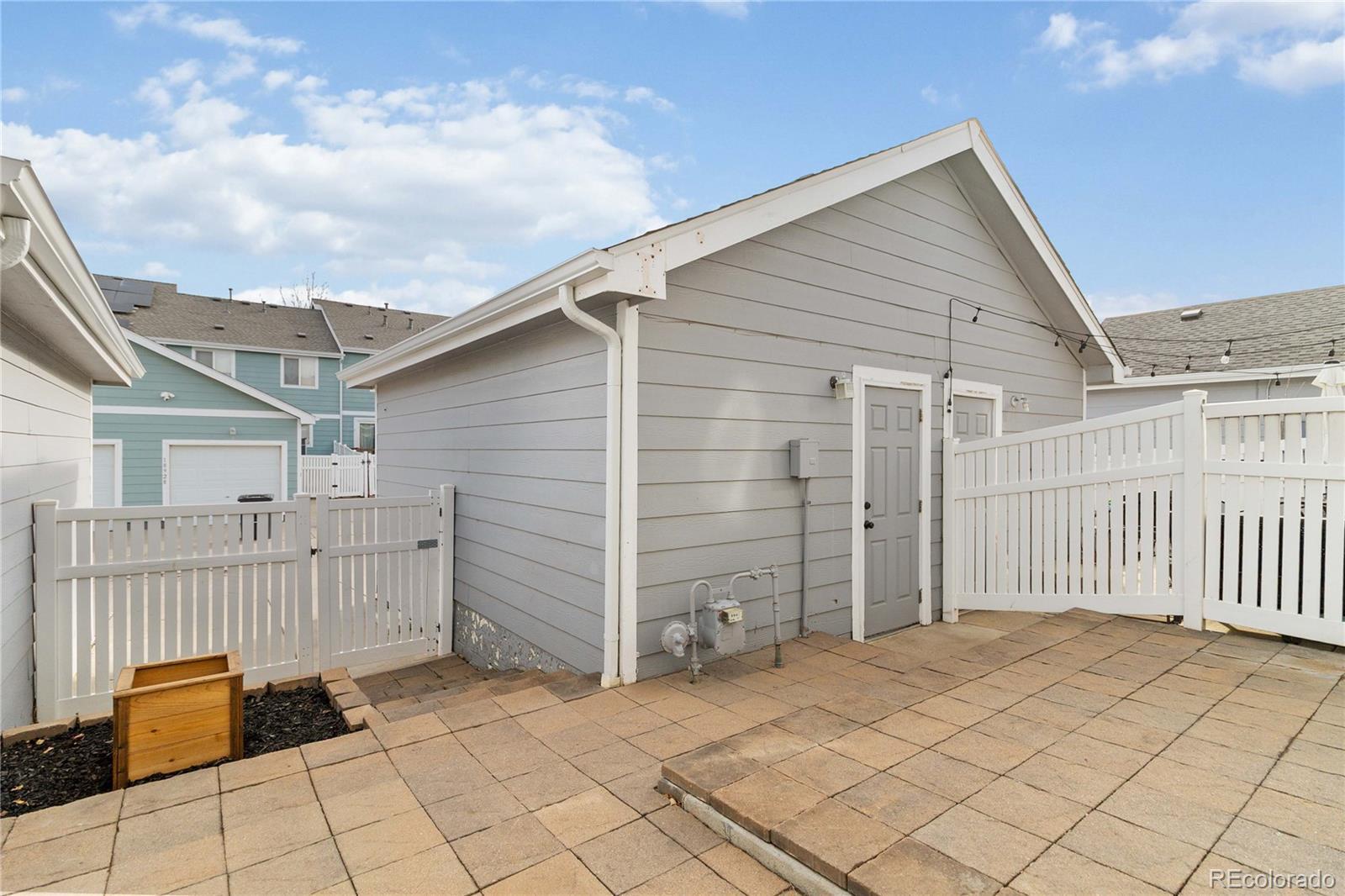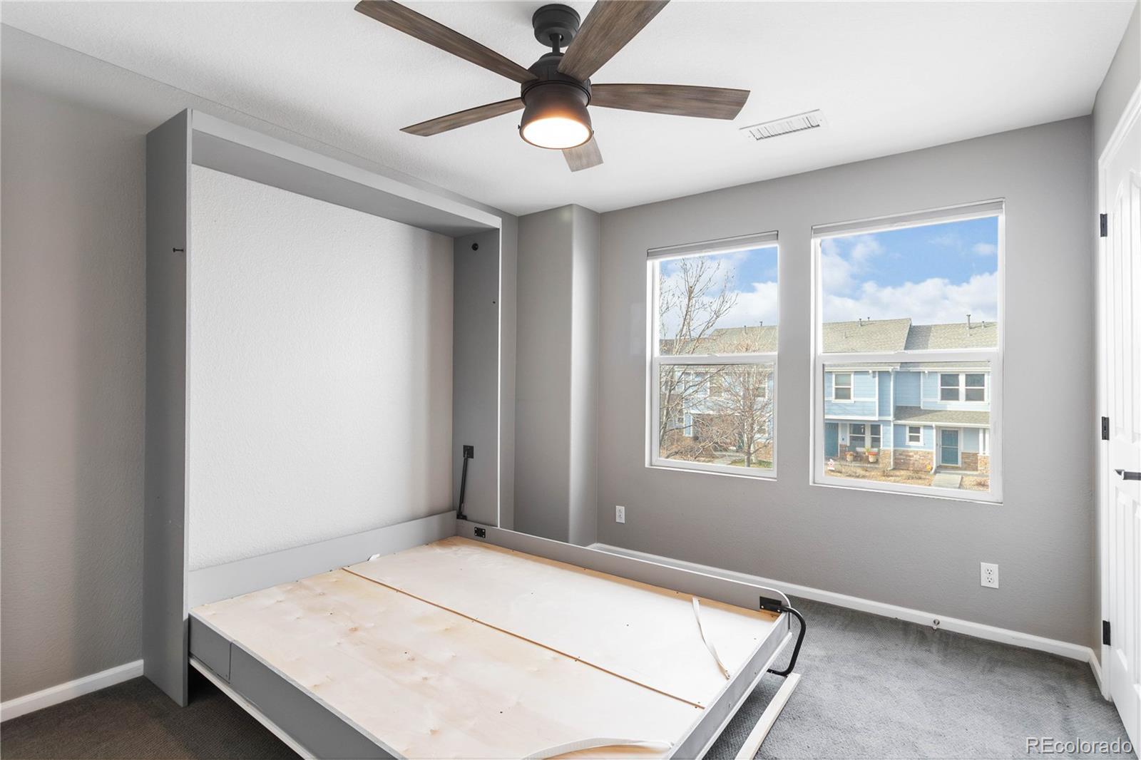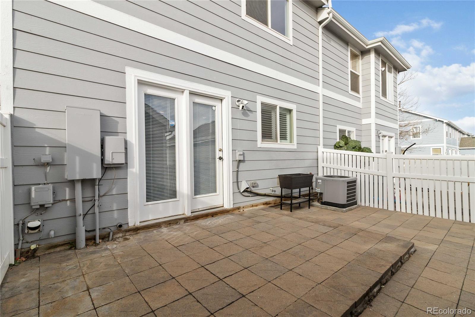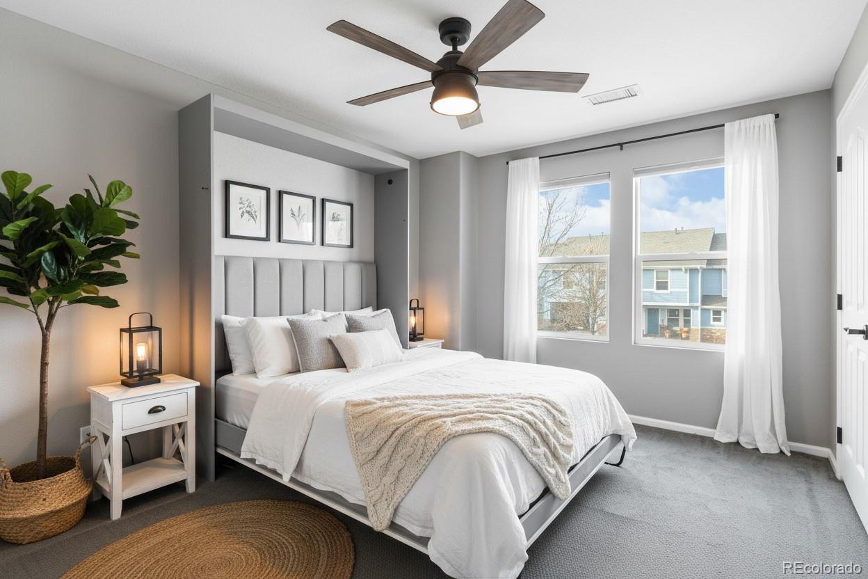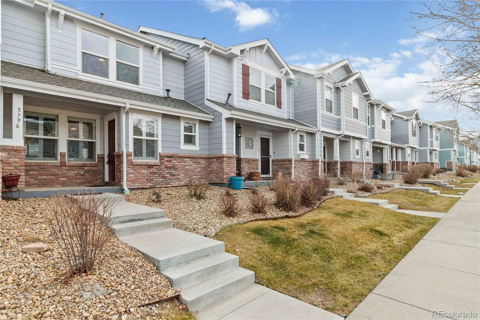 Welcome home to 5796 Biscay Street, a thoughtfully updated townhome in the heart of Green Valley Ranch, offering a comfortable blend of convenience, functionality, and easy everyday living. This light-filled, 2-bedroom, 3-bath, two-story home features an open-concept main floor where the family room flows naturally into a spacious kitchen with eat-in space, making it easy to host friends or unwind after a long day. The kitchen includes newer stainless-steel appliances and durable modern LVP flooring throughout the main level, creating a clean and practical space built for real life. Custom window blinds add privacy and a finished look. A main-floor powder room adds everyday convenience, while the private, fenced patio just off the kitchen provides a great outdoor extension for morning coffee, grilling, or relaxing outside. A newer A/C unit, in-unit laundry with washer and dryer, and a detached one-car garage offer comfort and added storage. Upstairs, both bedrooms feature private ensuite bathrooms, a layout that works well for guests, roommates, or anyone who values separation and flexibility. The primary suite includes a built-in closet organizer, while the secondary bedroom offers a large walk-in closet and a built-in Murphy bed, allowing the space to easily serve as a guest room, home office, or both. The location adds everyday ease, just a half block from First Creek Playground, a few blocks from Single Tree Dog Park, and close to shopping, dining, and daily errands around Green Valley Ranch. With quick access to Denver International Airport and major routes, including I-70, I-76, Highway 225, and E-470, commuting and travel throughout Denver are simple and efficient. This home qualifies for the Community Reinvestment Act, providing 1.75% of the loan amount, with a cap of $7,000, as a credit toward the buyer’s closing costs, pre-paids, and discount points. Contact listing agent for more details.