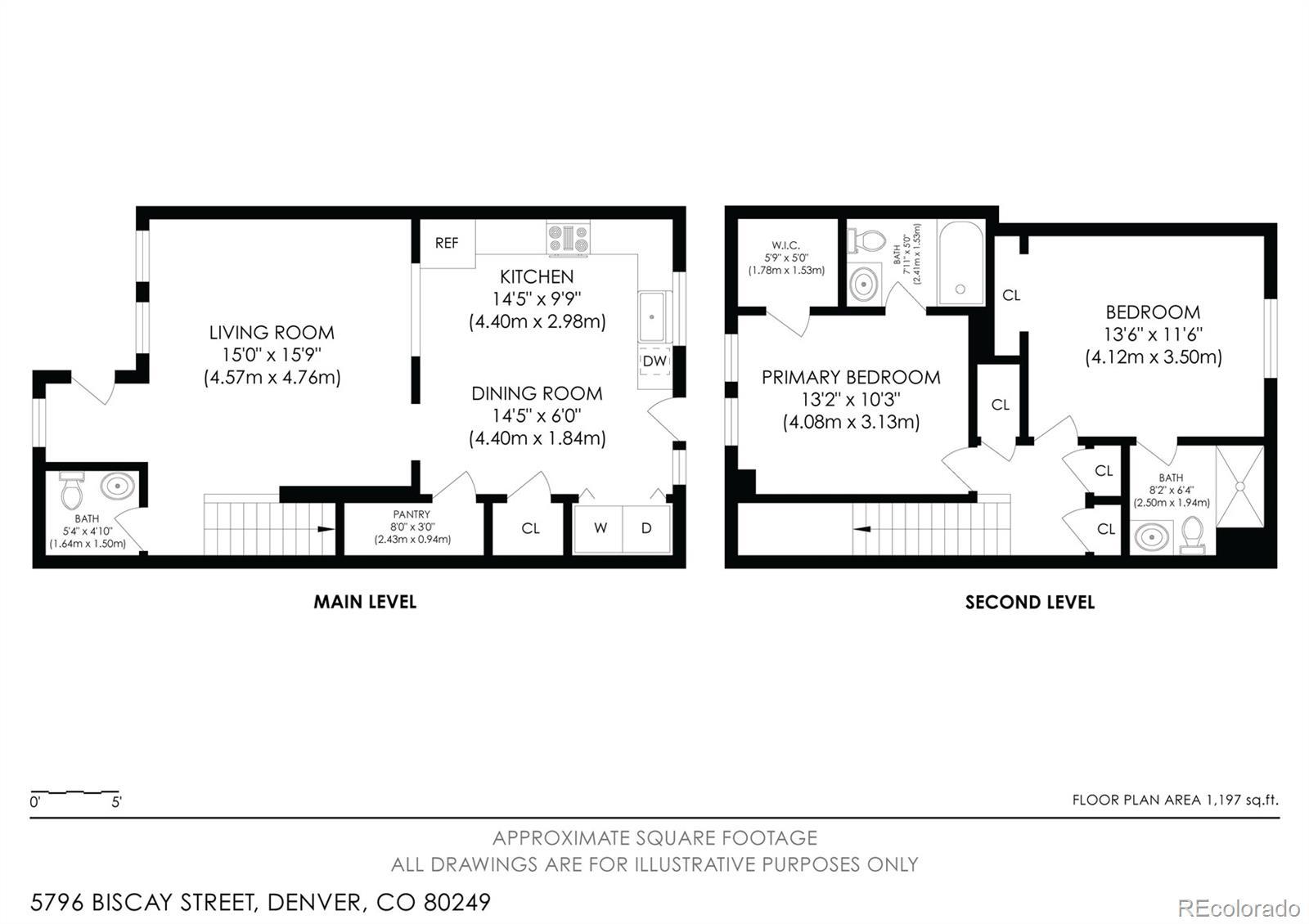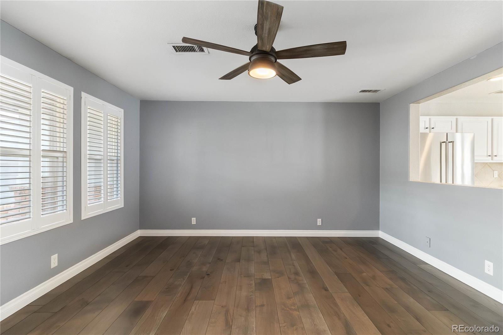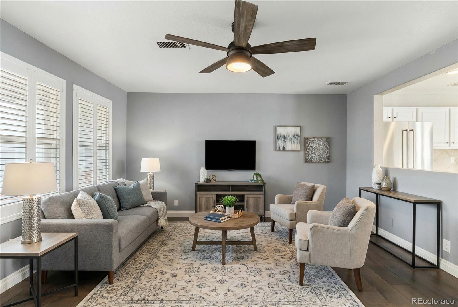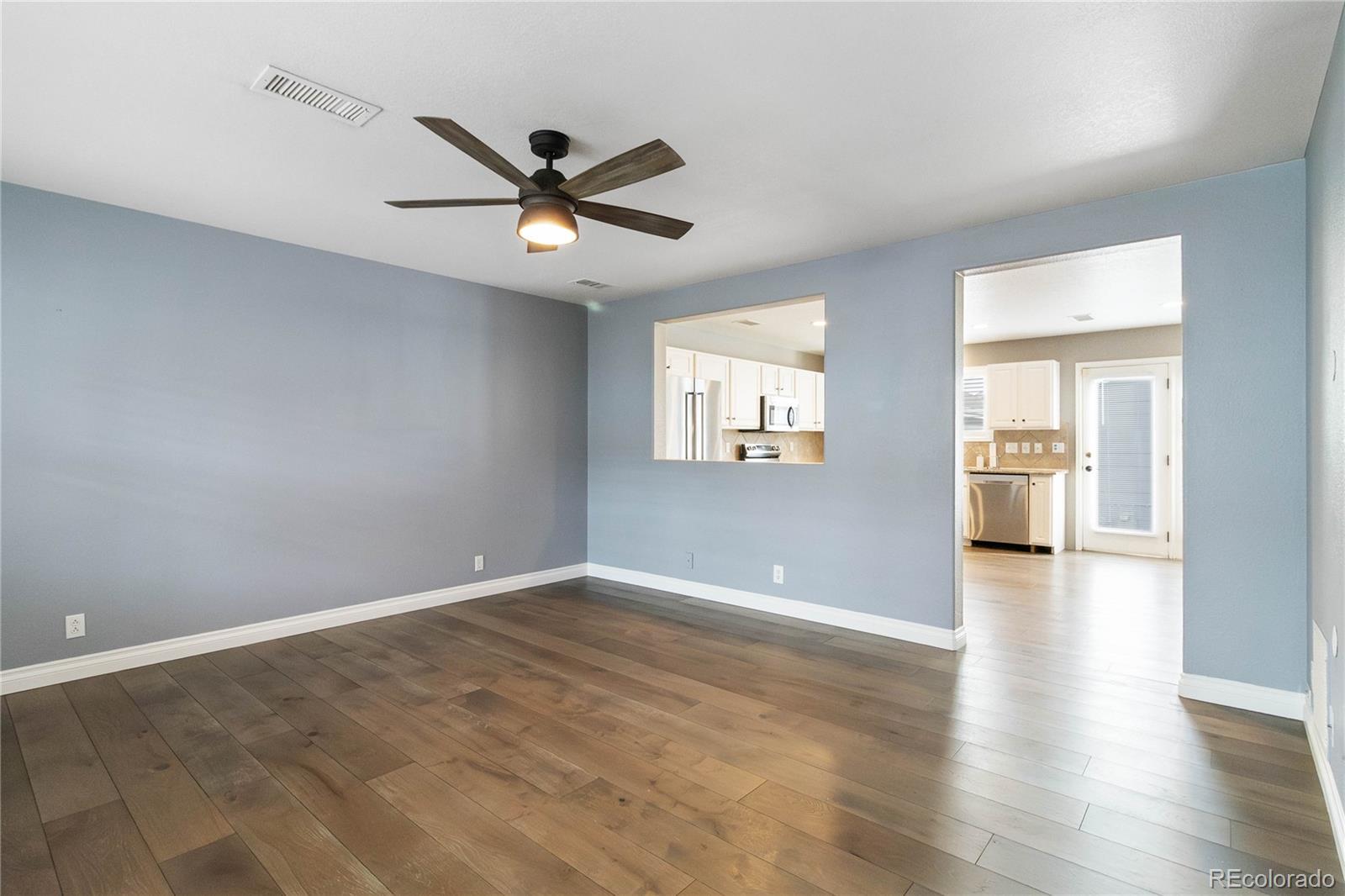 Welcome home to 5796 Biscay Street, a thoughtfully updated townhome in the heart of Green Valley Ranch, offering a comfortable blend of convenience, functionality, and easy everyday living. This light-filled, 2-bedroom, 3-bath, two-story home features an open-concept main floor where the family room flows naturally into a spacious kitchen with eat-in space, making it easy to host friends or unwind after a long day. The kitchen includes newer stainless-steel appliances and durable modern LVP flooring throughout the main level, creating a clean and practical space built for real life. Custom window blinds add privacy and a finished look. A main-floor powder room adds everyday convenience, while the private, fenced patio just off the kitchen provides a great outdoor extension for morning coffee, grilling, or relaxing outside. A newer A/C unit, in-unit laundry with washer and dryer, and a detached one-car garage offer comfort and added storage. Upstairs, both bedrooms feature private ensuite bathrooms, a layout that works well for guests, roommates, or anyone who values separation and flexibility. The primary suite includes a built-in closet organizer, while the secondary bedroom offers a large walk-in closet and a built-in Murphy bed, allowing the space to easily serve as a guest room, home office, or both. The location adds everyday ease, just a half block from First Creek Playground, a few blocks from Single Tree Dog Park, and close to shopping, dining, and daily errands around Green Valley Ranch. With quick access to Denver International Airport and major routes, including I-70, I-76, Highway 225, and E-470, commuting and travel throughout Denver are simple and efficient. This home qualifies for the Community Reinvestment Act, providing 1.75% of the loan amount, with a cap of $7,000, as a credit toward the buyer’s closing costs, pre-paids, and discount points. Contact listing agent for more details.