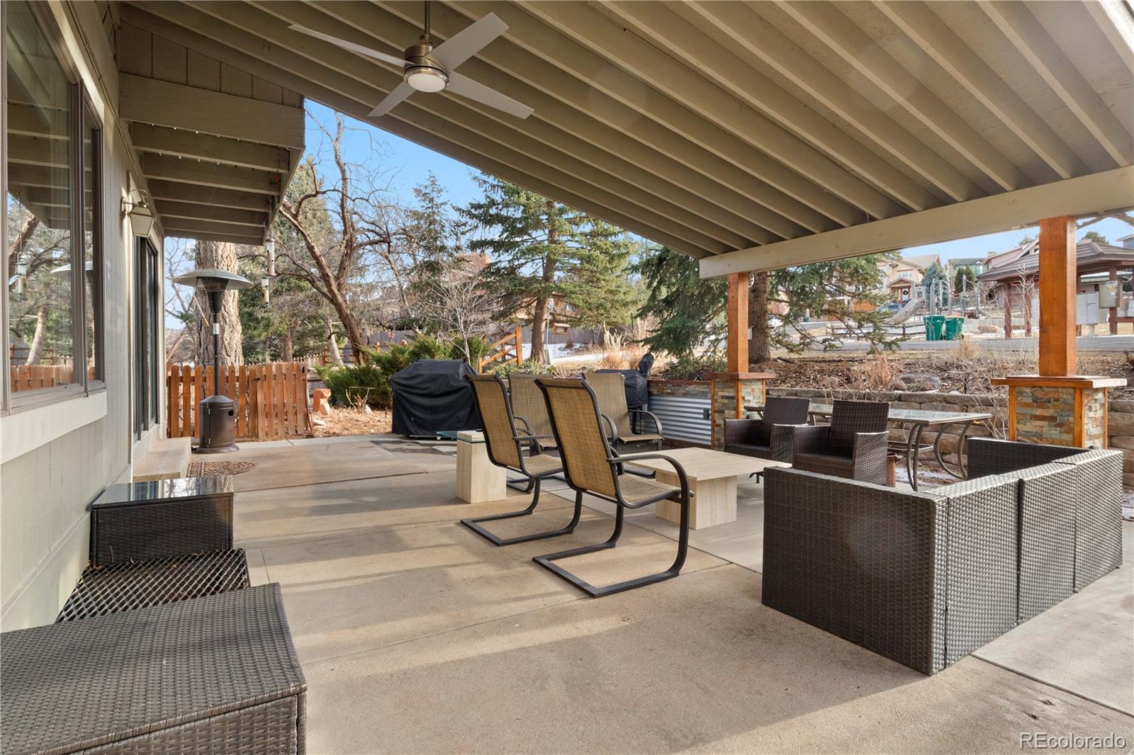 Beautifully maintained Willow Springs home in an unbeatable location backing to the neighborhood park! This light-filled residence showcases modern finishes and tasteful décor throughout, highlighted by hardwood floors and a functional layout designed for everyday living. The main floor features a private study that can also serve as a fifth bedroom, while the finished lower level provides additional flexible living space. Upstairs, the spacious primary suite includes a large walk-in closet and private balcony, with an additional balcony off the second bedroom. Enjoy Colorado outdoor living year-round on the spacious covered patio. The property includes a two-car garage and is one of the few lots in the community that allows off-street parking. Nestled in the foothills of Morrison near Red Rocks Country Club and its stunning golf course, this home offers both serenity and convenience — available for immediate occupancy.