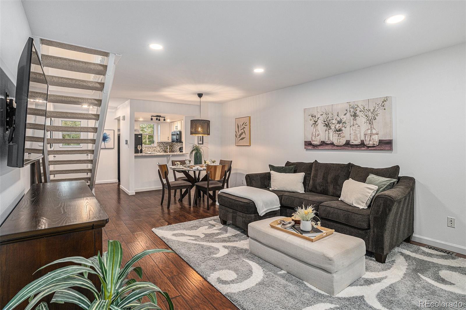 Amazing park facing location! Step into this bright and inviting 2-story condo where thoughtful updates and a fantastic location come together. The main floor features a spacious great room, kitchen, and dining area, plus a convenient office nook—ideal for working from home or staying organized. The cook's kitchen features creamy white cabinets. Laminate flooring is stunning and practical, and runs throughout the main level. Enjoy the view of Moon Gulch Park from the front porch, while the private patio with new fencing is a perfect spot for relaxing or entertaining and stays shaded during summer evenings. The patio connects directly to your detached 1-car garage for easy access. Upstairs, enjoy the newly remodeled full bath, two bedrooms with vaulted ceilings, and a handy laundry closet. New upstairs windows fill the space with natural light, while fresh paint throughout plus an updated bathroom make this home turnkey. No pop-corn ceilings here as that was taken care of already as well. No expense was spared on the new HVAC system, including central A/C, to ensure move-in-ready comfort. Right outside your front door is Moon Gulch Park, visible from all the front windows—bringing open green space and peaceful views to your everyday living. The nearby Ralston Creek Trail invites morning jogs, leisurely walks, or bike rides with scenic foothill views. For even more recreation, the Apex Center and skate park are just down the street. When it’s time to head out, Olde Town Arvada offers local shops, vibrant dining and community events only minutes away. Everyday errands are easy with shopping and restaurants close by, yet you’ll always look forward to coming home to this peaceful retreat. With its modern updates, functional layout and unbeatable setting, this condo offers not just a place to live—but a lifestyle to love. Welcome HOME!!