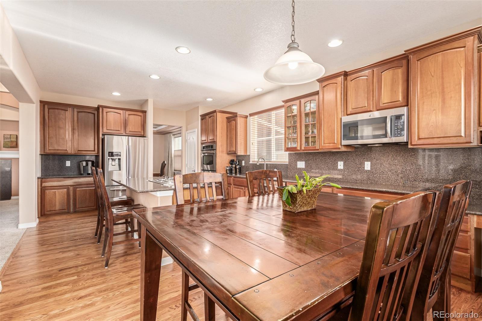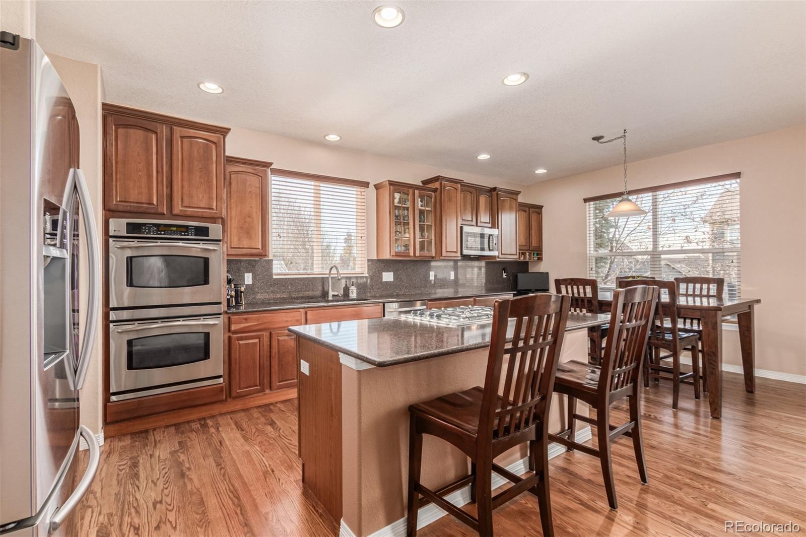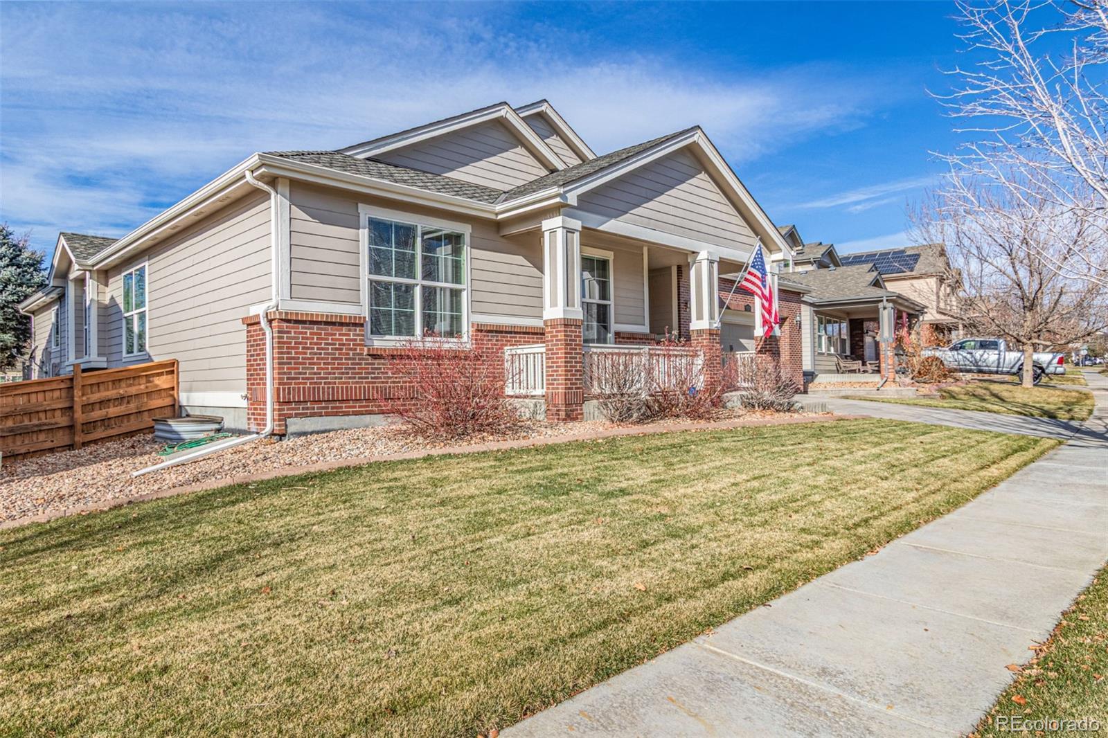 Beautifully Updated 4 Bedroom Ranch with 3-Car Tandem Garage & Huge Unfinished Basement. Step into this stunning, move-in-ready ranch designed for comfort, style, and effortless entertaining. This home offers 4 bedrooms, 3 baths, a spacious kitchen, expansive living room, brand-new roof, PAID-OFF solar, newer exterior paint, freshly refinished hardwood floors, and a beautifully updated primary bath with handicap-accessible features. The oversized 3-car tandem garage is fully drywalled with epoxy flooring, built-in cabinets, and an exterior access door. Downstairs, a massive 2,700 sq. ft. unfinished basement provides endless possibilities to expand or customize your dream space. The private backyard is the perfect retreat featuring mature trees, a covered patio, large deck, stamped concrete edging, low-maintenance turf, and plenty of storage. Located in Reunion, you’ll enjoy exceptional community amenities including 2 swimming pools, a 21,000 sq. ft. rec center, pickleball courts, coffee house, 150 acres of parks, 10 miles of trails, lakes, and year-round events. Conveniently located near Buffalo Run Golf Course, future Rocky Vista High School (opening fall 2027) and newly opened Southlawn Elementary (2022). Quick access to E-470, I-76, and DIA