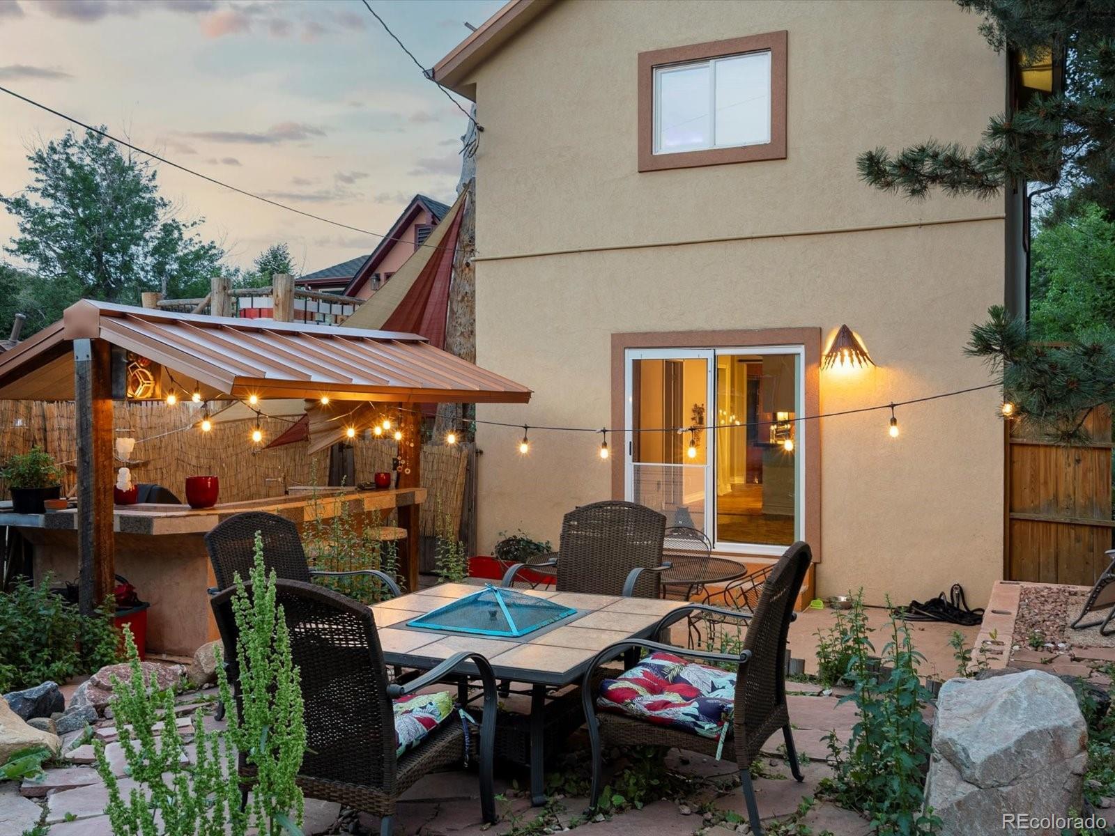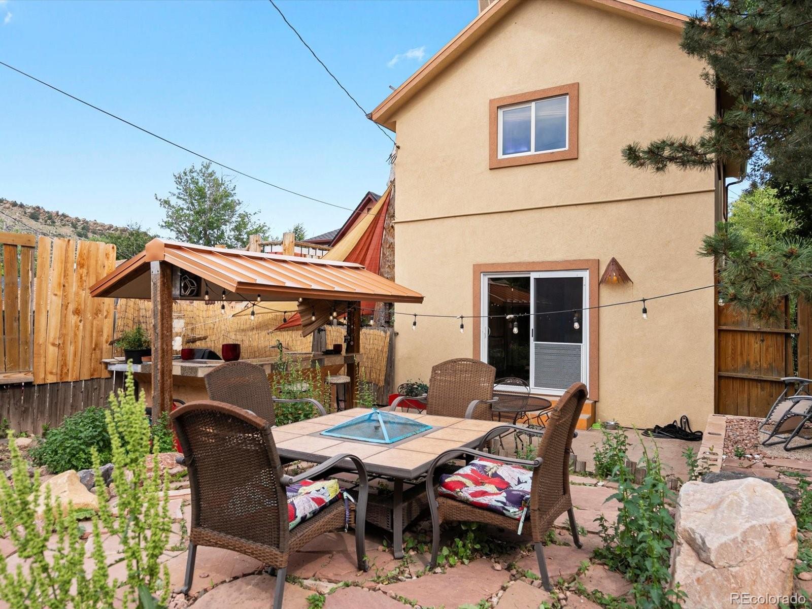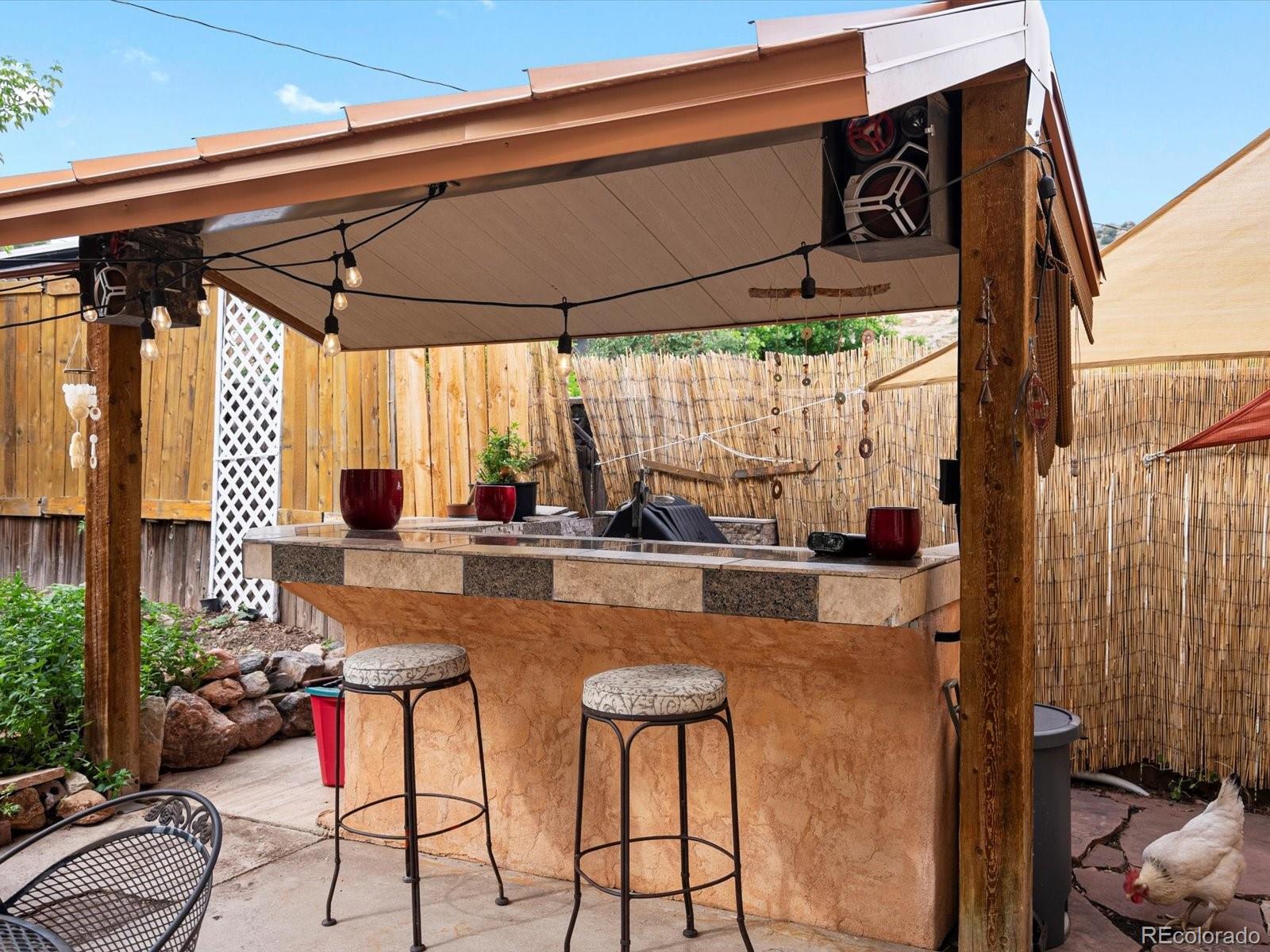 New Price! Charming 1884 Historic Home in the Heart of Morrison A rare opportunity to own a piece of history in the vibrant Town of Morrison. This historic landmark is perfectly situated just steps from Red Rocks Amphitheater, Bear Creek biking trails, Mt. Falcon Park, local restaurants, boutique shops, and art galleries. Inside, you’ll find character blended with modern touches. Vaulted ceilings, exposed wood beams, and a cozy wood-burning stove create a warm and inviting living space. An office alcove offers a perfect spot to work or create (or yoga), while a sliding door leads you into the kitchen, complete with stainless steel appliances, loads of cabinets, a gas stove, wood floors, a pantry, and direct access to the side yard. A flexible space off the kitchen—perfect as a dining or living room—features tile flooring and opens to a back patio with a built-in bar area and access to the detached one-car garage. A convenient main-level half bath includes a stackable washer and dryer. Upstairs, two bedrooms offer stunning red rock and foothills views and share a beautifully updated bathroom with a jetted tub and walk-in shower. Additional highlights include a new metal roof and gutters, swamp cooler, stucco exterior, and a bonus side yard space for extra room to enjoy the Colorado lifestyle. This is more than a home—it’s a chance to live in a true Morrison treasure, rich in history and steps from everything this charming mountain town has to offer.