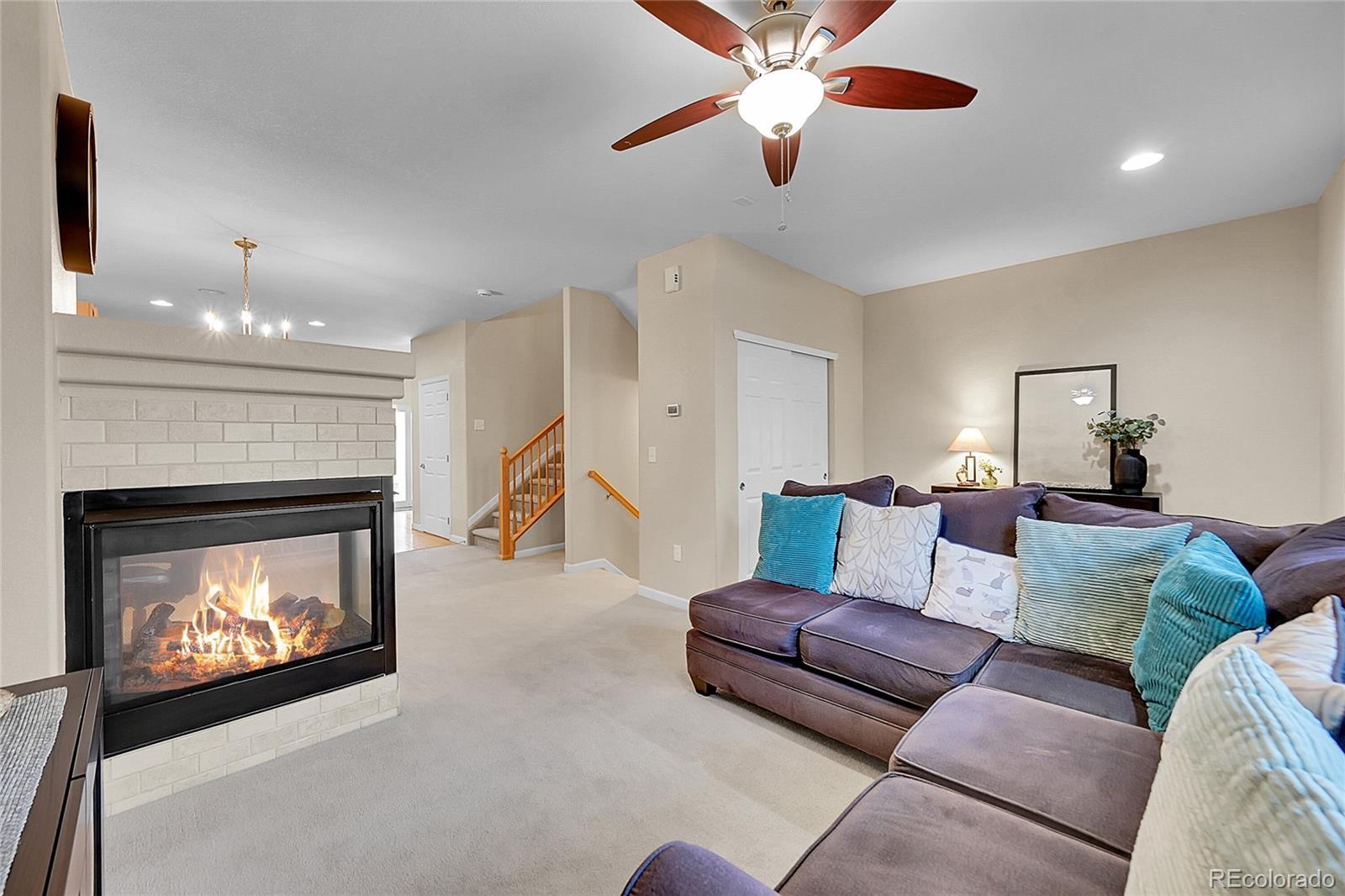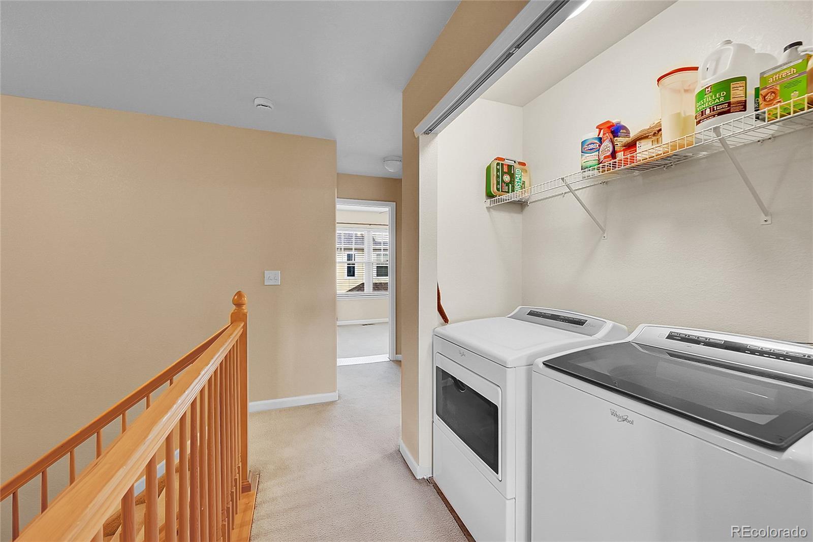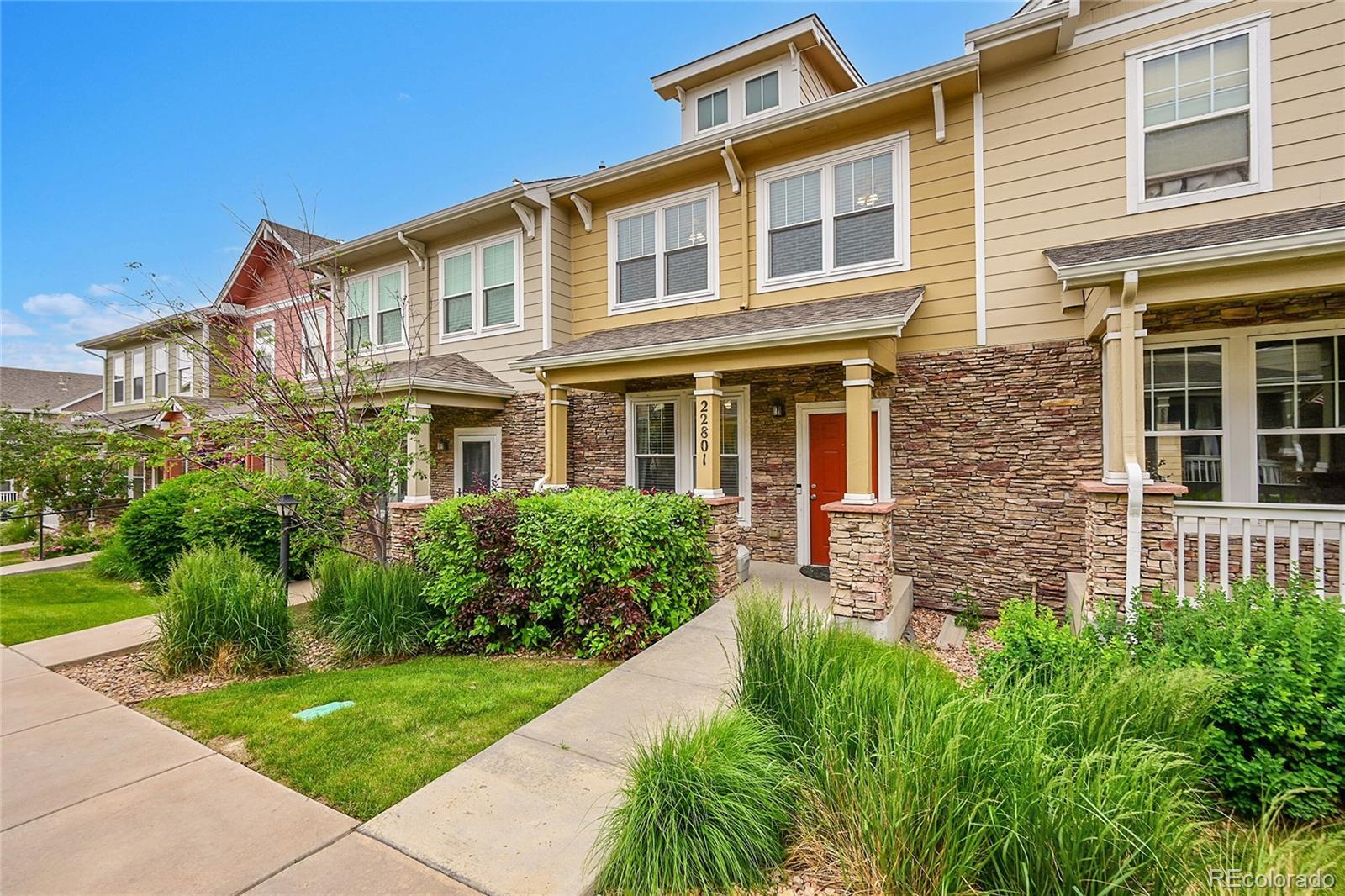 Welcome to Saddle Rock! Move into this beautiful spacious 3 bedroom, 3 bath townhome located in the Cherry Creek School District. All kitchen appliances (refrigerator, stove, microwave, and dishwasher), window coverings, and deep freezer in garage are all included! Beautiful granite tile counter tops in kitchen. Cozy fireplace in the living room. Soaring ceilings throughout making it feel spacious, open, and welcoming. There's room for growth in the basement. The laundry area is conveniently located on the upper level near all of the bedrooms and the washer and dryer are included! This beautiful townhome is within walking distance to open space and scenic trails. Shopping and dining are conveniently located at Southlands, and Saddle Rock Golf Course is just minutes away. Make this your new home.