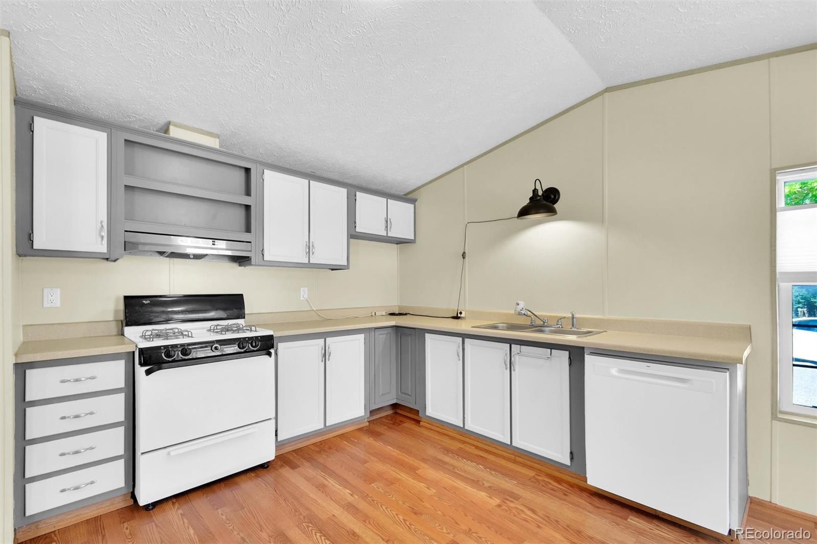 Your chance to own in beautiful Golden, Colorado! This charming and well-maintained home is nestled within a beautifully kept community surrounded by the natural beauty that makes Golden so desirable. Step inside to find a thoughtfully cared-for space featuring two comfortable bedrooms and one bright, inviting bathroom. The spacious family room is filled with natural light from large windows, creating a warm and welcoming atmosphere perfect for relaxing or entertaining. The adjoining kitchen is ideal for any home chef, offering ample cabinetry for storage, sleek laminate countertops, and all appliances included. Enjoy the convenience of being just minutes from downtown Golden, with its local dining, shopping, and entertainment, plus easy access to I-70 for mountain getaways or a quick commute to Denver. This home is move -in ready and offers affordable living like none other!