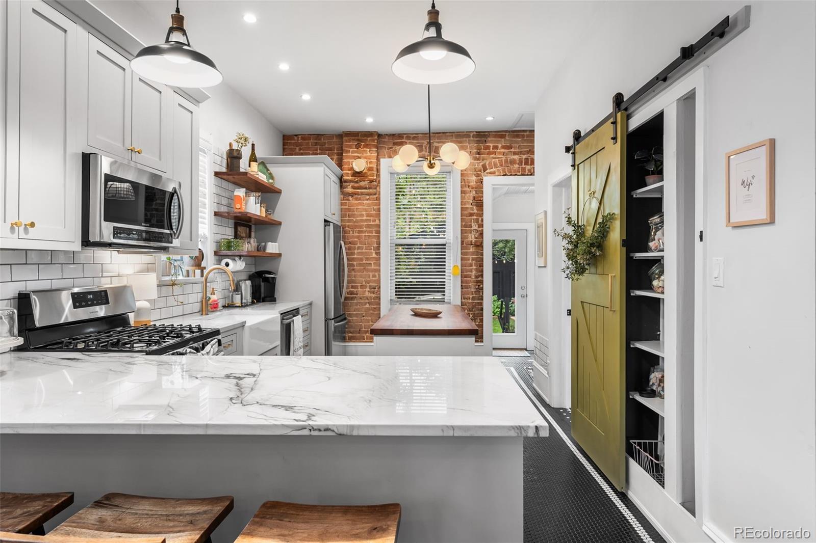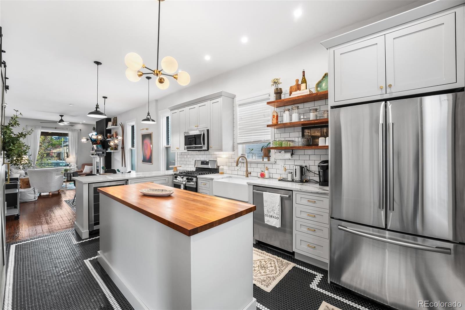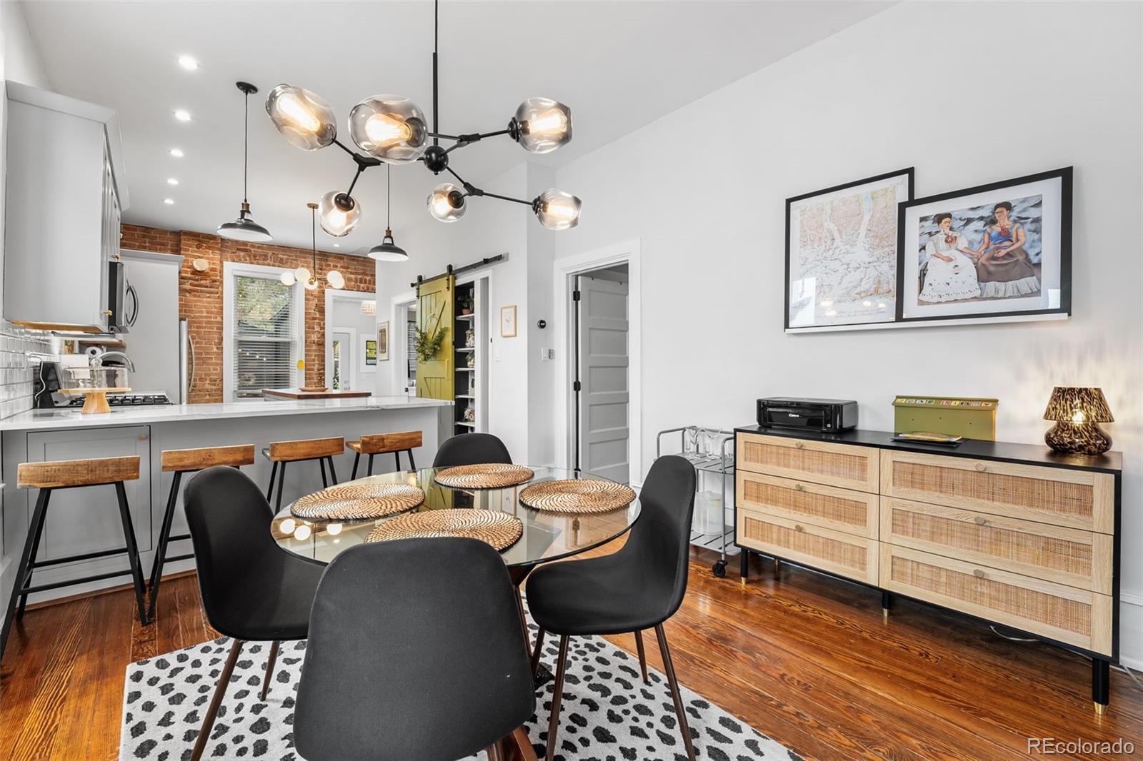 Welcome to 1042 Lipan Street — a beautifully updated 2-bed, 1-bath gem in Denver’s Lincoln Park neighborhood. This home blends vintage charm with modern flair, featuring hardwood floors, high ceilings, exposed brick, and designer lighting and finishes throughout. The open layout connects a gorgeous kitchen with quartz countertops, stainless steel appliances, and a farmhouse sink to bright living and dining spaces — ideal for entertaining or cozy nights in. Step outside to your private backyard retreat surrounded by lush gardens, mature greenery, and multiple lounge areas for relaxing or hosting under the string lights. It’s serene, inviting, and full of life. A rare oversized two-car garage offers abundant storage and workspace — the perfect bonus in this urban city. Located near the Santa Fe Arts District, Downtown, and neighborhood parks, this home delivers the best of Denver living with a 91 walk score and a backyard you’ll never want to leave.***OPEN HOUSE NOV 8TH AND 9TH 12-2PM !!***