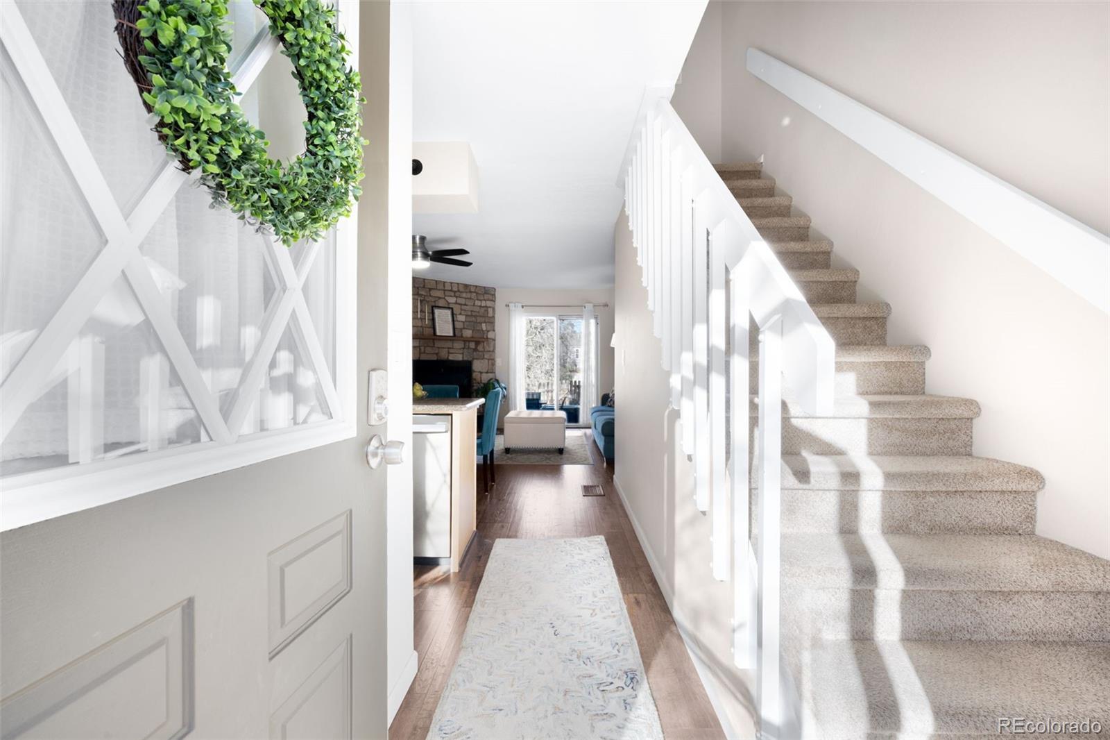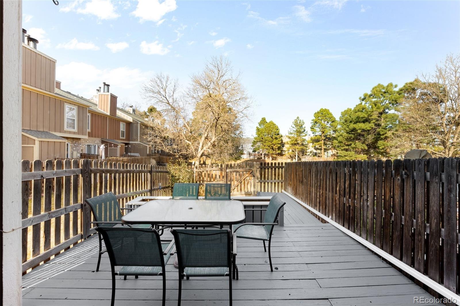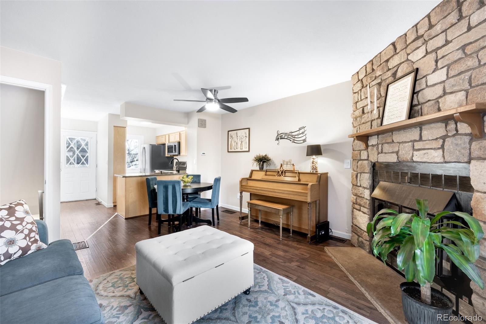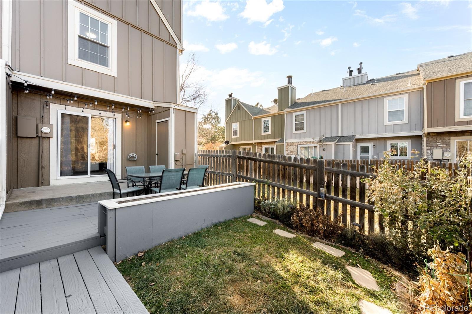 *CORNER LOT! *BACKS TO OPEN SPACE! Set on a desirable corner lot, backing to lush open space, this fabulous town home boasts a thoughtfully renovated kitchen equipped with stainless steel appliances, granite counters, and opens to the dining and living areas, making meal preparation both efficient and enjoyable. The warm and inviting living area is accented by a cozy fireplace, providing the perfect backdrop for relaxation. Smooth ceilings (popcorn texture has been removed) and newer vinyl plank floors on the main level, offer a blend of comfort and style. Upstairs you will find two bedrooms, the primary has soaring ceilings and abundant natural light, and the second bedroom overlooks the open space. The upstairs bathroom has been thoughtfully updated and remodeled with a new, oversized bath tub/shower, vanity and lighting. Practical living is enhanced with a finished basement, currently being used as a 3rd bedroom (non-conforming), including a 3/4 bathroom with a shower, perfect to be used as a "guest suite", office space, entertaining space, whatever suits your needs! From the family room, step outside the glass, sliding doors to discover an expansive, fenced in, private patio (with storage closet, in addition to attic storage) and garden space, which faces the breathtaking open, green space with mature trees, plantings. The community pool is within sight, and just the perfect distance away. The location this particular unit within the Highlands View II community is unbeatable, and the location of this community is ideal. Close to dog parks, open areas and playgrounds, shops, restaurants, and more! Don’t miss this fantastic opportunity to own a piece of Centennial living. Experience the perfect blend of style and convenience at 8159 S Fillmore Way. Schedule your private showing today and envision the possibilities of making this house your new home!