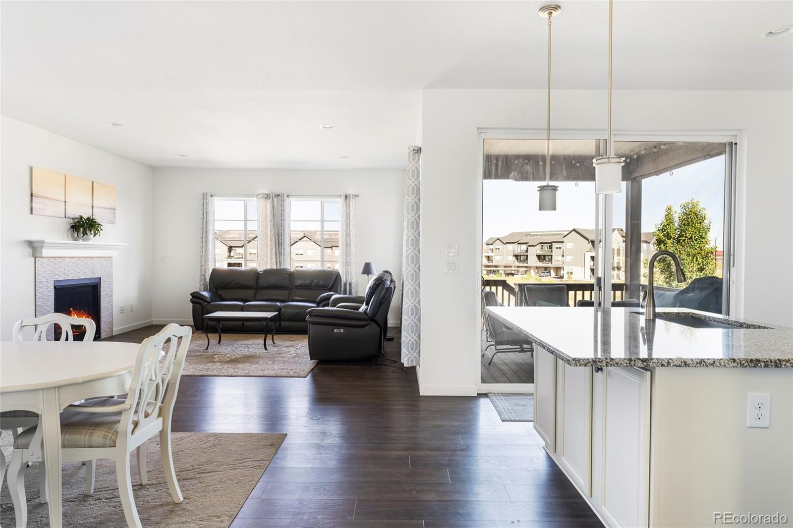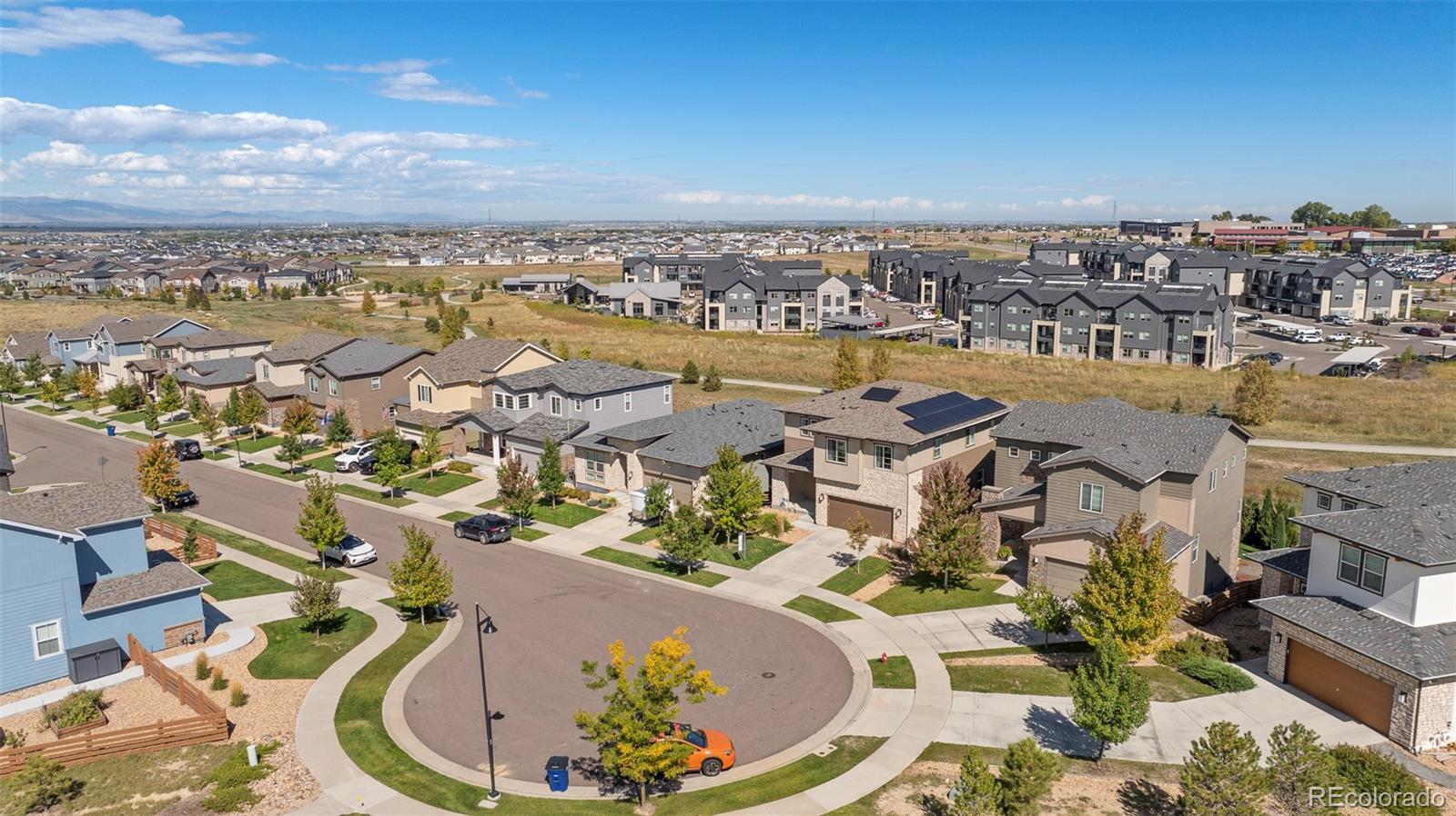 Offering enough space for the whole family, this 2019-built residence presents three distinct living areas and a coveted position backing to serene open space. Nestled at the end of a quiet cul-de-sac, the home blends modern comfort with thoughtful design. Inside, a wide foyer welcomes you into an airy open layout where new luxury laminate flooring extends throughout the main level. The living room, centered around a sleek gas fireplace, opens gracefully to a chef’s kitchen featuring a generous island, pantry, and double ovens — ideal for hosting gatherings or enjoying cozy nights in. A tucked-away half bath and a large main-level office add convenience and versatility to the thoughtful floorplan. Step outside to the Trex deck — complete with patio furniture — where tranquil open space views set the stage for morning coffee or evening unwinding. Stairs lead to the fully fenced backyard and covered patio below, perfect for play or outdoor entertaining. Upstairs, four bright bedrooms and three full bathrooms provide ample room for everyone, joined by a spacious loft and centrally located laundry for everyday ease. The fully finished walkout basement extends the home’s livability with a conforming bedroom, full bath, and generous recreation space — the perfect third living area for guests, hobbies, or movie nights. Additional highlights include a three-car tandem garage, newer roof (2023), and owned solar panels that enhance efficiency and peace of mind. Tucked away with no through-traffic yet just minutes from Erie’s parks, trails, and vibrant community offerings, this residence is the perfect blend of modern elegance and family-friendly functionality.