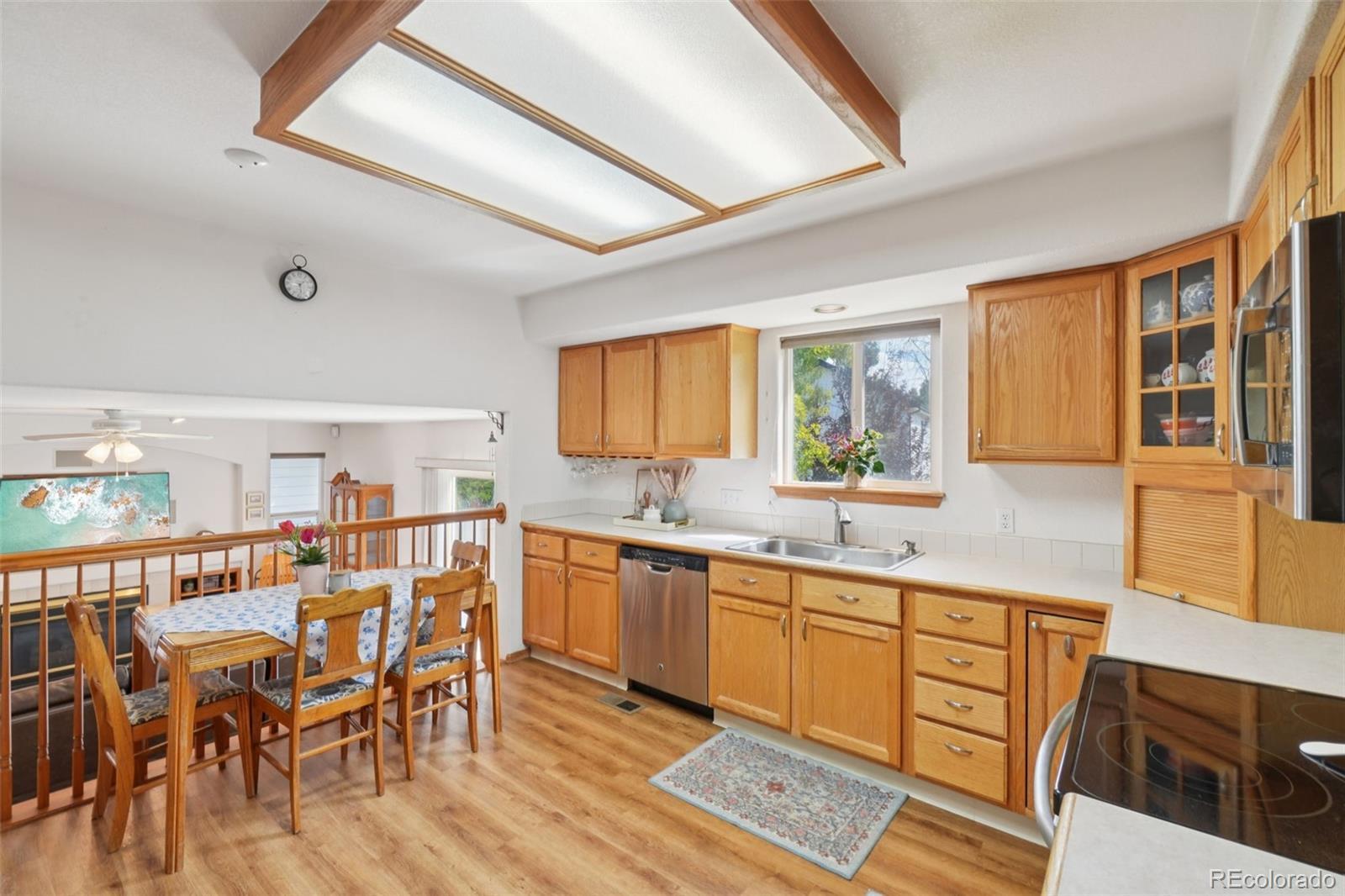 You'll love this beautifully maintained 4-bedroom, 3-bathroom home located in the highly desirable Clarke Farms neighborhood of Parker. With its spacious multi-level layout and stylish updates, this home offers both comfort and functionality for everyday living. Step inside and be greeted by vaulted ceilings and tons of natural light. The kitchen features stainless steel appliances, a cozy eat-in dining space, and a separate formal dining room—perfect for hosting friends and family. Upstairs, the large primary suite offers a peaceful retreat with a luxurious 5-piece En Suite bath and walk-in closet. The lower level boasts a welcoming family room, while the finished basement provides a quiet bonus space ideal for movie nights, home office, or just getting away from it all. Outside, enjoy the beauty of Colorado living in your private backyard oasis with mature landscaping and a brand NEW CEDAR DECK—the perfect spot to sip your morning coffee or unwind while watching the sunset at dusk. Recent updates include a brand NEW ROOF and NEW GUTTERS (2023), NEW EXTERIOR PAINT, adding both style and peace of mind. Great location that is close to all of the amenities of Mainstreet where you'll find a wide variety of shops, restaurants, and local favorites—offering the perfect mix of convenience, recreation, and small-town charm. Enjoy access to the community pool, beautiful parks, tennis courts, scenic trails, and year-round neighborhood events that make this area truly special. Don’t miss your chance to own this beautiful home in one of Parker’s most established and welcoming neighborhoods.