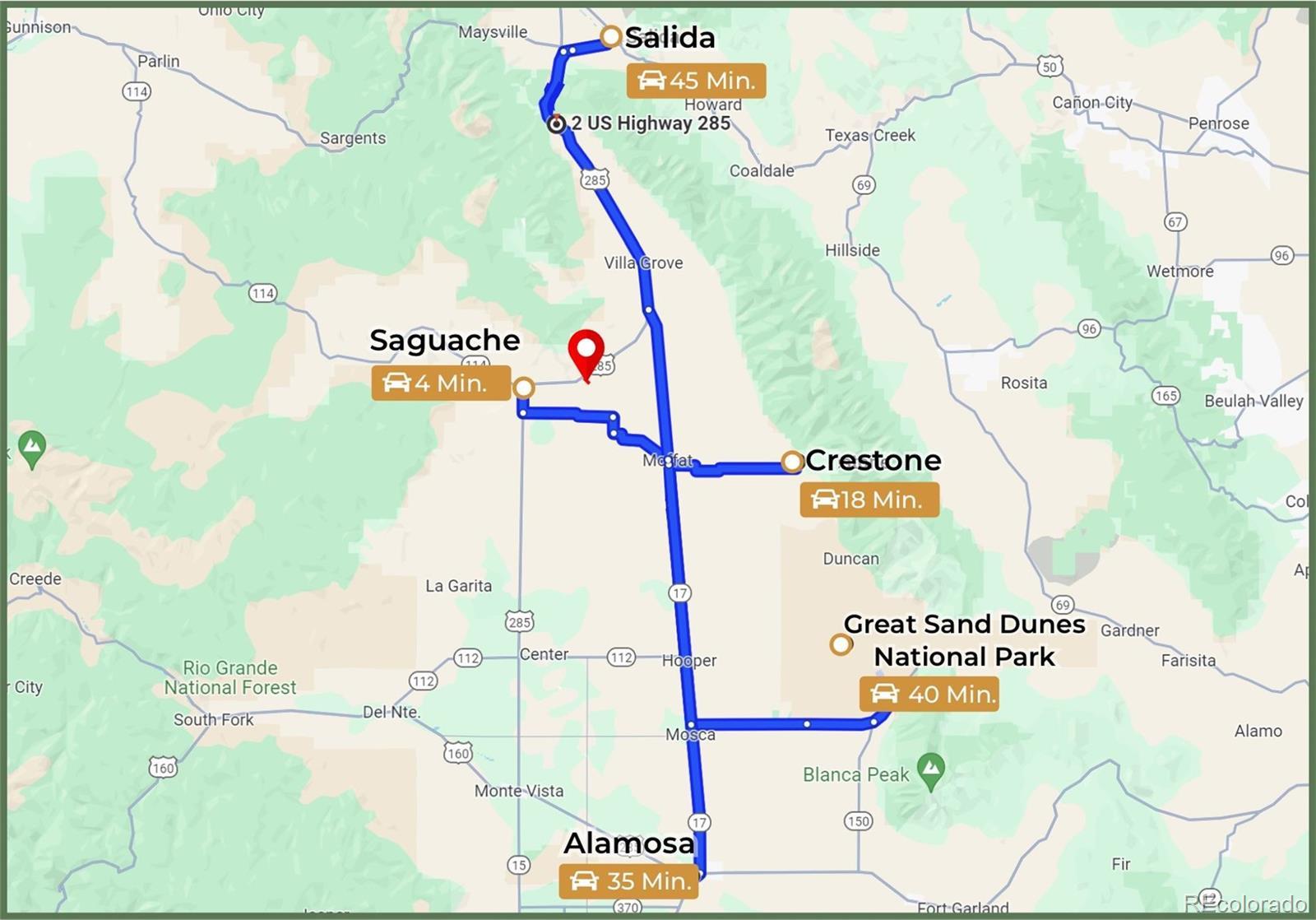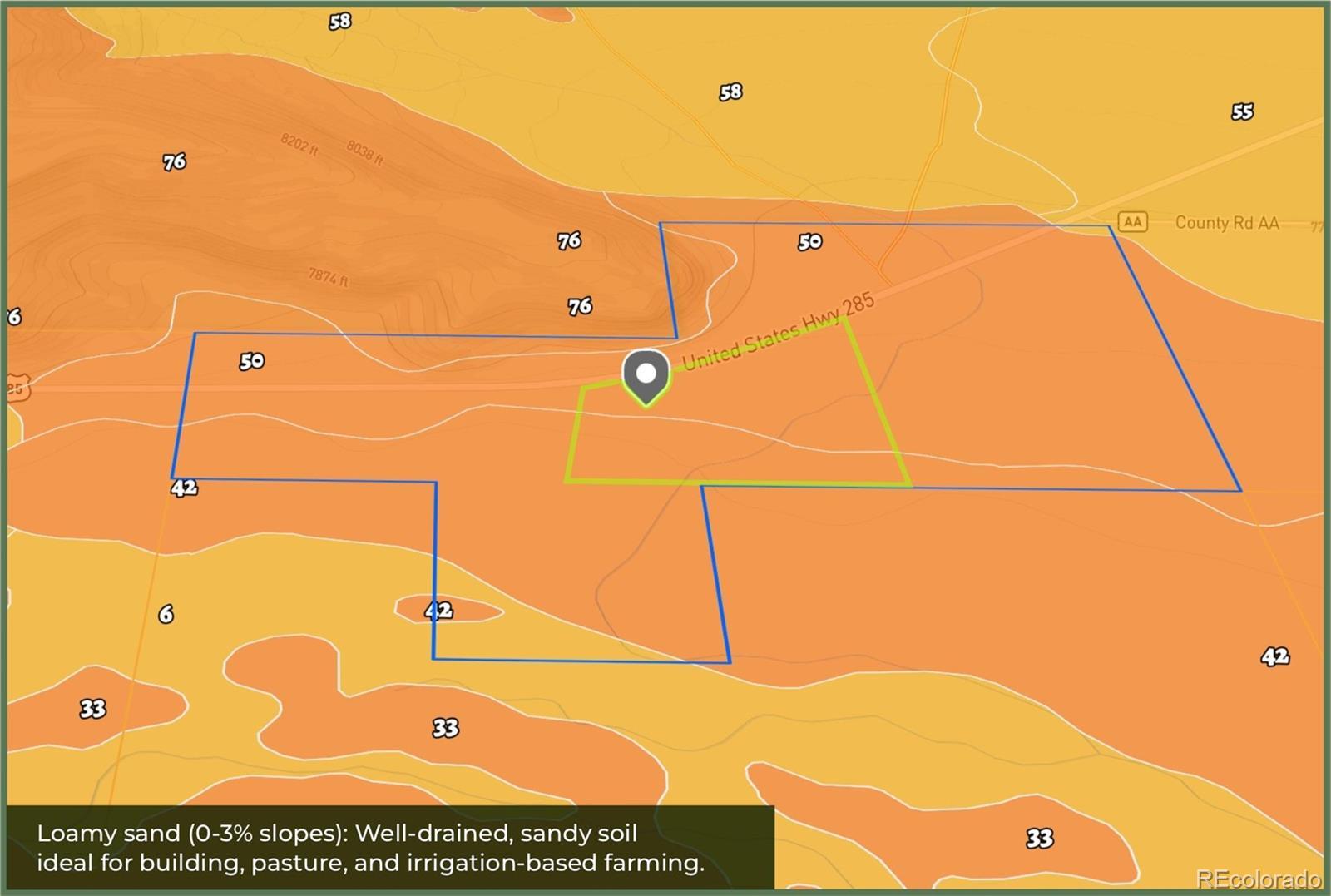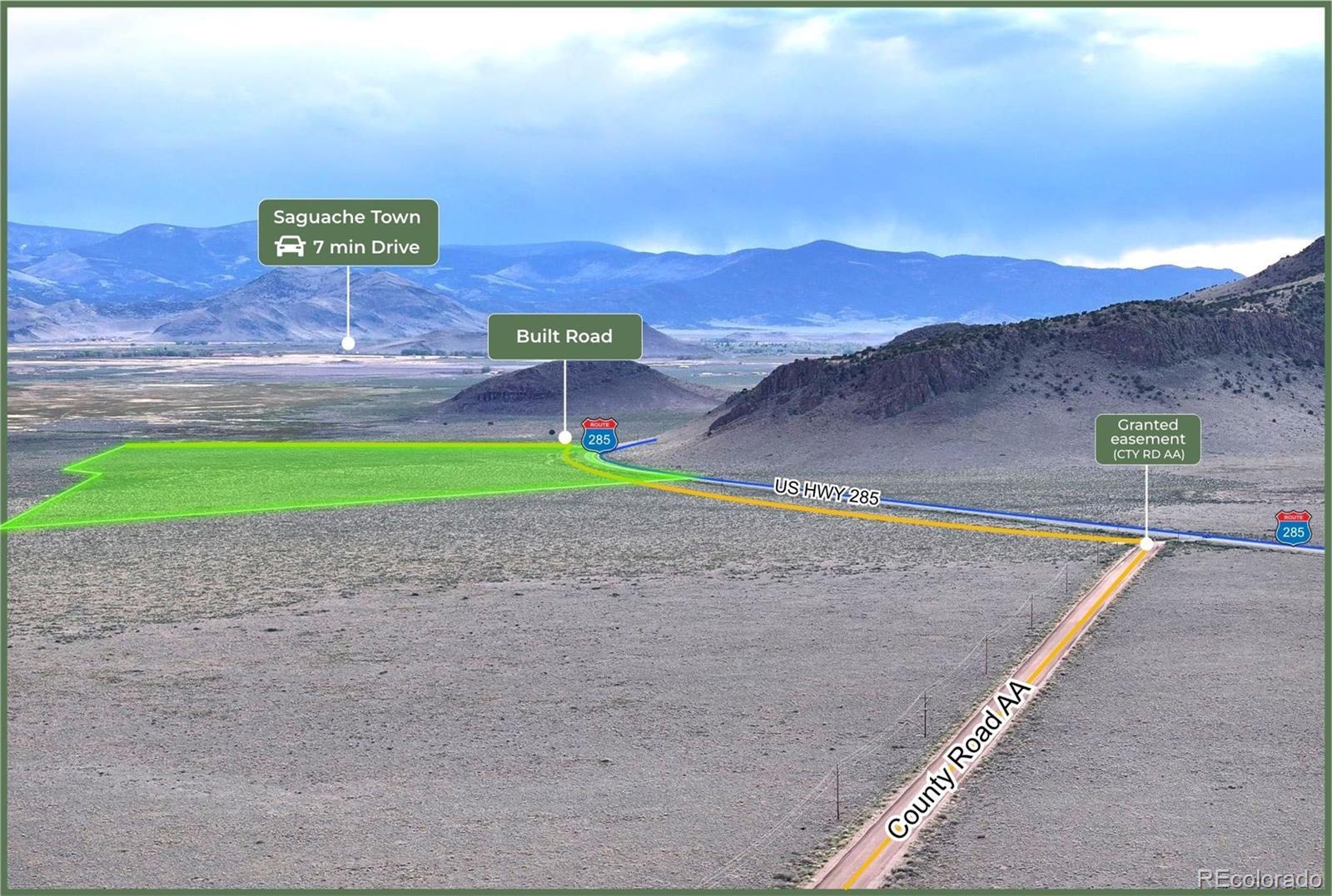 35+ acres of open, buildable Colorado land with wide panoramic mountain views and direct access off Highway 285—just 4 minutes from Saguache. This parcel offers a rare combination of usable terrain, year-round access, and immediate PROXIMITY and AVAILABILITY to 59,687 acres of BLM land that link to over 500,000 acres of National Forest. IDEAL for building sites, agricultural use, off-grid projects, or long-term investment. A built access road connects directly to Hwy 285, and an additional granted easement via County Road AA provides secondary legal access. Survey is completed, the DRIVEWAY access permit is approved, ELECTRICITY is available at the lot line, and the WATER PERMIT includes 1 acre of irrigation—a rare and valuable resource in this region. With NO HOA, no covenants, and no building codes, the land allows full flexibility for homes, cabins, ADUs, shops, or recreational structures (per county guidelines). Located in GMU 681, the area is known for ELK movement, BIG-GAME activity, and peaceful, wide-open landscapes. Property Features: • 35+ acres with open, usable, buildable terrain • Panoramic mountain and valley views • Near access to 59,687 acres of BLM + National Forest connection • Built road from Hwy 285 for easy year-round access • Additional legal easement via County Road AA • Survey completed • Driveway access permit approved • Water permit with 1 acre of irrigation • Electricity at lot line • NO HOA / NO covenants / NO building codes • Multiple dwellings + ADUs allowed • Located in GMU 681 (elk corridor + strong wildlife presence) • Maps, 3D boundaries, and aerial imagery available Nearby Destinations: • Great Sand Dunes – 50 min • Arkansas River rafting – 30 min • Monarch Mountain – 1 hr • Numerous trails, hot springs, and public-land recreation areas Comparable Hwy 285 parcels in this corridor routinely trade for $300K–$500K, making this a high-value land hold with strong long-term potential.