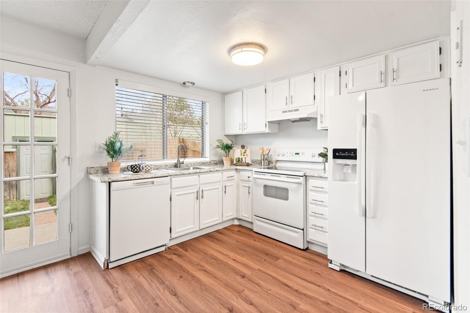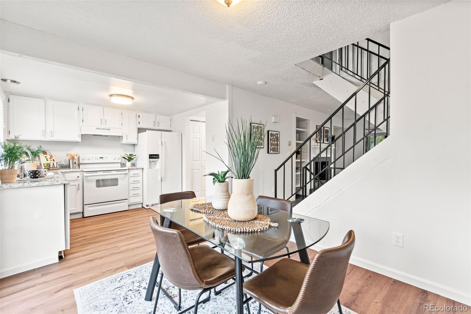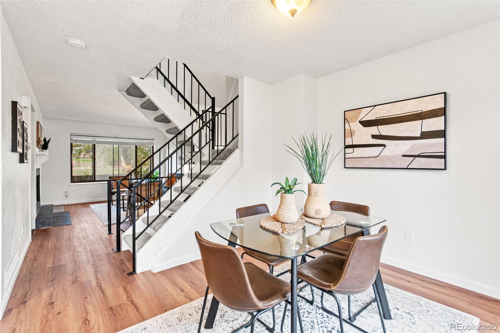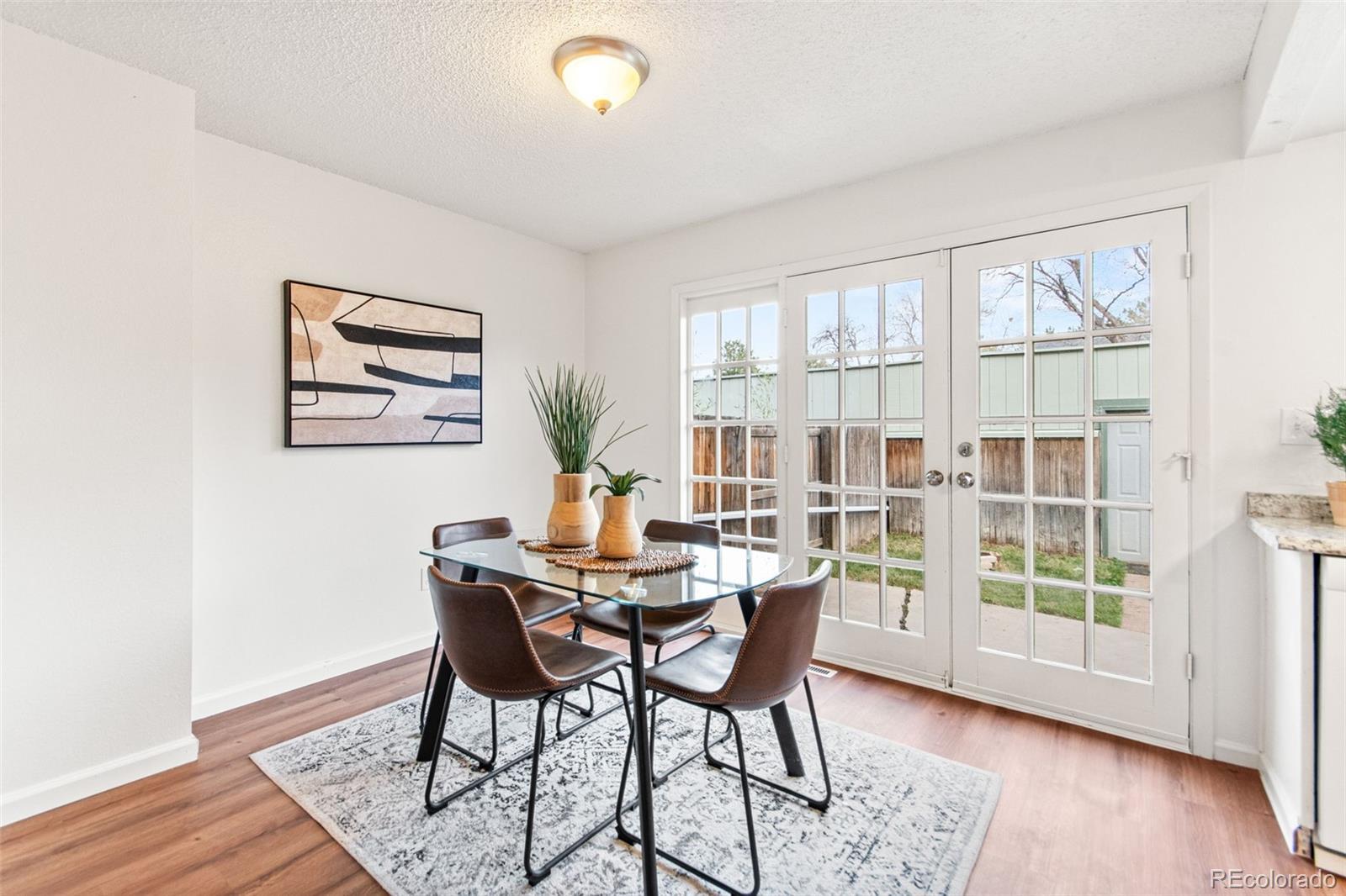 Bright, Updated Townhome with Private Yard & PRIVATE 2 CAR GARAGE! This move-in ready 2-story townhome features updated finishes, wood floors, fresh paint, and a versatile basement space. French doors open to a private fenced yard with patio, fire pit area, and direct access to a peaceful community garden. Located near Cherry Creek State Park, light rail, and local shops, this home offers comfort, convenience, and outdoor charm in one great package!