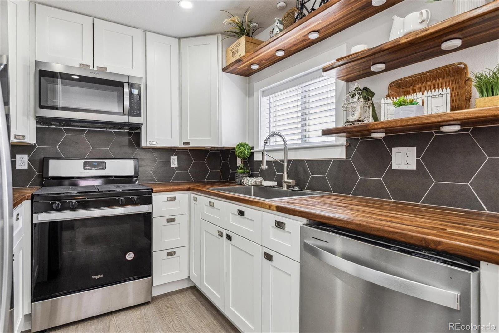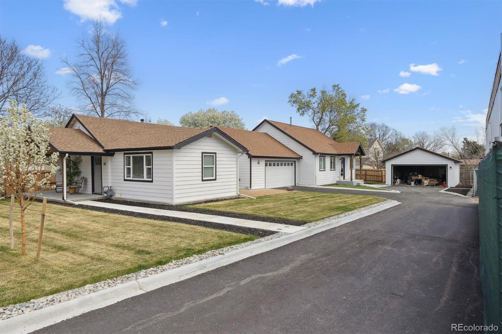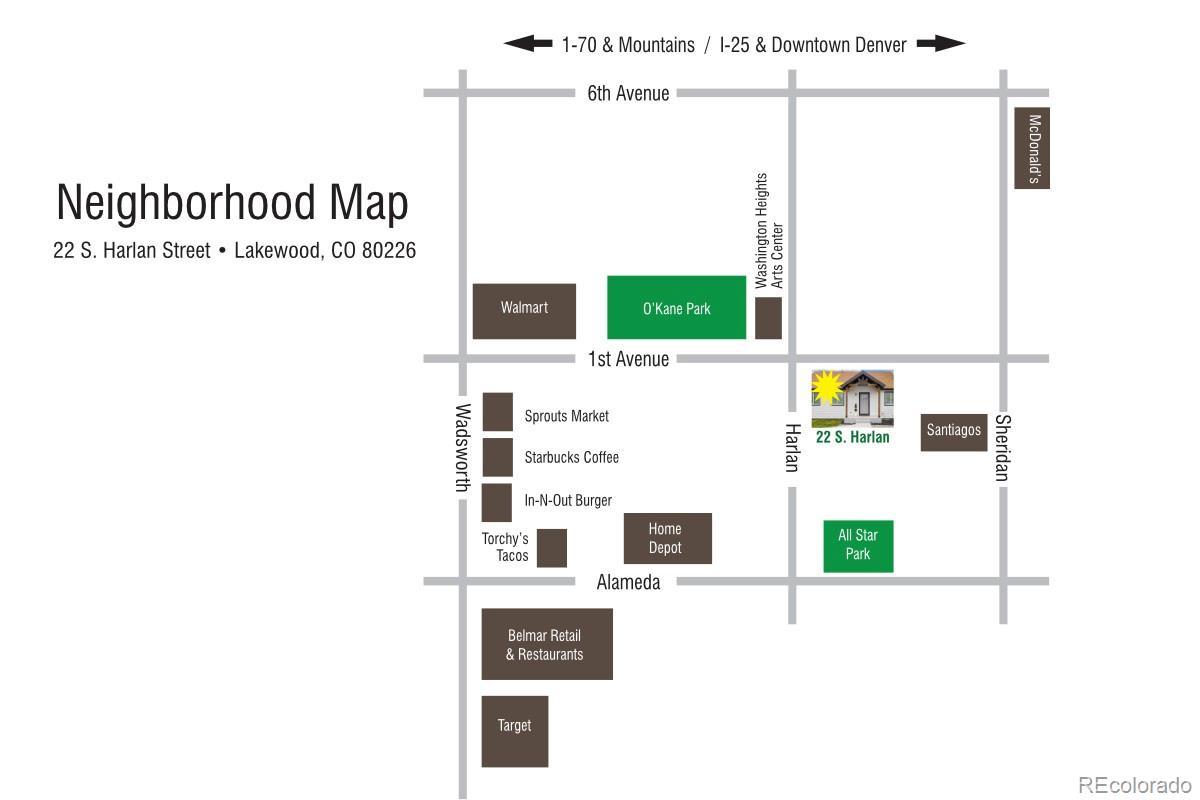 Move-in now in this down to the studs remodel in the heart of Lakewood. Be part of this new 4 home neighborhood so close to neighborhood parks and schools, shopping and dining, Belmar Center and 6th Avenue, allowing easy access to downtown Denver, the Denver Tech Center and the Rocky Mountains. Quality is evident in this ranch floor plan with an open great room, dining room and kitchen layout. Designer curated finishes including wood look LVP flooring, soft neutral colors, soft close shaker style cabinetry, butcher block counters, and stainless appliances including a gas range. All bedrooms enjoy generous closets. Large windows throughout fill this home with natural light. Enjoy your covered porch overlooking the front yard or the sunny side patio and yard with plenty of room for a garden. Either or both the front and side yards can be fenced for additional privacy. An oversized 2-car garage and in-residence laundry adds to the convenience of this home. The adjacent property at 22 S. Harlan Street is also available for sale at $600,000, this home is a 3 bedroom, 2 bath ranch floor plan that could work great for a family member. This property qualifies for the Community Reinvestment Act providing 1.75% of the loan amount toward the buyer's closing costs, pre-paids and discount points. Also available is Key Bank's "Key Community Mortgage" with zero money down, no PMI and a $5,000 grant toward closing costs.