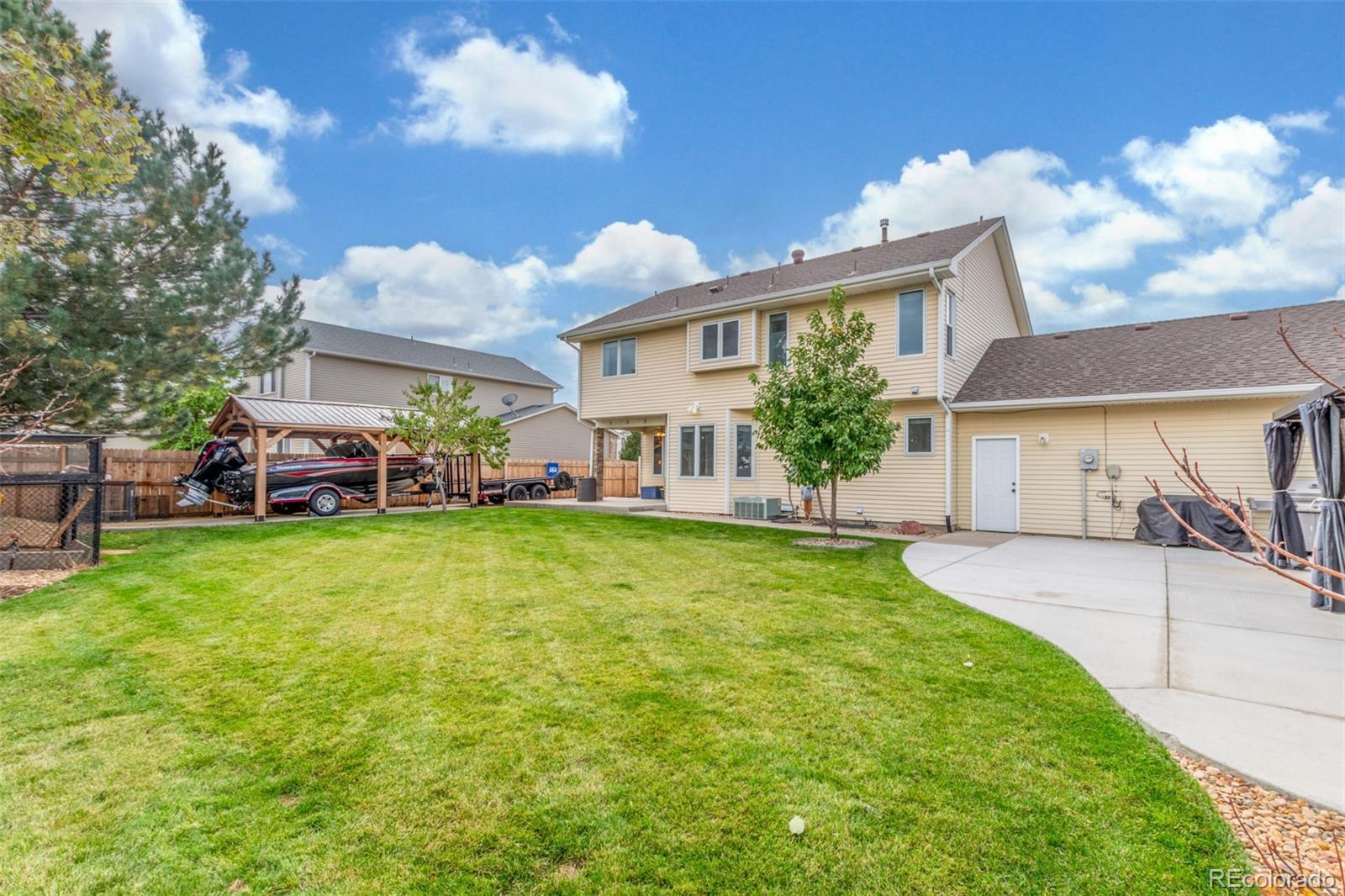 Custom 4-bedroom, 3-bath home offering 1,968 SqFt of finished living space on an oversized lot! Rare find with no HOA restrictions, giving you the freedom to truly live your way. The inviting exterior showcases brick accents, a full-length front porch, and plenty of space for parking, including a 2-car attached garage, RV gate, and wood carport—with room for 6+ vehicles, RV, or boat. Inside, you’ll find a welcoming living room with a fireplace, a formal dining area, and an unfinished basement offering endless potential. The kitchen has black stainless steel appliances, wood cabinetry, ample counter space, and a pantry for extra storage. Enjoy newer carpet (installed in 2022), custom paint finishes, smart ceiling fans, and a brand-new Anderson sliding door off the kitchen leading to your backyard. The primary suite is a true sanctuary with a spacious walk-in closet, updated fixtures, and a luxurious five-piece bath complete with double sinks and a deep soaking tub. You’ll love the newly landscaped yard featuring a spacious patio, charming chicken coop, and plenty of open space for play, gardening, or future expansion. Additional highlights include epoxy-coated garage floors, smart thermostat, smart garage doors, and a smart sprinkler system for effortless maintenance. A true jewel! Make it yours!