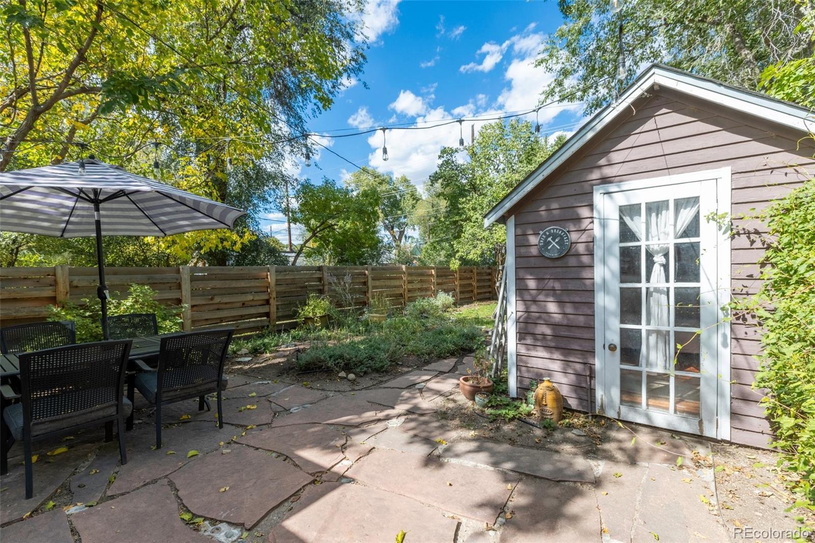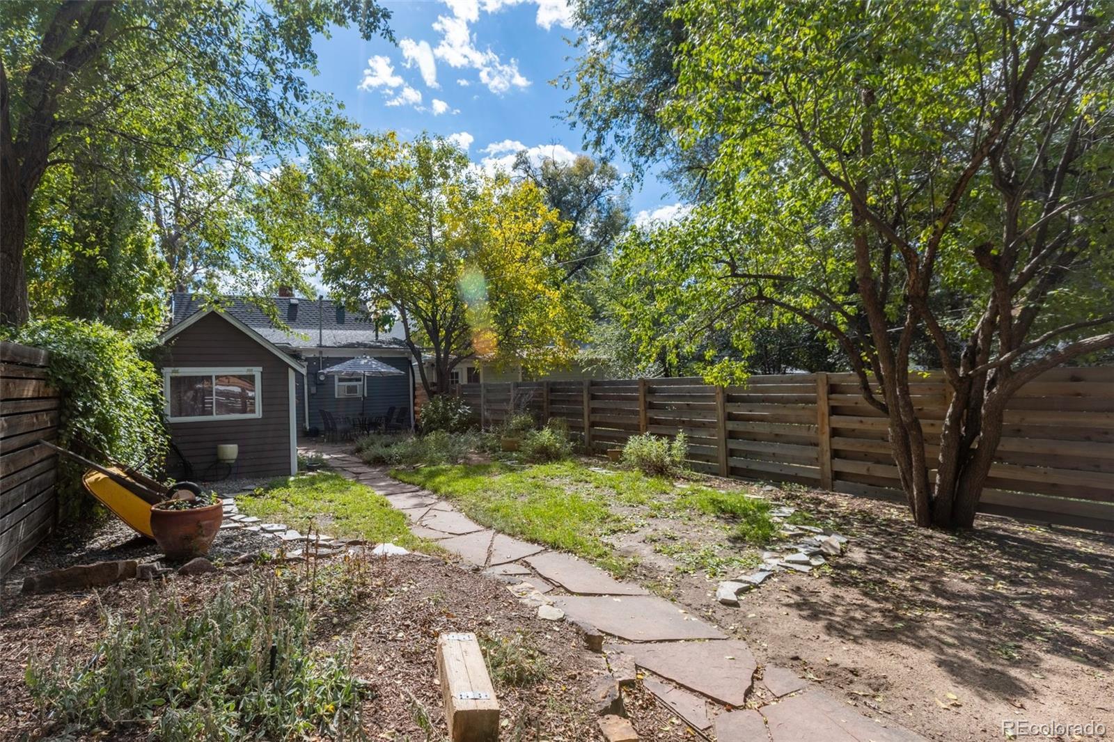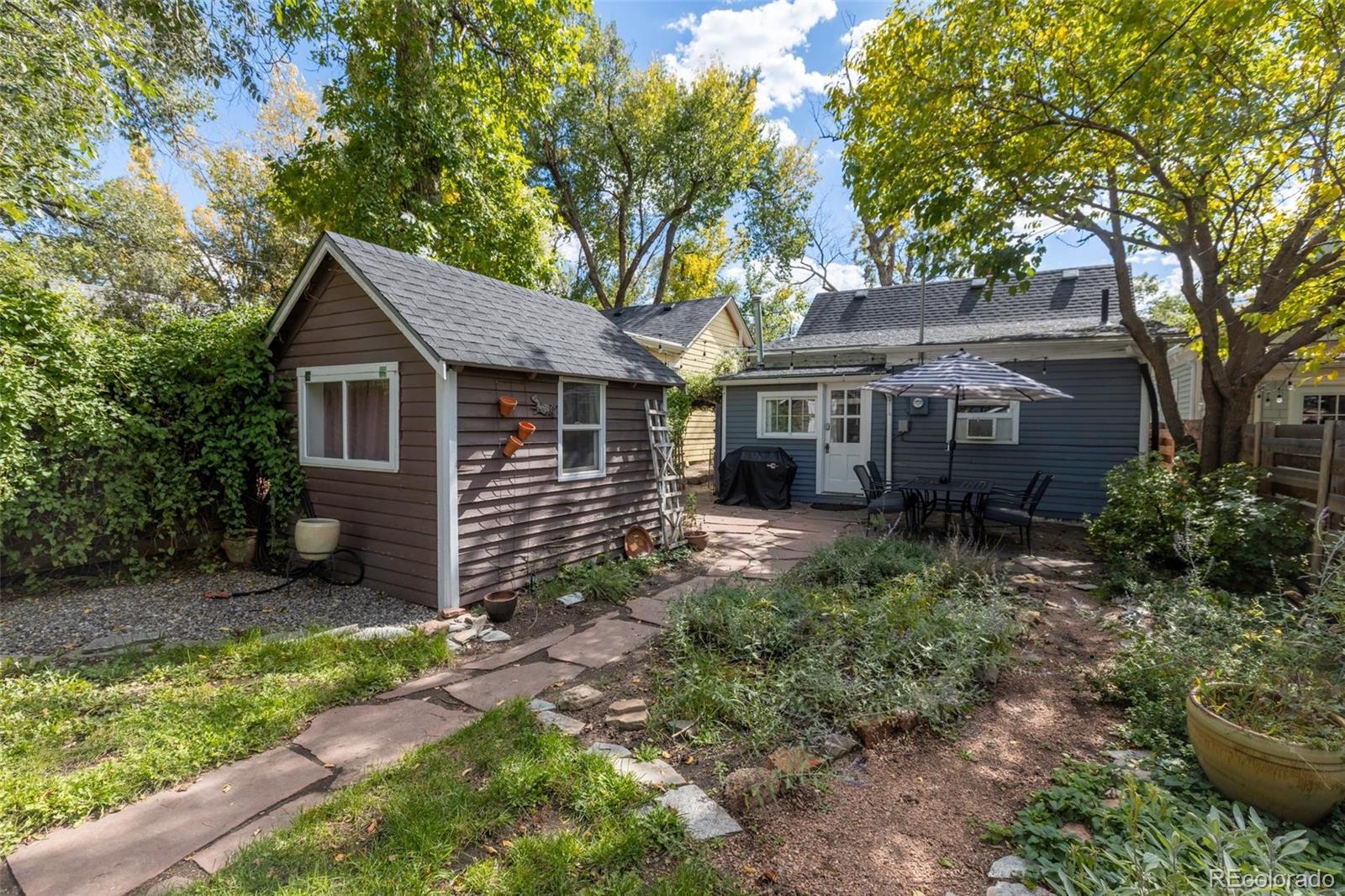 Victorian bungalow living in one of Colorado Springs’ most sought-after old-growth neighborhoods! This 2-bedroom, 1-bath home combines timeless character with modern updates, making it the perfect blend of comfort and style. Step inside to find beautiful hardwood floors that flow throughout, creating a warm and inviting atmosphere. The updated bathroom features a classic clawfoot tub—a true centerpiece that adds a touch of vintage charm. The kitchen is equipped with modern amenities, while outside you’ll discover a private and tranquil backyard with a lovely flagstone patio—ideal for entertaining, dining, or simply relaxing in your own oasis. Unique and quirky, the "shed & breakfast" offers a seasonal charming experience for overnight guest visits. A detached garage and off-street parking add convenience and functionality. Perfectly situated, this home is within walking distance to the Shooks Run trail system and just minutes from downtown Colorado Springs with its shops, dining, and entertainment. This charming bungalow is more than a home—it’s a piece of Colorado Springs history surrounded by the beauty of an established, tree-lined neighborhood.