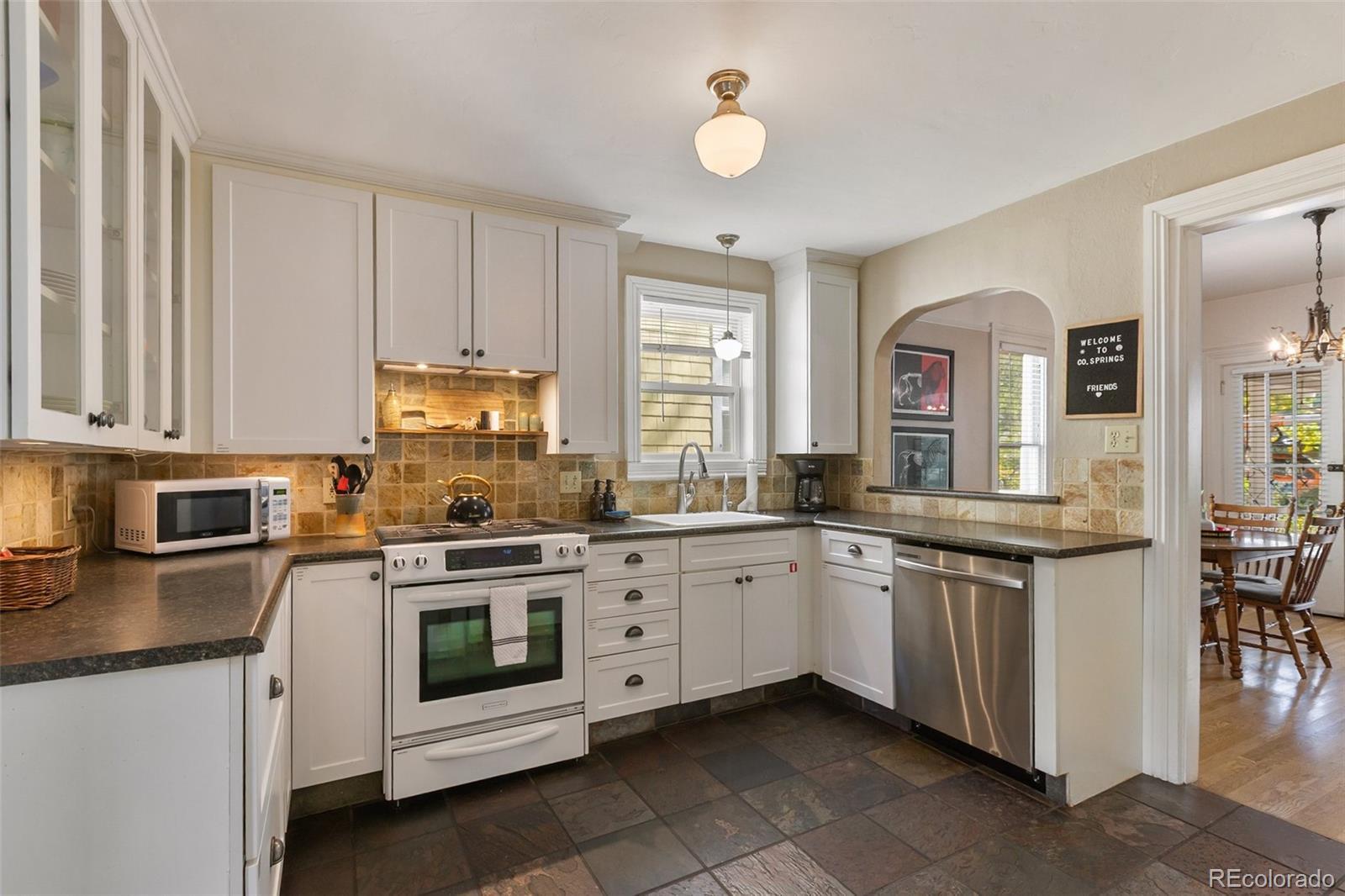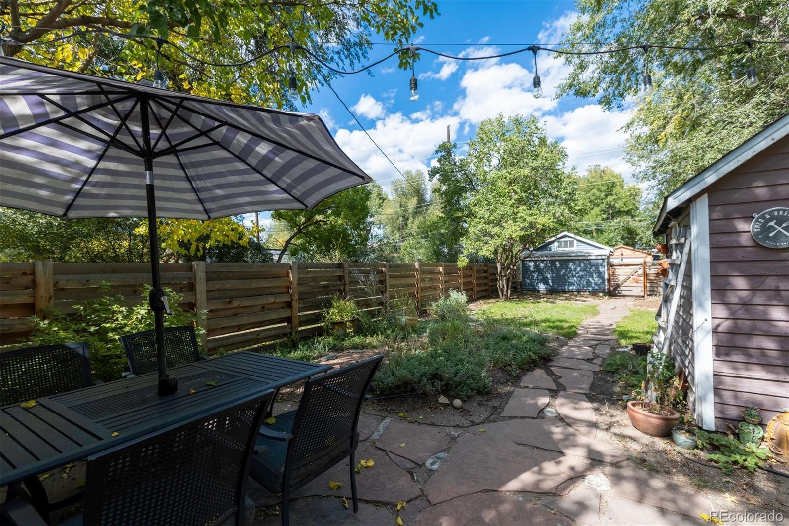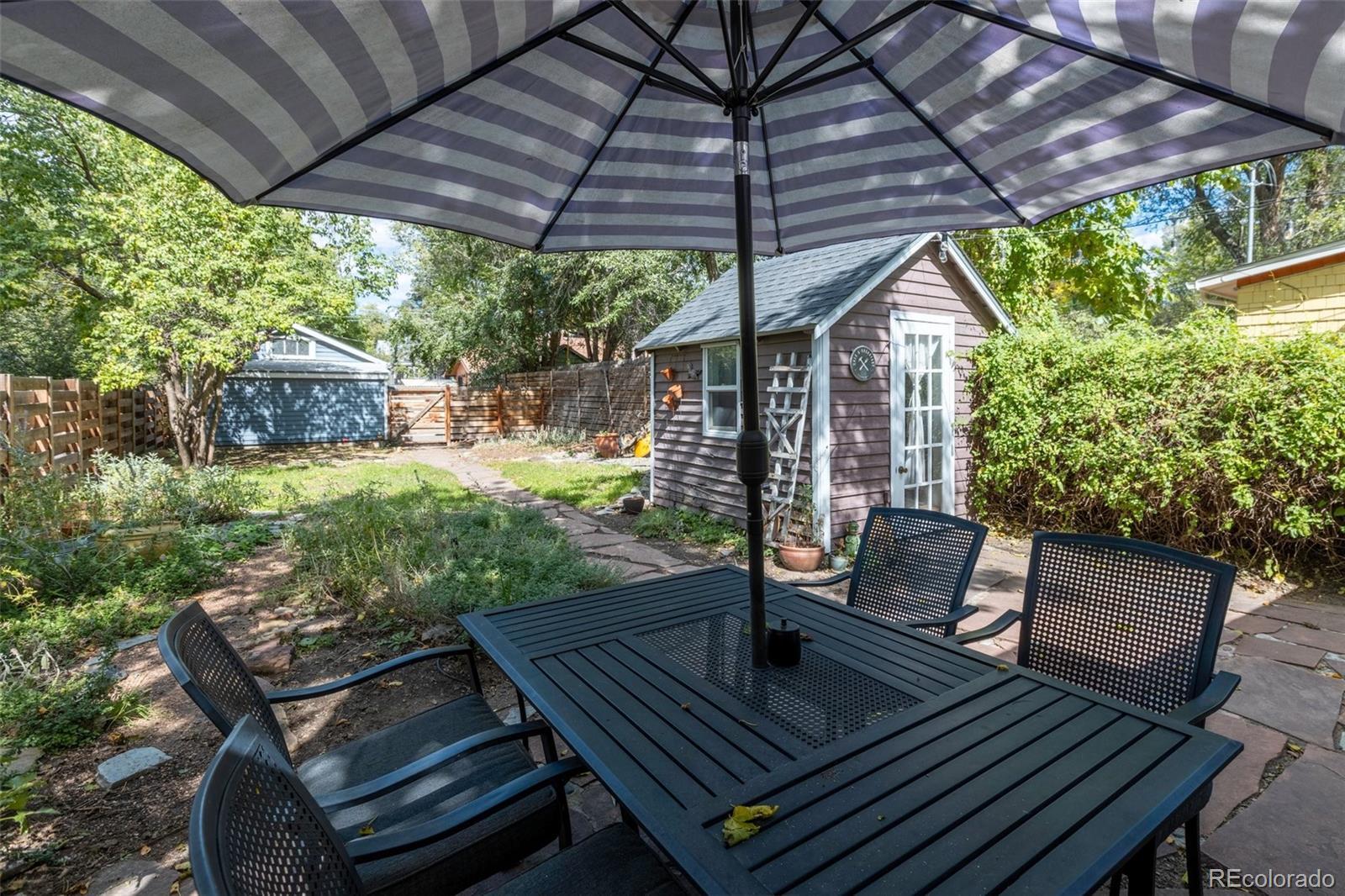 Victorian bungalow living in one of Colorado Springs’ most sought-after old-growth neighborhoods! This 2-bedroom, 1-bath home combines timeless character with modern updates, making it the perfect blend of comfort and style. Step inside to find beautiful hardwood floors that flow throughout, creating a warm and inviting atmosphere. The updated bathroom features a classic clawfoot tub—a true centerpiece that adds a touch of vintage charm. The kitchen is equipped with modern amenities, while outside you’ll discover a private and tranquil backyard with a lovely flagstone patio—ideal for entertaining, dining, or simply relaxing in your own oasis. Unique and quirky, the "shed & breakfast" offers a seasonal charming experience for overnight guest visits. A detached garage and off-street parking add convenience and functionality. Perfectly situated, this home is within walking distance to the Shooks Run trail system and just minutes from downtown Colorado Springs with its shops, dining, and entertainment. This charming bungalow is more than a home—it’s a piece of Colorado Springs history surrounded by the beauty of an established, tree-lined neighborhood.
