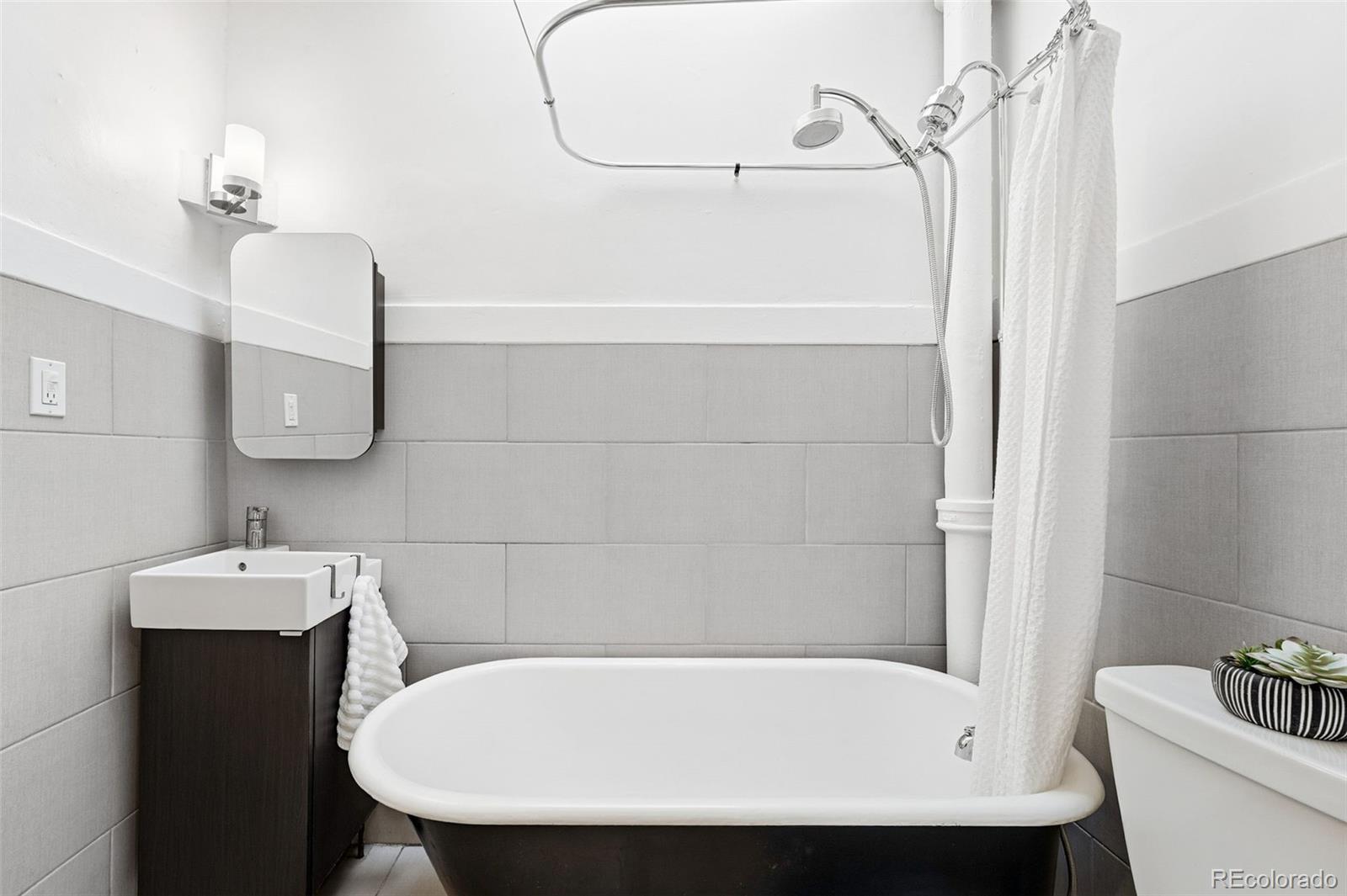Welcome to 664 Meade Street, a beautifully cared for and maintained 1-bedroom, 1-bath bungalow that blends historic charm with modern comfort. This 736 sq. ft. home features tall ceilings and an airy, open layout with a bright living room that flows seamlessly into the spacious dining room and updated kitchen. The kitchen showcases Euro-style cabinets, warm butcher-block countertops, stainless steel appliances, and custom pantry storage—perfect for everyday cooking or entertaining. The light-filled bathroom offers timeless character with a classic claw-foot tub and a skylight that pours in natural light. Enjoy exceptional indoor-outdoor living with a large private deck, fenced yard, and a rare 1-car garage providing secure off-street parking and additional storage. Located in a vibrant Denver neighborhood with quick access to parks, trails, Sloan’s Lake, light rail, Downtown, Belmar, restaurants, and highways. This home is the perfect blend of charm, thoughtful updates, and urban convenience. Don’t miss the chance to make 664 Meade Street yours!