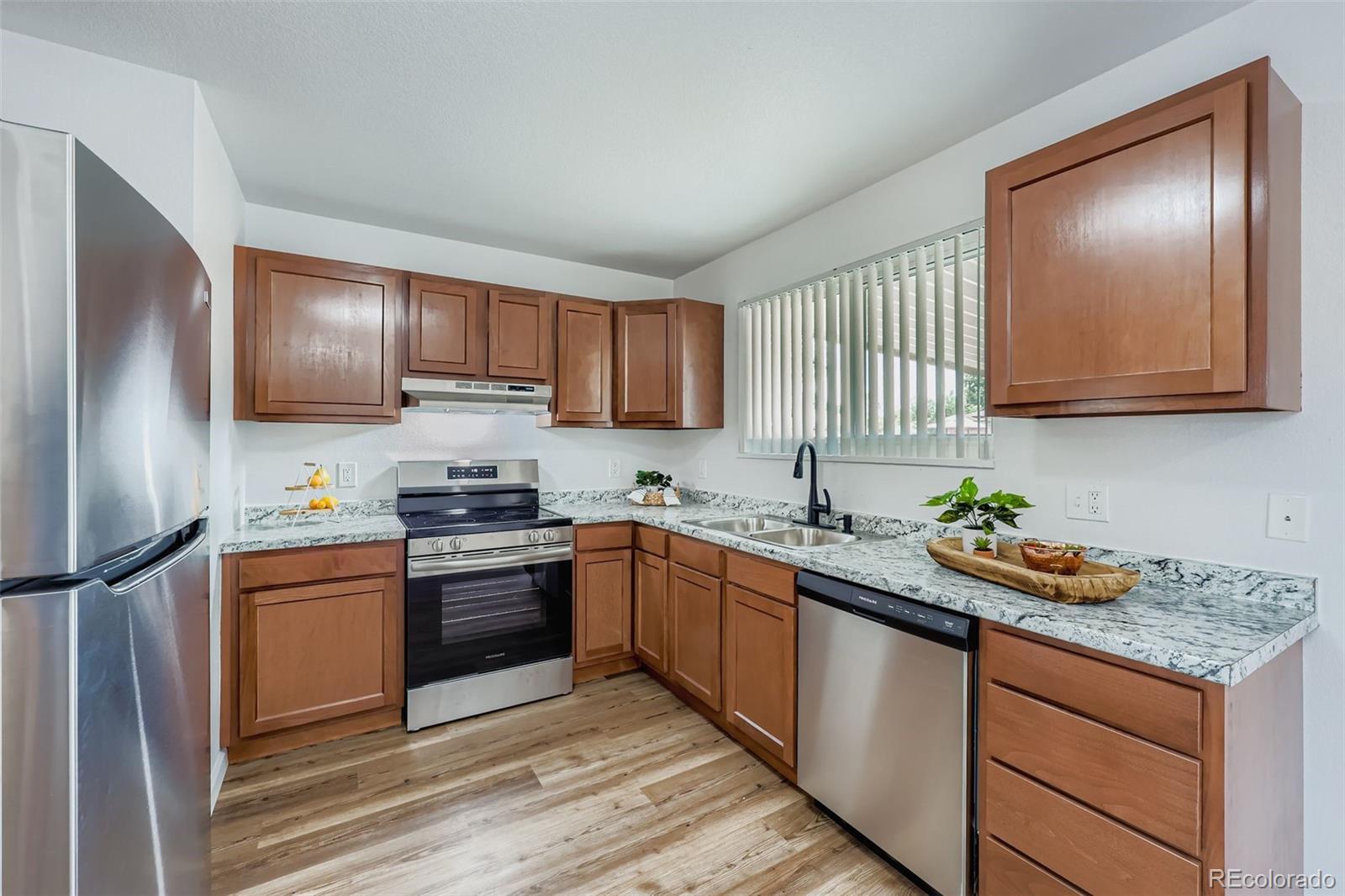 Welcome to 5512 Salem Street, a delightful ranch-style home nestled in the vibrant heart of Denver. This beautifully updated 5-bedroom, 3-bathroom residence combines modern style with comfortable living, ready for you to call home. Inside, you'll be greeted by updated floors and newly painted walls that create a warm, inviting atmosphere. The kitchen is a highlight, featuring brand-new cabinets, countertops, and all new appliances. Each bathroom is fully updated, including the ensuite in the primary bedroom for added privacy. The home’s expansive basement offers a versatile living area perfect for a rec room, workout space, or craft area. It includes two large bedroom equipped with egress windows, ensuring safety and natural light. The spacious laundry room provides ample storage solutions, enhancing your home's functionality. Outside, enjoy the privacy of a new wood fence and the expansive covered back patio—perfect for relaxation or entertaining guests. The 6,970 square foot lot invites your personal touch for landscaping and outdoor enjoyment. Convenience is key with an attached garage, and the comfort of forced-air heating throughout the seasons. Whether you're relaxing on the back patio or utilizing the common outdoor spaces, this home offers plenty of room for all your needs. Schedule a tour today to explore everything this exceptional property has to offer!