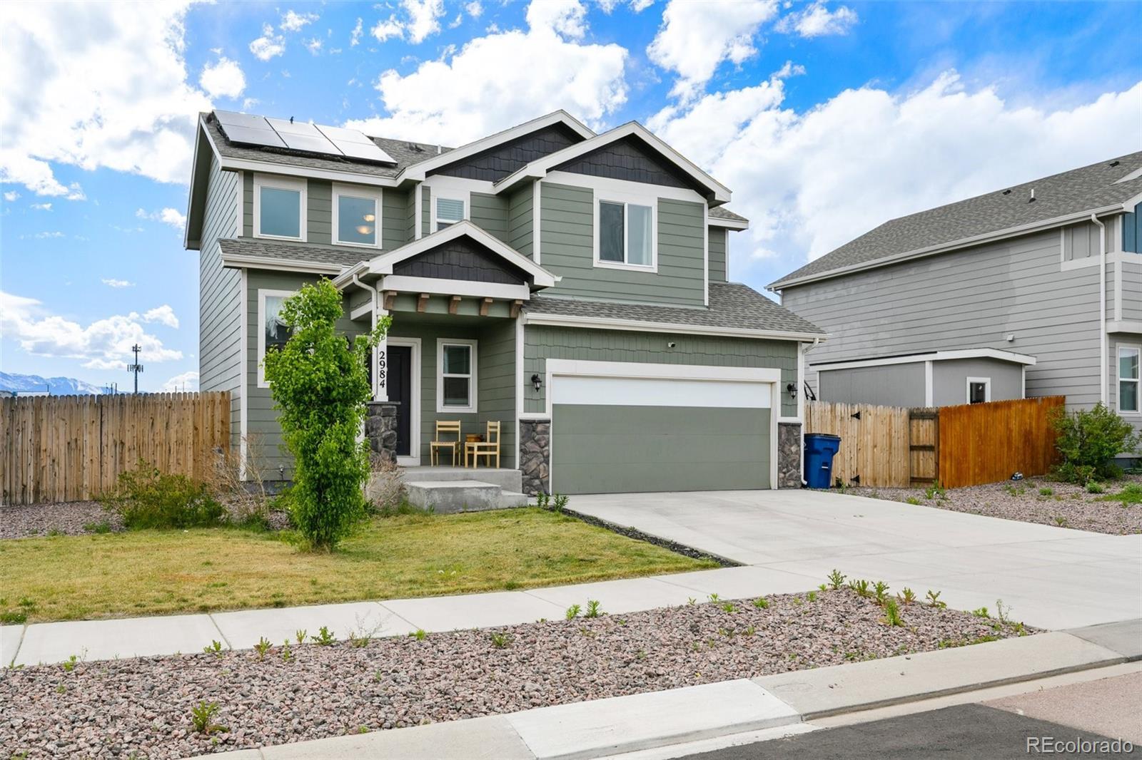 This inviting two-story home welcomes you with a LVP entry, leading into an open-concept floor plan with kitchen and dining area, seamlessly connecting to the spacious living room. The kitchen is equipped with sleek stainless steel appliances and birch cabinetry with crown molding, complemented by recessed lighting. The newly renovated stairs and upstairs hallway lead to the spacious primary suite which offers a private retreat with an attached bathroom featuring double vanity, a separate shower and toilet room, and a walk-in closet. Two additional bedrooms provide ample space, while the upstairs laundry room adds convenience. Energy efficiency is ensured with the use of solar panels. This large lot is located near shopping centers, commuting routes, and offers mountain views, this home combines convenience with natural beauty. The blend of modern amenities and thoughtful design, make this home worth seeing!