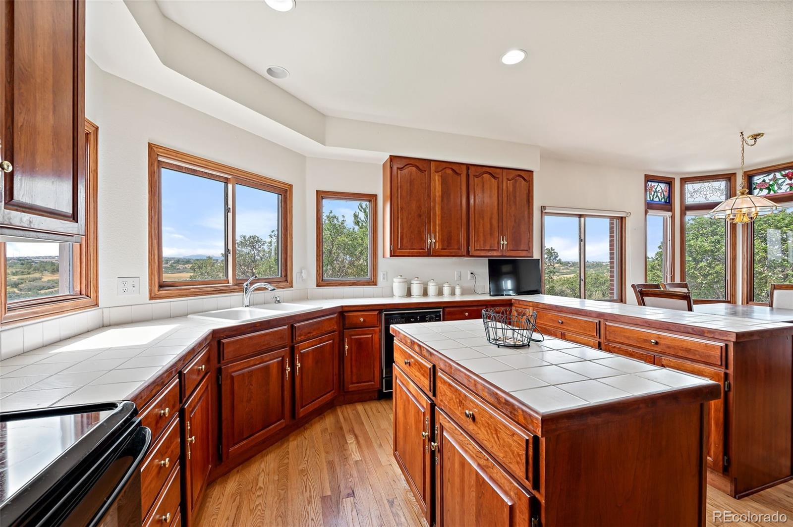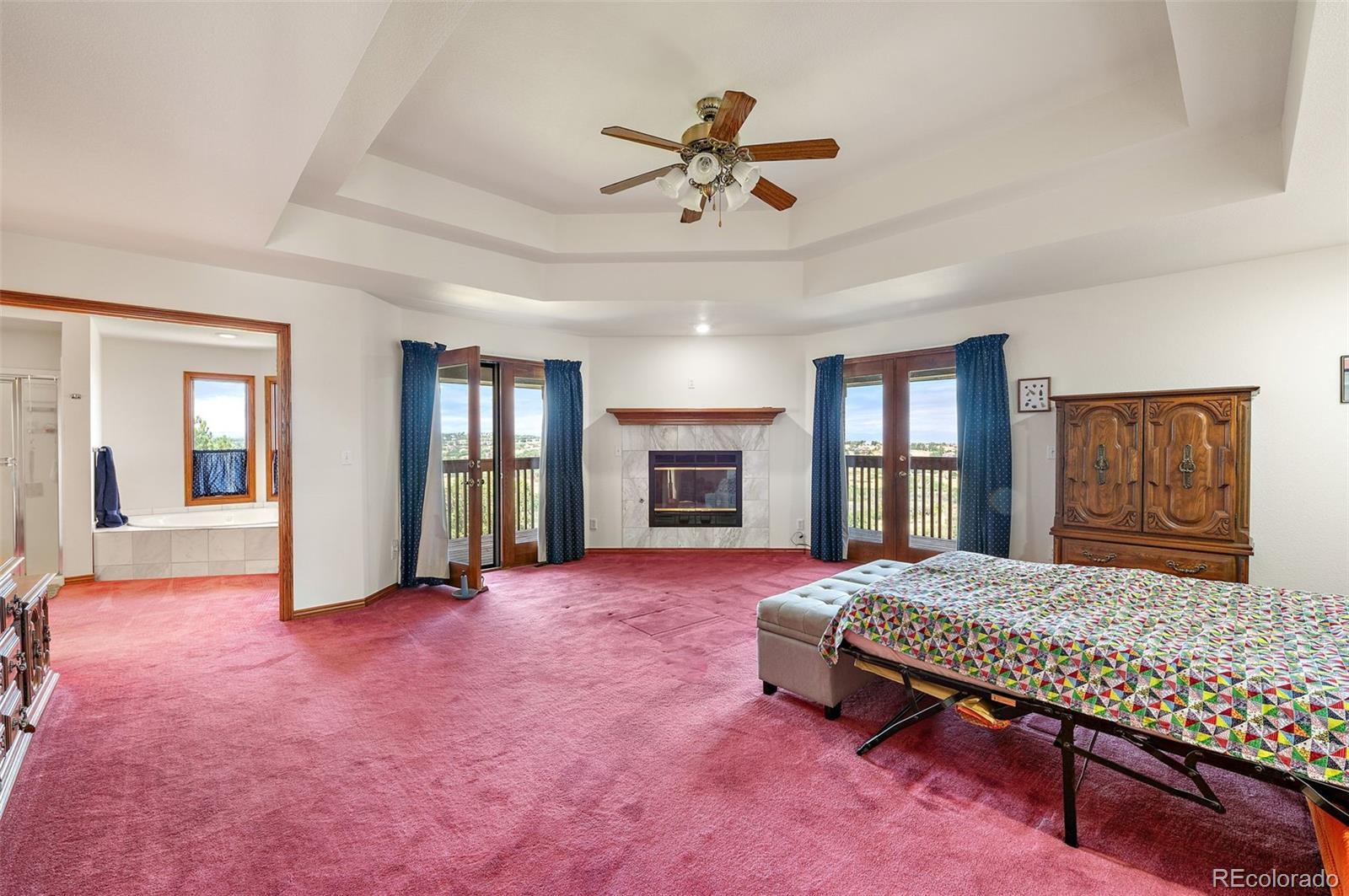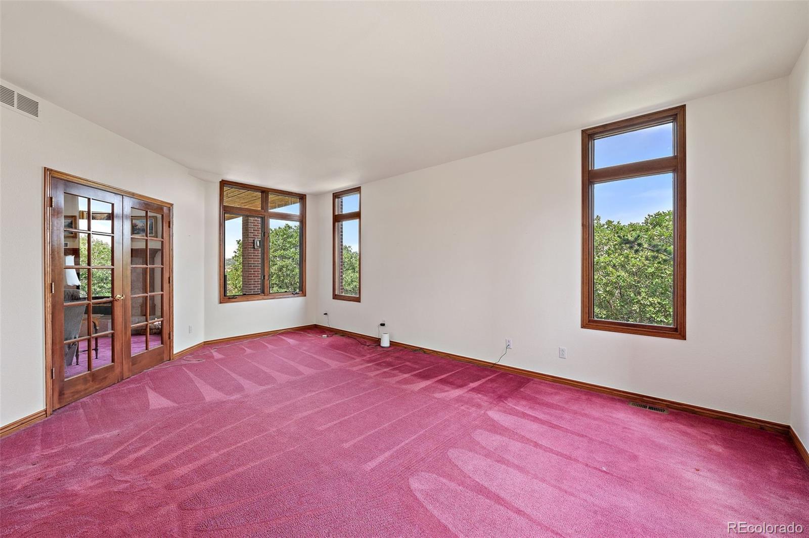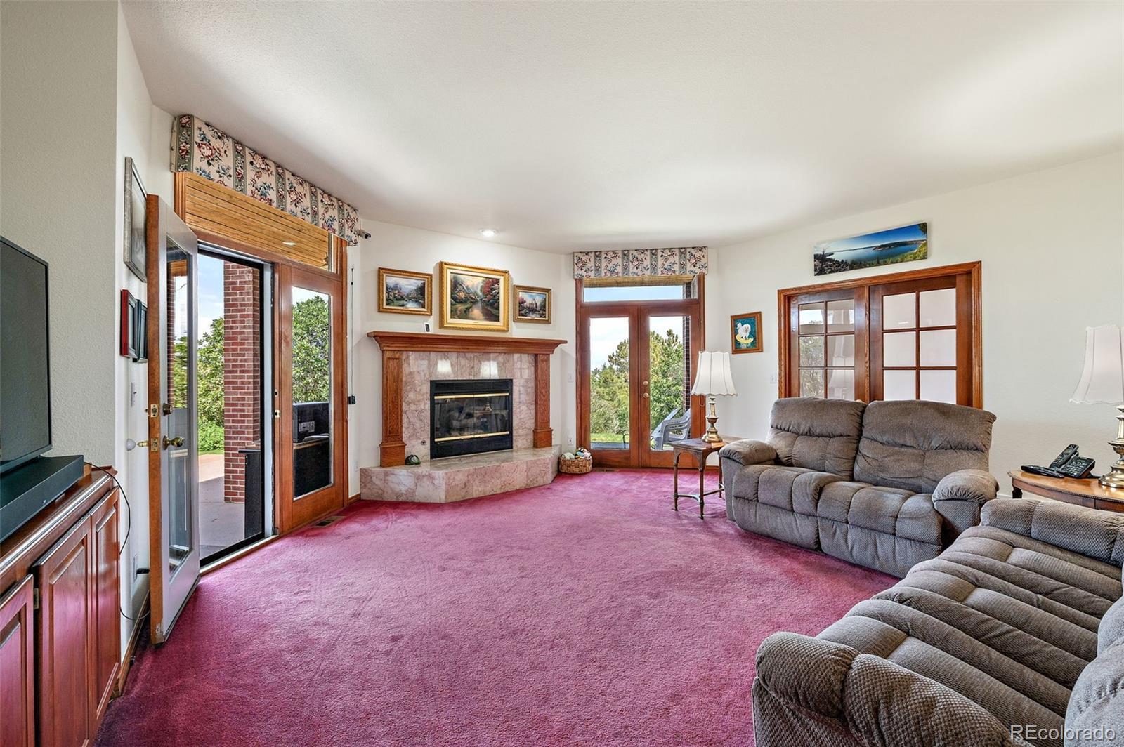 Gorgeous red brick home with 3 Bedrooms and 3.5 bathrooms on 5 acres with views of Pikes Peak to Longs Peak just south of DTC. This home offers a remote private feel just outside conveniences of the city. The main living area offers kitchen with walk in pantry, and large eat in area with views of the mountains that connects to a covered patio. In addition, there is a family room, formal dining and living room with fireplace, half bath, and laundry room. The second level includes 3 bedrooms all of which have their own bathrooms - Yes, 3 en-suite bedrooms. The primary bedroom includes a 5 piece en-suite with huge walk in closet and fireplace. From the primary bedroom, walk out to the covered deck to enjoy relaxing views and sunsets over Pikes Peak to Longs peak. Large front patio facing east to enjoy eating outside in the shade. This property is surrounded by Oak sage, and <150> Ponderosa pine and Juniper trees that were planted 25+ years ago. Expect regular visits from the local wildlife as well. The 3 car garage offers a work shop area, car lift in one bay, hard air lines plumbed throughout the garage and to basement, and drains in the floor. There is plenty of space on the property to park boats, RV’s, trailers, etc… The 1800 sq ft walk out basements awaits your design to make it your own getaway. Additional upgrades include: Central vacuum system, complete sprinkler and drip system, water softener, cement tile roofing, and available chimney stack in basement. Property is about 5 minutes to Castle Village shopping and dining, and a short commute to DTC.