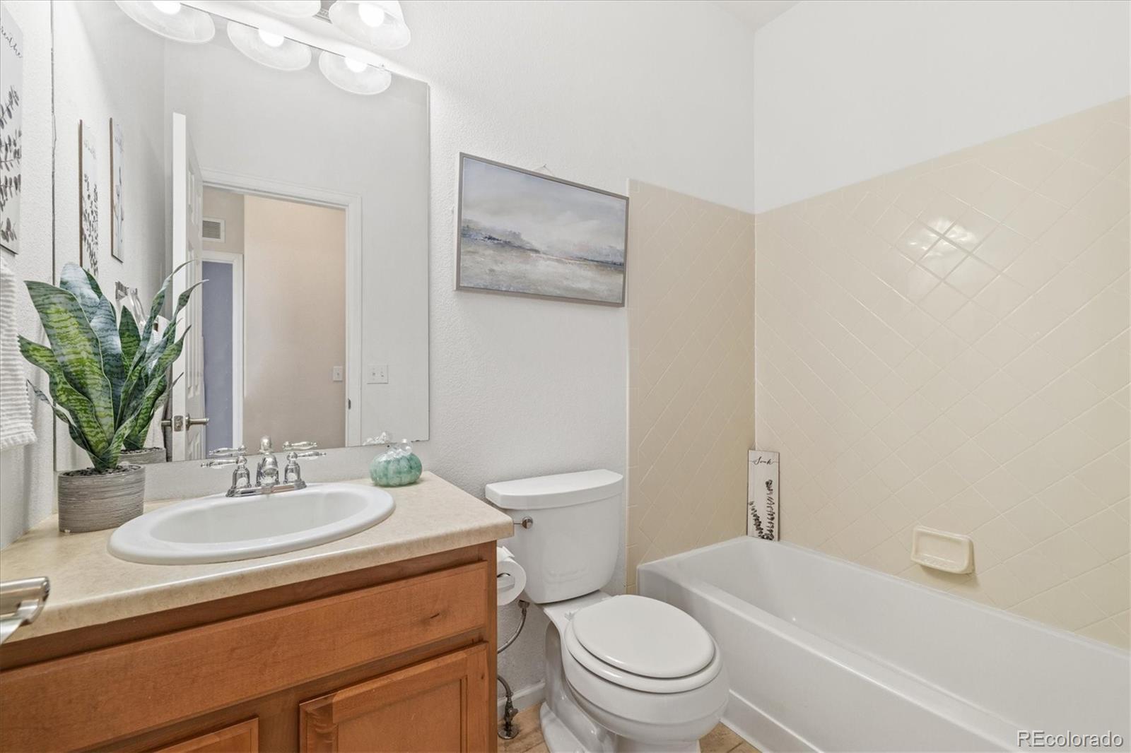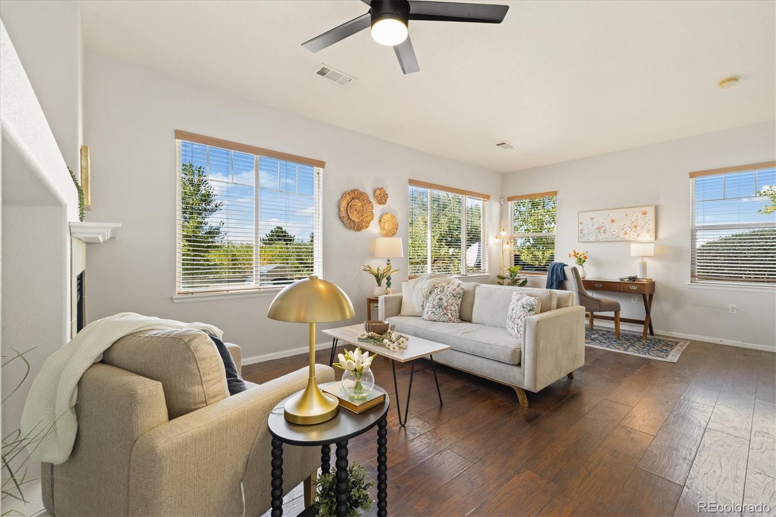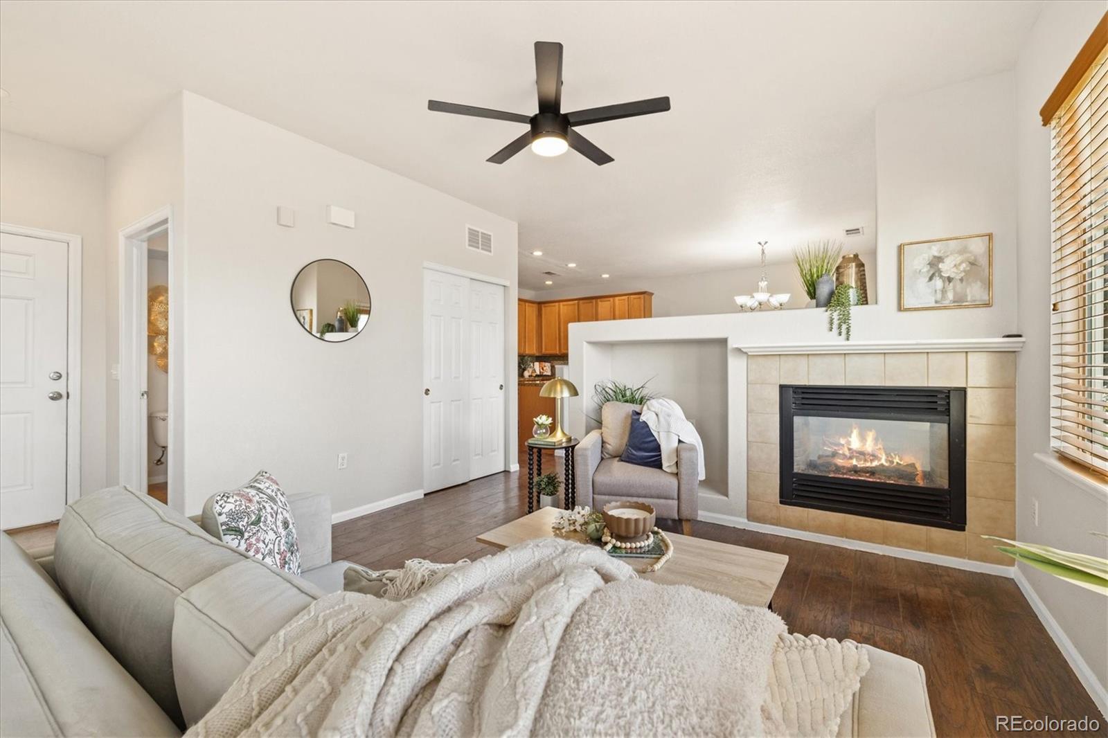 Welcome Home to this spacious 3-bedroom, 3-bathroom townhome like condo in the highly desirable Thorncreek Village community with low monthly HOA and FHA/VA approved. Boasting an open floor plan, the main living area features a cozy double-sided fireplace—perfect for relaxing evenings or entertaining guests. Enjoy a home cooked meal in the kitchen with granite countertops and ample cabinet space. Upstairs, you’ll find all three bedrooms, including a generous primary suite with an ensuite bathroom and walk-in closet, as well as a full guest bathroom for added convenience. Enjoy Colorado’s outdoor lifestyle with a private, fenced backyard that has mountainous views to enjoy Colorado sunsets. This home also includes a 2-car attached garage and thoughtful community amenities such as front and back yard maintenance, trash service, water, and community pool access. Located just minutes from I-25, shopping, dining, scenic nature trails, and Thorncreek Golf Course, this home offers the perfect blend of comfort, convenience, and community living. Seller is offering 6 months paid HOA dues with acceptable offer.