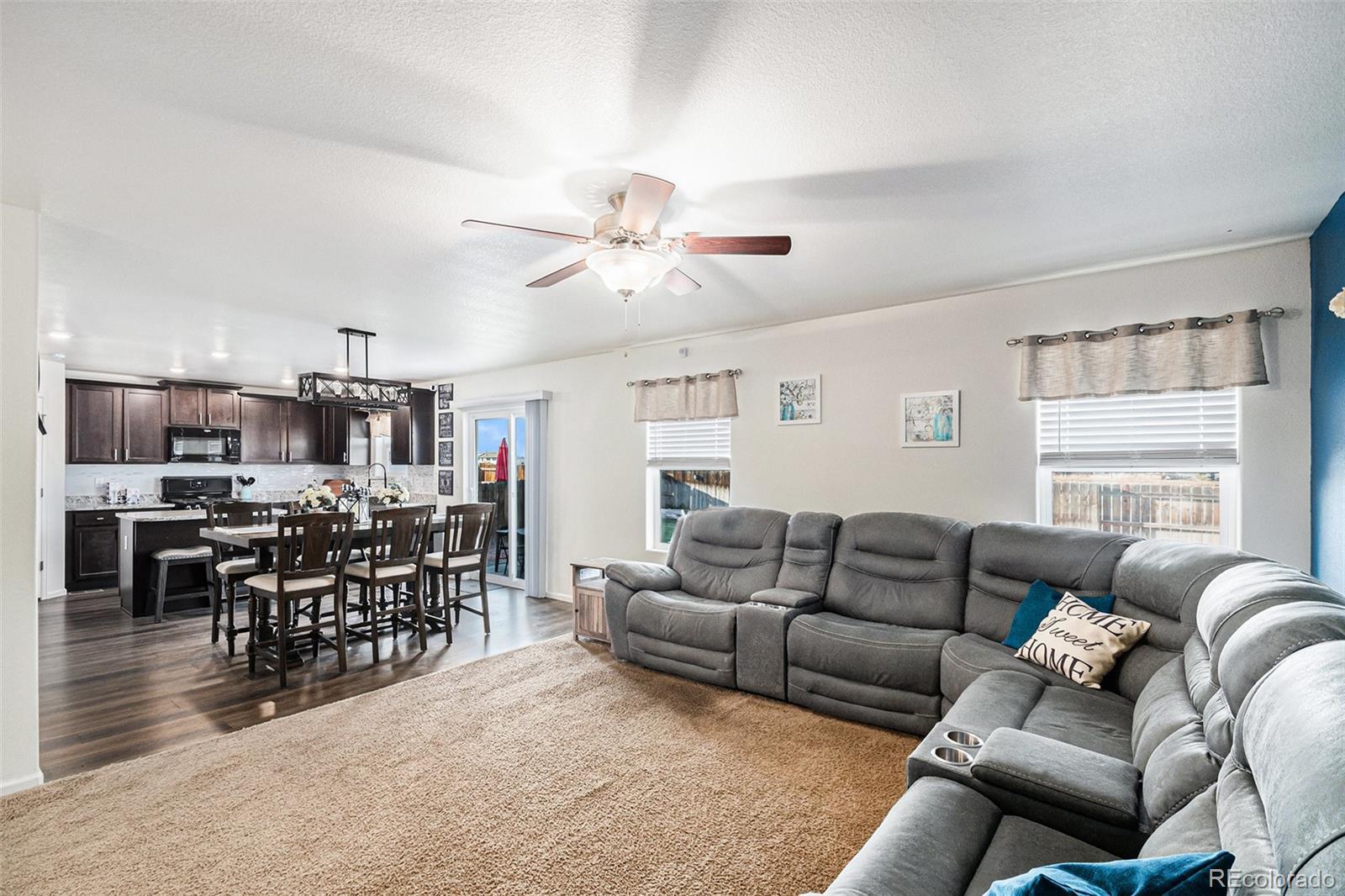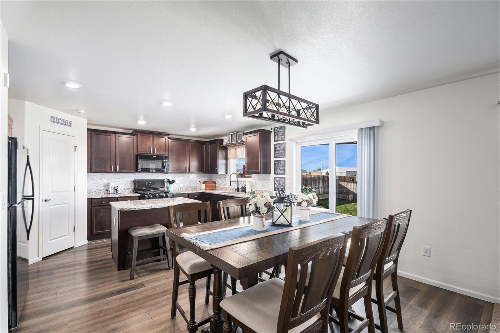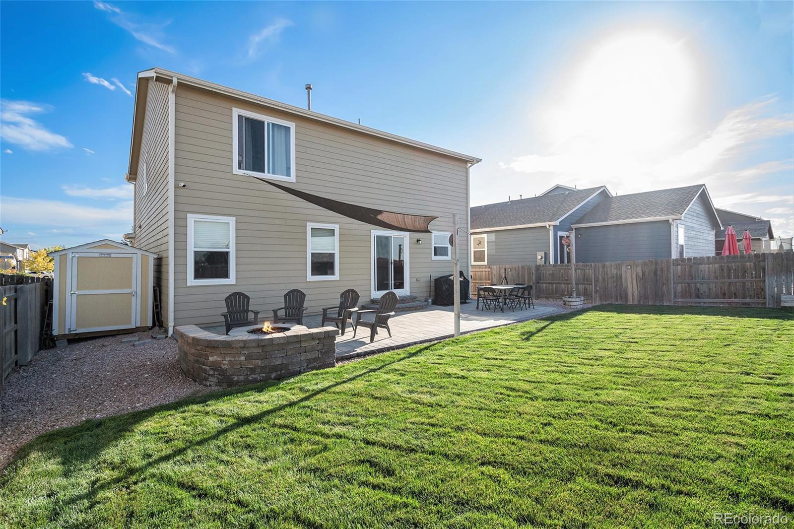 Move-in ready and fully equipped, this 4-bedroom plus main-floor office home in Bella Vista, Lochbuie has everything done for you. Built in 2019, it features a bright open floor plan with a granite kitchen, gas cooktop, walk-in pantry, and large island that opens to the living and dining areas – perfect for entertaining and everyday life. Upstairs you’ll find four spacious bedrooms, including a primary suite with walk-in closet and private bath, plus a convenient upstairs laundry room. Outside, enjoy a fully fenced backyard with extended patio and built-in gas fire pit – ready for Colorado evenings with friends and family. This home truly stands out for its move-in readiness. All major appliances and smart features are included: refrigerator, washer, dryer, smart lock, video doorbell, thermostat, and security system. Simply unpack and start living. Located in the sought-after Bella Vista community, close to parks, playgrounds, and walking trails, with easy access to I-76 for quick commutes to Brighton, Thornton, and Denver. Low HOA, newer construction, energy-efficient design.