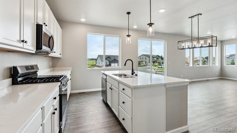This home is eligible for a below-market fixed interest rate through Landsea Homes' preferred lender, available for a limited time. Terms and conditions apply, contact the onsite sales associate for more information! Fabulous 2 story home in the sought after Highlands Preserve community in Mead has a well-appointed kitchen with big island, white cabinets, quartz countertops, gas range and walk-in pantry that overlooks a spacious dining and great room area-boasting plenty of space for entertaining with direct access to the backyard. Additional main-floor highlights include a study and powder bath off the foyer. Heading upstairs, you'll find a versatile loft with access to two secondary bedrooms-one, a full hall bath, and a lavish primary suite with a large walk-in closet and attached bath. This home has a 22’ deep 2 car garage, garage door openers, a/c and air purification system on corner lot! This a High-Performance Home which means it’s designed to respect the planet with money-saving innovation to stay healthier and more comfortable, along with home automation technology so it’s easier to take on every day. Schedule an appointment to see your future home at Highlands Preserve today!