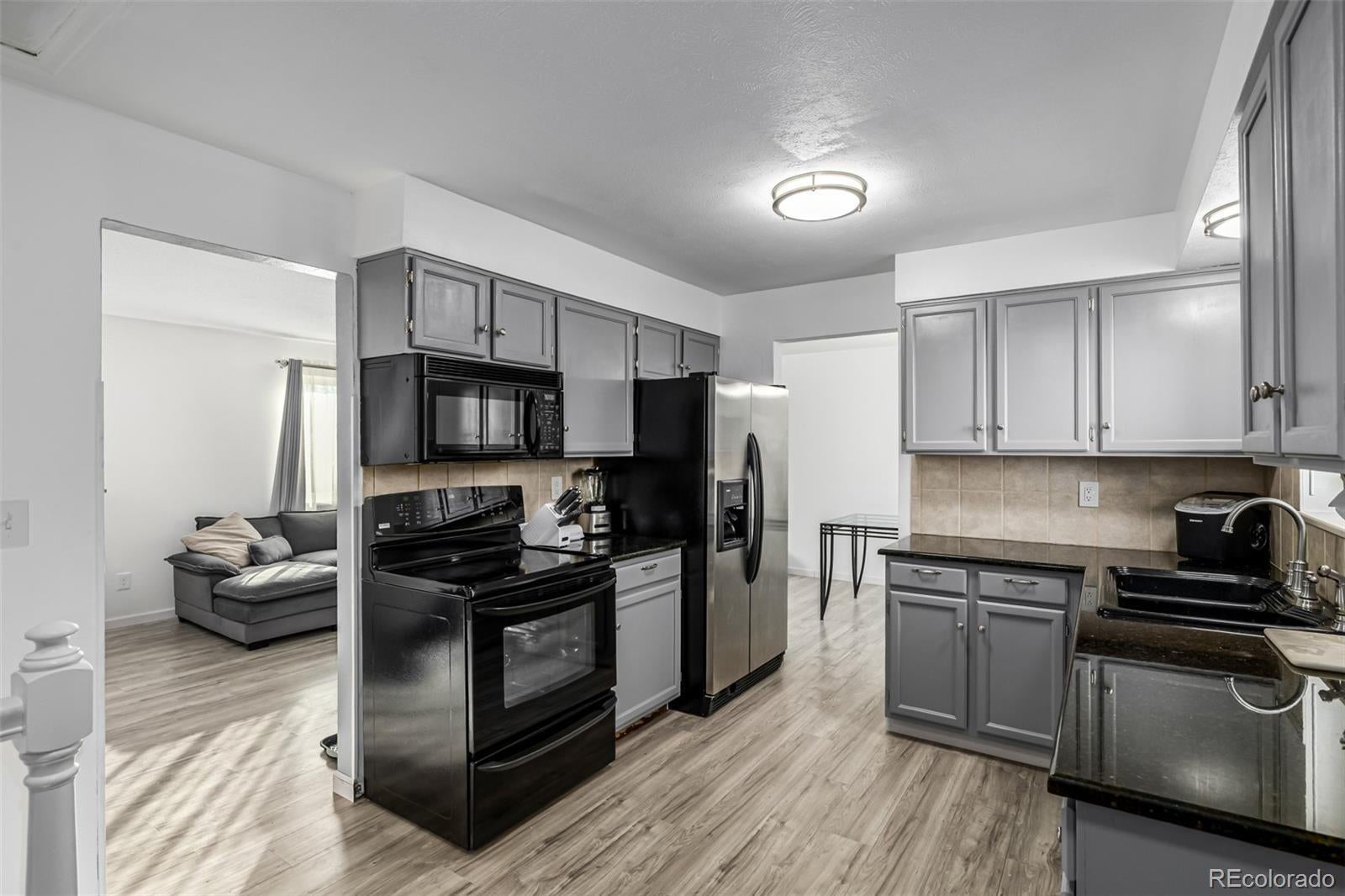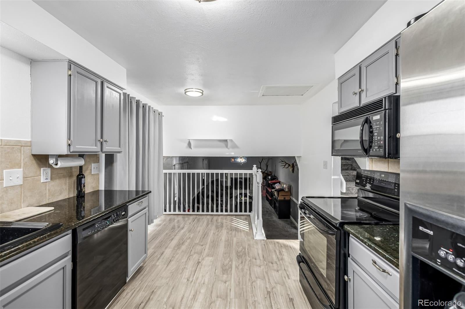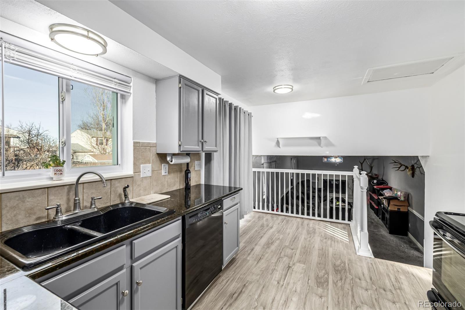 FINALLY—an affordable, beautifully updated home in Gateway! Perfectly located within walking distance to Gateway High School, Buckley Space Force Base, shopping, dining, parks, and so much more, this 3-bedroom, 3-bath gem with a finished basement sits in the quiet, welcoming community of Willow Park. And with quick access to 225 to the Denver Tech Center, Denver International, light rail, travel is a breeze! Step inside to an inviting layout featuring a fully updated kitchen with granite countertops, luxury stainless steel appliances, brand-new LVP flooring, modern lighting, and thoughtful touches throughout. The large living room is ideal for hosting friends and family, while the cozy den offers the perfect spot to watch the Broncos bring home another win or to unwind by the fireplace during the holidays. Downstairs, the finished basement adds even more versatility—whether you need a play space, game room, home theater, or a hangout for adult kids. It even includes a generous bar area ready for entertaining. The spacious backyard gives your pets plenty of room to roam and includes a sizable storage shed for garden tools, bikes, or hobbies. Bring your ideas, add your personal style, and make this home truly your own. Don’t wait—opportunities like this don’t stay on the market long! Come see it before the clock strikes midnight.