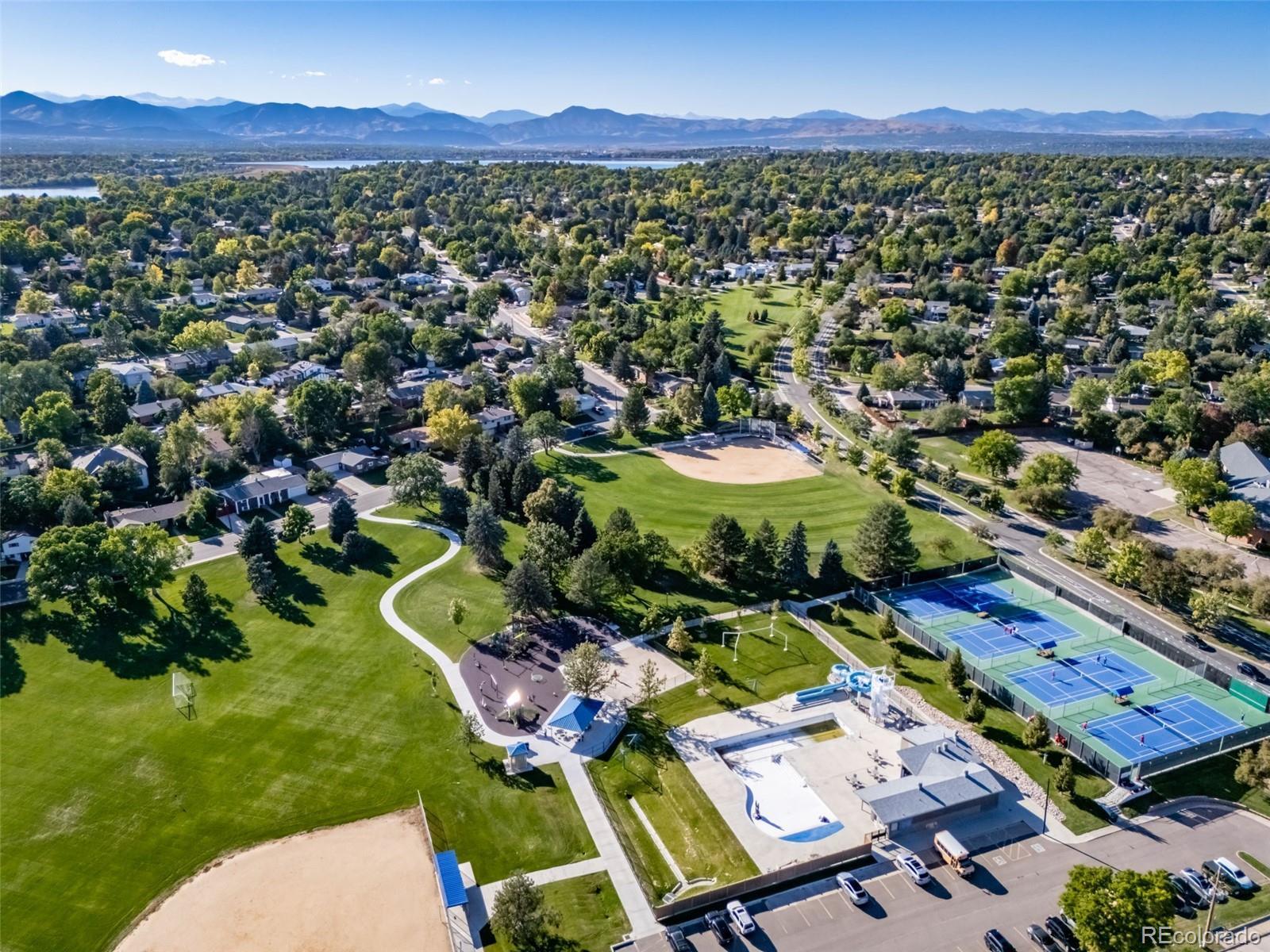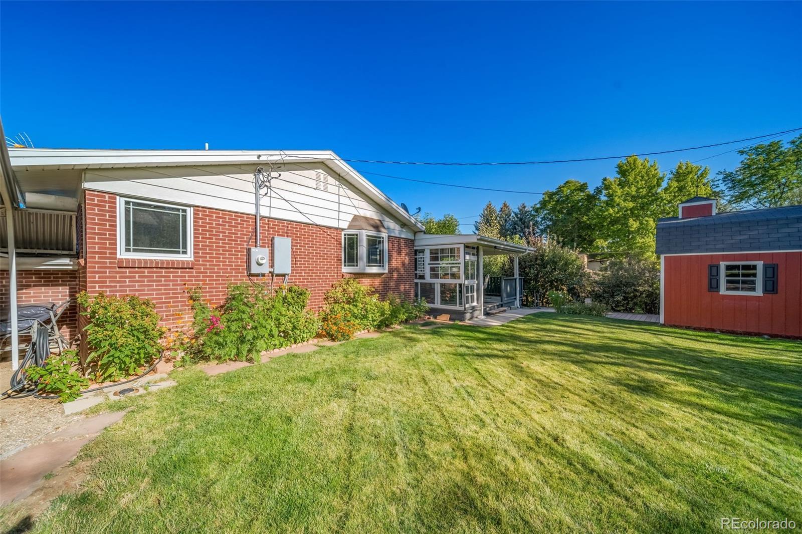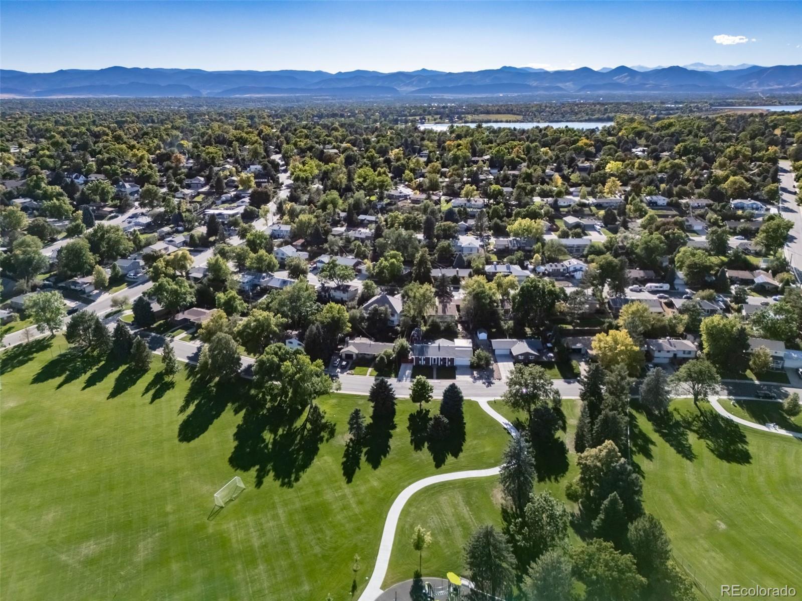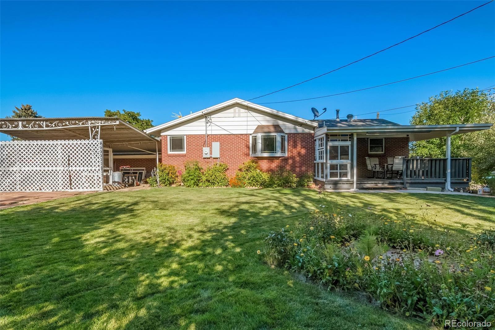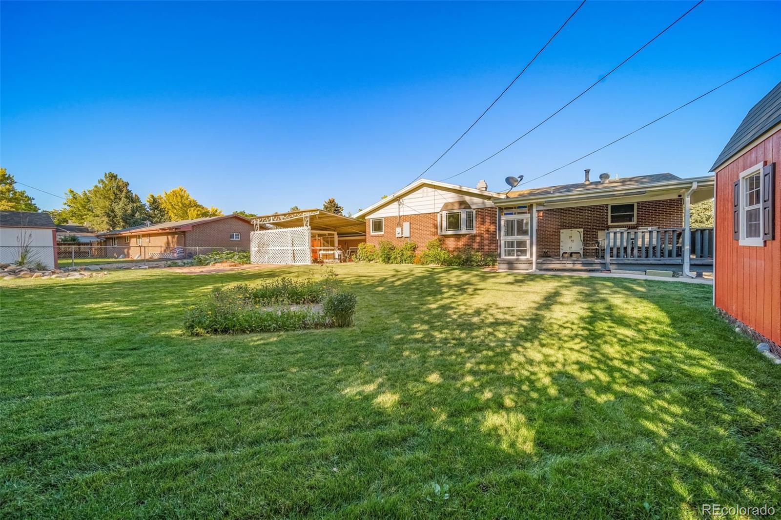 Location! Location ! Location ! Situated across from an incredible park with baseball and soccer fields, tennis court, and South Suburban District swimming pool, country club living without the fees and expense. Welcome home to this elegant and wonderful, solid brick bi- level home with tremendous street appeal with six columns adorning the front porch. With an abundance of natural light, this beautiful bright home is extremely open and inviting with wonderful living spaces inside and outside for family, friends and entertaining. Upon entry you will be welcomed into the spacious living room open to the kitchen which opens to the dining room with woodburning fireplace. The primary suite with half bath and another spacious bedroom and full bath complete the upper level. On the lower level, there are two very generous bedrooms and a spacious family room/media room. Relax and unwind on your covered and shaded spacious deck which overlooks the large fenced backyard with a 20 x 12 shed for hobbies, workshop and toys. Enjoy your garden area and additional covered area with chicken coop. Lots of parking space with the attached oversized two car garage, two driveways and additional room for RV and storage. Lots of room for toys, ideal for a contractor. This fabulous location is close to shopping, dining and downtown Littleton with light rail and many upscale restaurants.