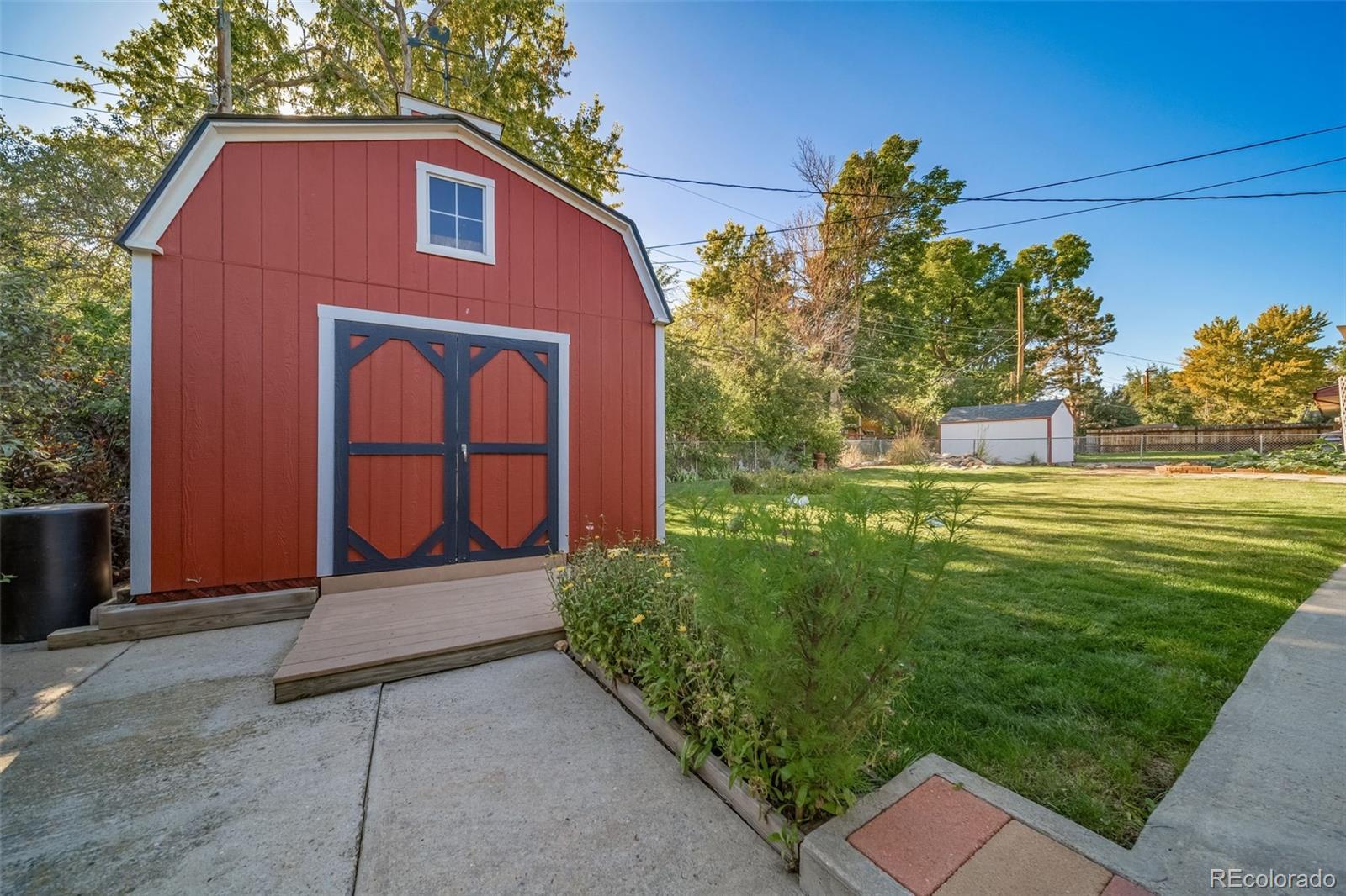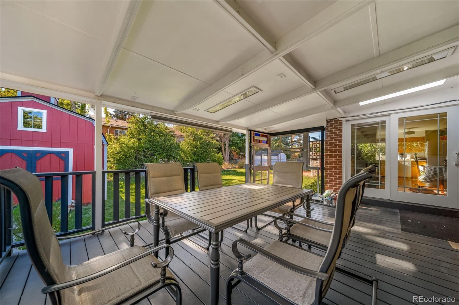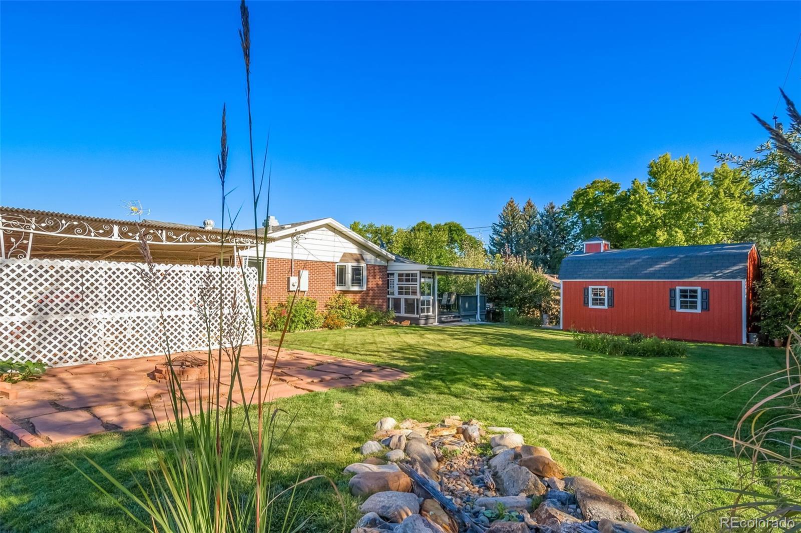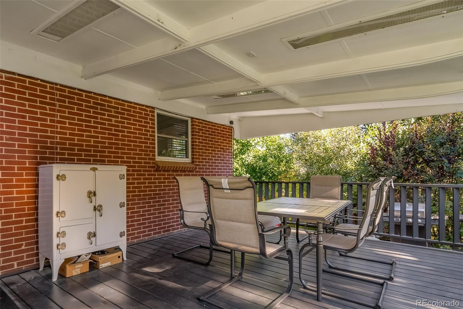 Location! Location ! Location ! Situated across from an incredible park with baseball and soccer fields, tennis court, and South Suburban District swimming pool, country club living without the fees and expense. Welcome home to this elegant and wonderful, solid brick bi- level home with tremendous street appeal with six columns adorning the front porch. With an abundance of natural light, this beautiful bright home is extremely open and inviting with wonderful living spaces inside and outside for family, friends and entertaining. Upon entry you will be welcomed into the spacious living room open to the kitchen which opens to the dining room with woodburning fireplace. The primary suite with half bath and another spacious bedroom and full bath complete the upper level. On the lower level, there are two very generous bedrooms and a spacious family room/media room. Relax and unwind on your covered and shaded spacious deck which overlooks the large fenced backyard with a 20 x 12 shed for hobbies, workshop and toys. Enjoy your garden area and additional covered area with chicken coop. Lots of parking space with the attached oversized two car garage, two driveways and additional room for RV and storage. Lots of room for toys, ideal for a contractor. This fabulous location is close to shopping, dining and downtown Littleton with light rail and many upscale restaurants.