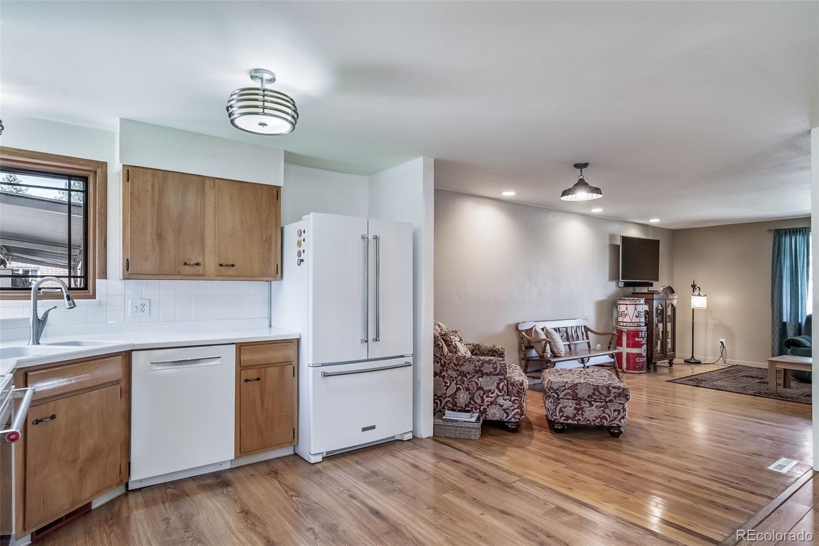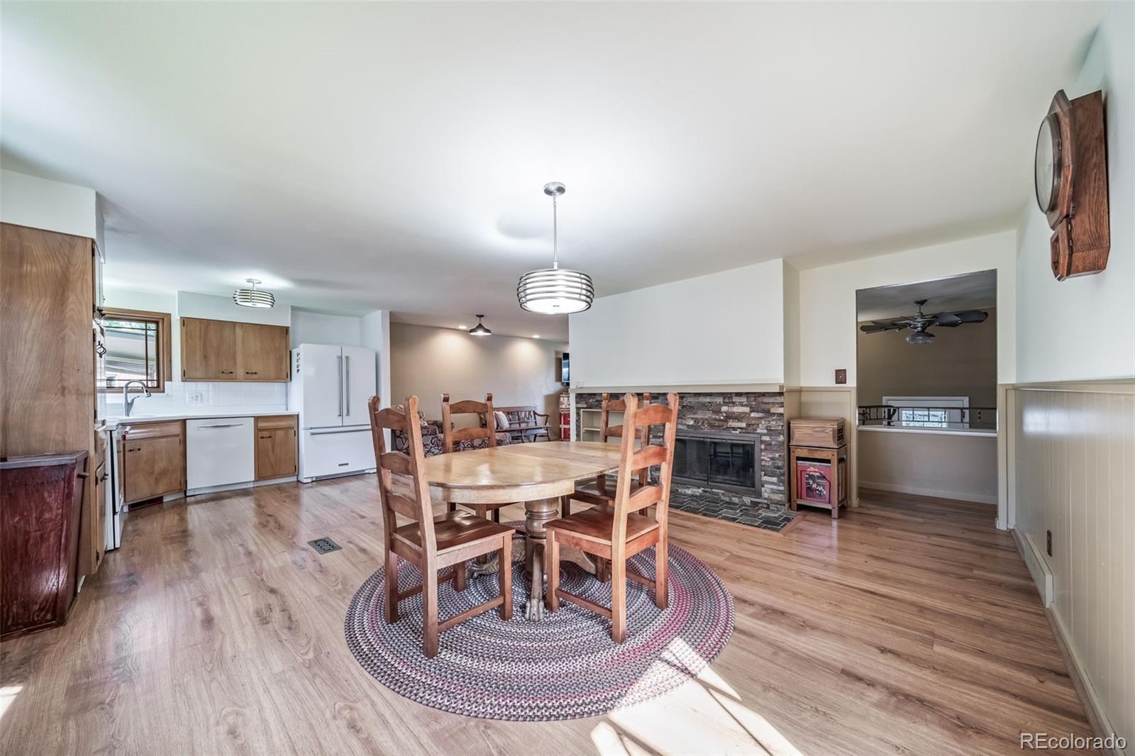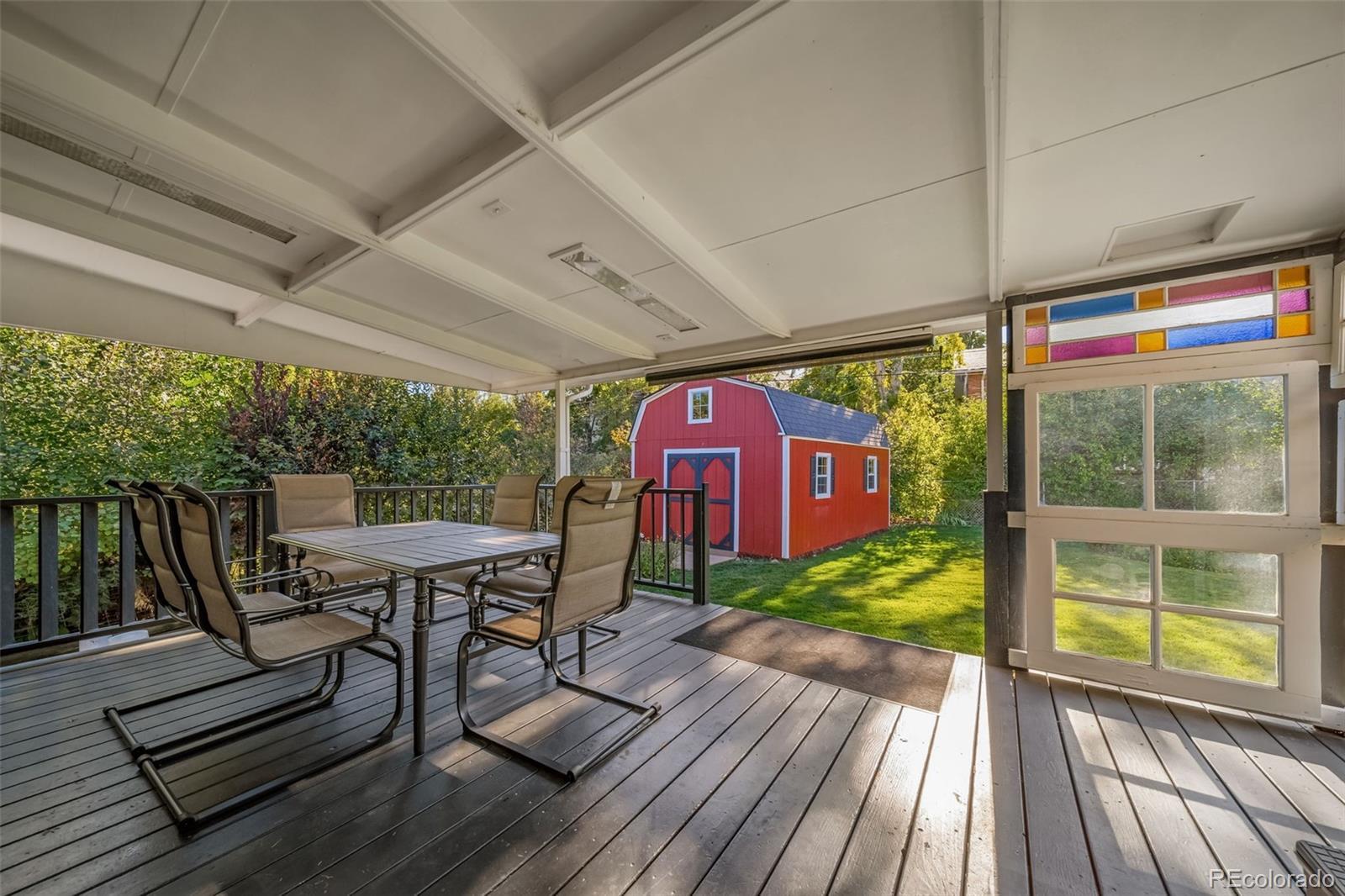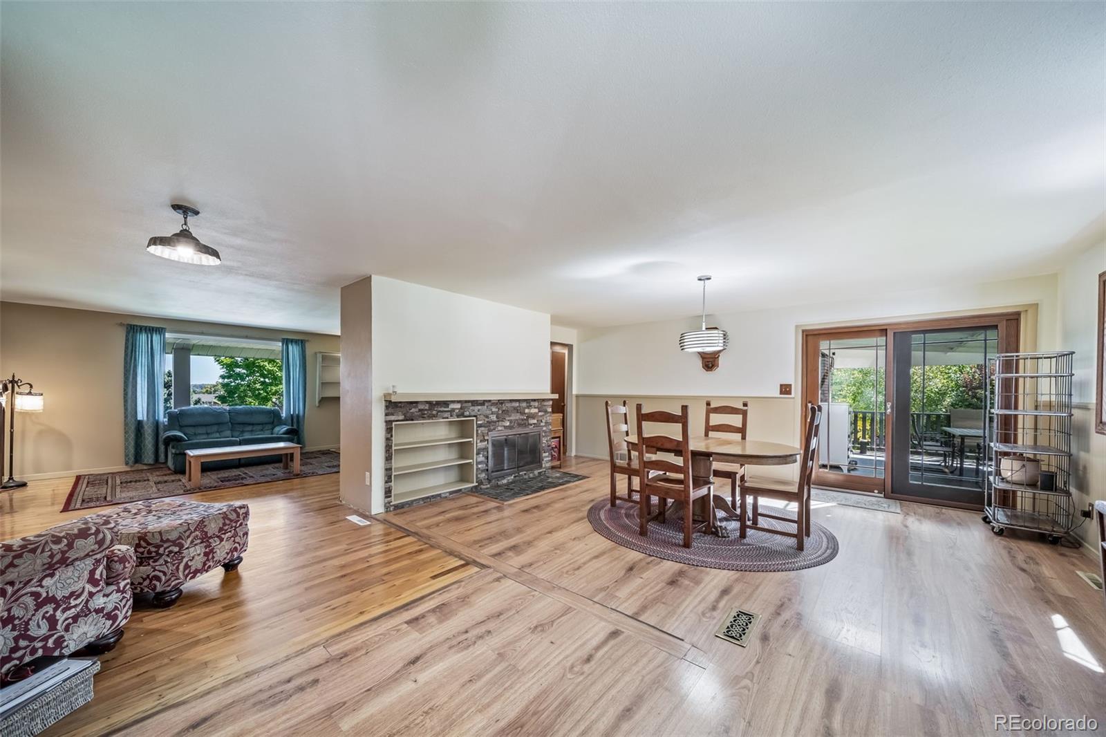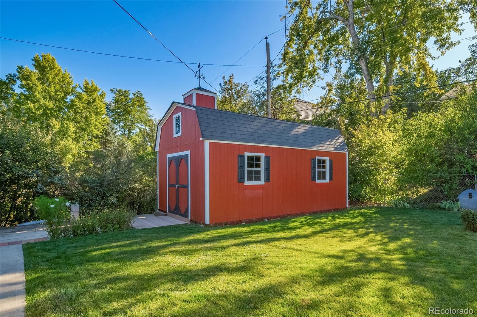 Location! Location ! Location ! Situated across from an incredible park with baseball and soccer fields, tennis court, and South Suburban District swimming pool, country club living without the fees and expense. Welcome home to this elegant and wonderful, solid brick bi- level home with tremendous street appeal with six columns adorning the front porch. With an abundance of natural light, this beautiful bright home is extremely open and inviting with wonderful living spaces inside and outside for family, friends and entertaining. Upon entry you will be welcomed into the spacious living room open to the kitchen which opens to the dining room with woodburning fireplace. The primary suite with half bath and another spacious bedroom and full bath complete the upper level. On the lower level, there are two very generous bedrooms and a spacious family room/media room. Relax and unwind on your covered and shaded spacious deck which overlooks the large fenced backyard with a 20 x 12 shed for hobbies, workshop and toys. Enjoy your garden area and additional covered area with chicken coop. Lots of parking space with the attached oversized two car garage, two driveways and additional room for RV and storage. Lots of room for toys, ideal for a contractor. This fabulous location is close to shopping, dining and downtown Littleton with light rail and many upscale restaurants.