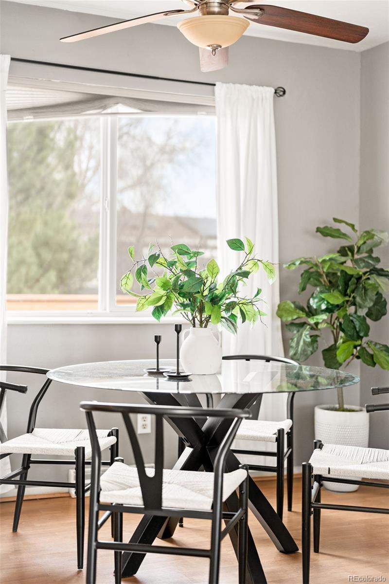 Sunlit opportunity meets inviting comfort in this Countryside residence. Offering exceptional potential for investment or starter home, this property presents move-in ready ease with newer mechanicals and natural light throughout. A spacious living area, highlighted by a stylish panel accent wall, creates a warm and welcoming first impression. The kitchen flows seamlessly into a bright dining area and features abundant cabinetry and stainless steel appliances for effortless daily living. Three sizable bedrooms are complemented by two serene bathrooms. Thoughtfully designed for both relaxation and entertaining, the private backyard boasts a generous yard size, an expansive deck and a fire pit — ideal for Colorado evenings under the stars. With a prime location and functional layout, this home is complete with an attached one-car garage.