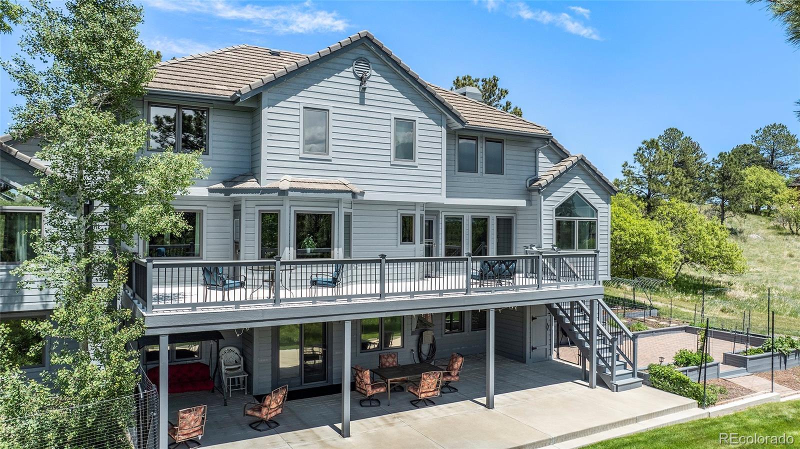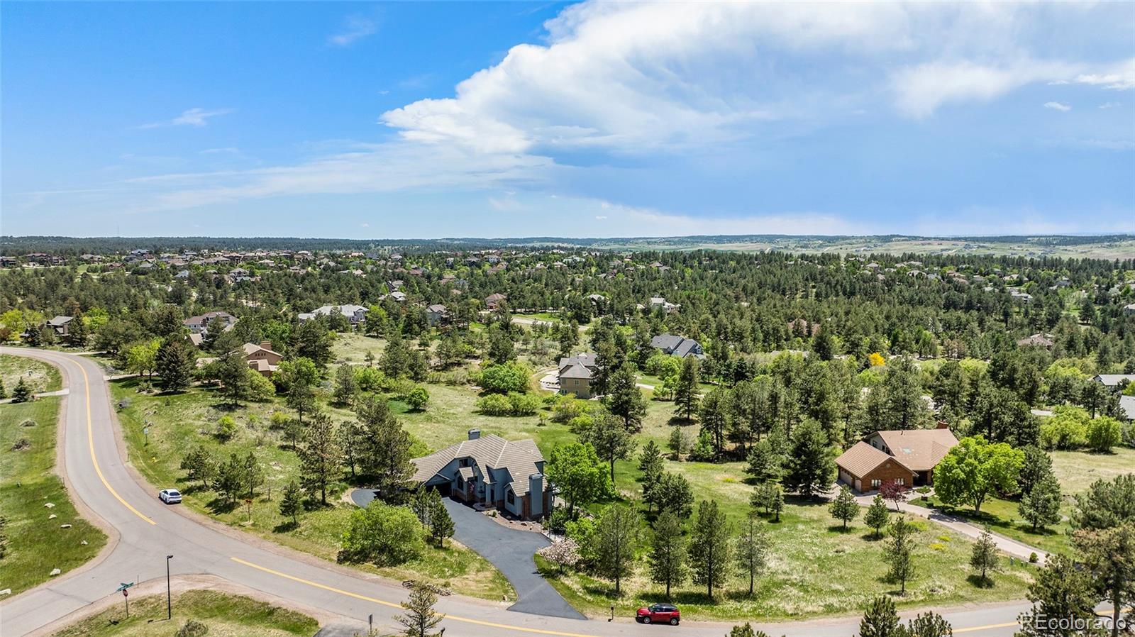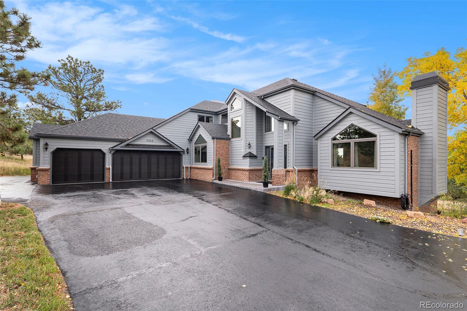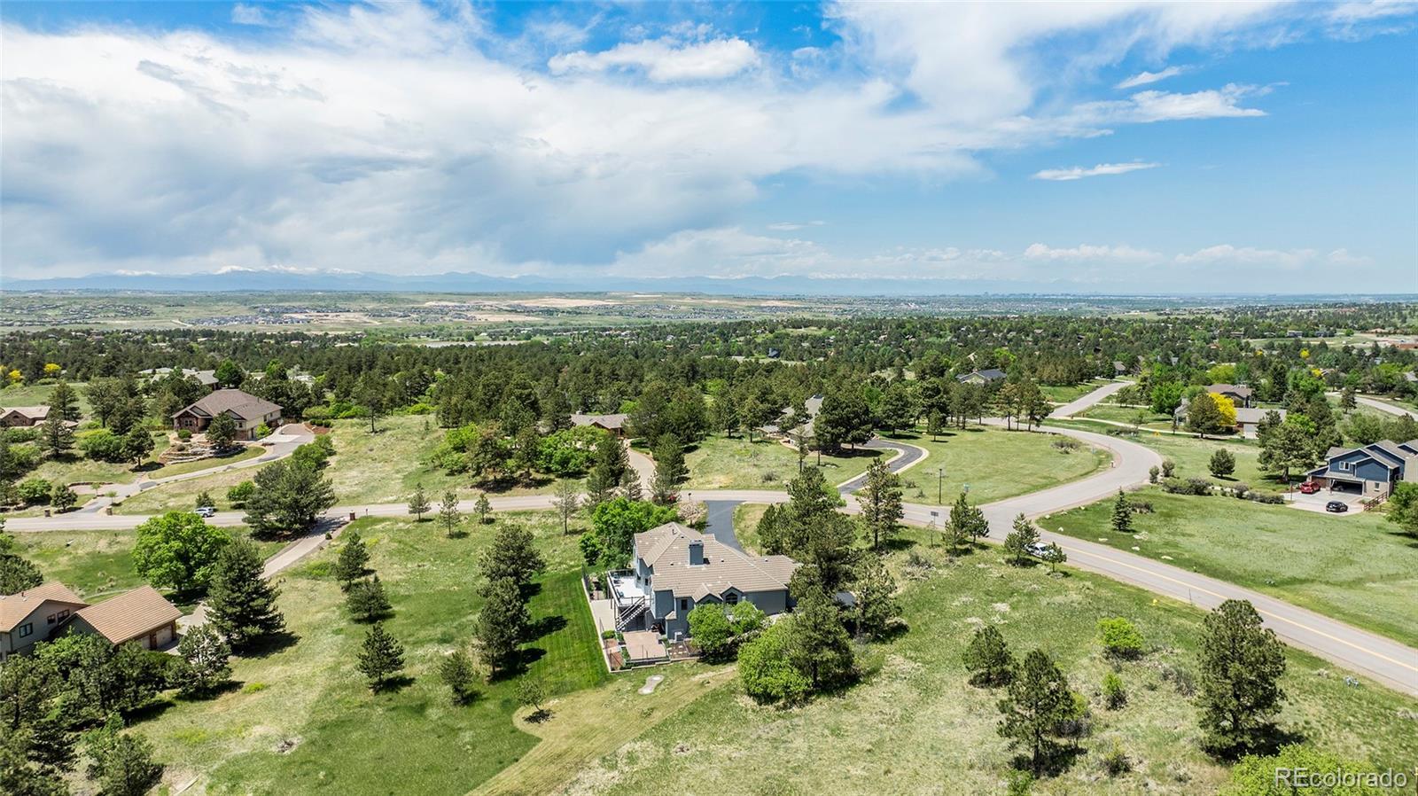 Over $350K in upgrades to this absolutely stunning 2.3 acre, meticulously maintained 5.592 sq.ft., custom 2 story home with spectacular mountain views in the highly acclaimed Misty Pines subdivision of Parker, Colorado. Here you will find a private collection of 62 custom homes in peaceful seclusion with large lots, scenic views, and surrounded by The Pinery community that is known for it's 27 hole professional golf course and perfectly nestled in the towering pine tress and natural landscape of this spectacular area. Wind your way up the extended paved private drive and arrive at the elegant courtyard style entry and you will begin to appreciate all that this property has to offer. Once inside, you will love the exposed wood beams, extended refinished hardwood floors, dramatic architectural features, and large windows that flood the home with natural light and perfectly frame the outdoor splendor and majestic mountain views. As you explore the spacious main floor you will find the beautifully remodeled kitchen with beautiful Quartz counters, custom tile backsplash, and appliances. Continue and find the picture perfect formal living and dining rooms with vaulted ceiling, gas fireplace and a dramatic second story overlook. The family room offers a brick faced gas fireplace and can be easily converted to a second dining space. Don't miss the private study and laundry room. Indulge in peaceful relaxation in the luxurious main floor primary suite with a completely remodeled, sparkling white spa-like en suite, gas fireplace, huge closets, and private deck access. The impressive second story is equally amazing with 3 large bedrooms, including a full guest suite, and a second full bathroom. The professionally finished walk-out basement is an entertainer's dream with a large rec room, wet bar, workout room, full bathroom, and storage room. Too much to list...Brand new roof, huge 3.5 car garage w/ epoxy coated floors and storage, reconstructed decks, protected garden & more!