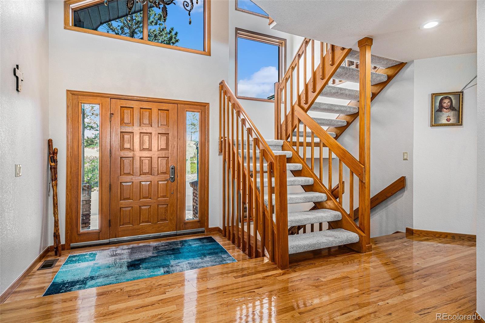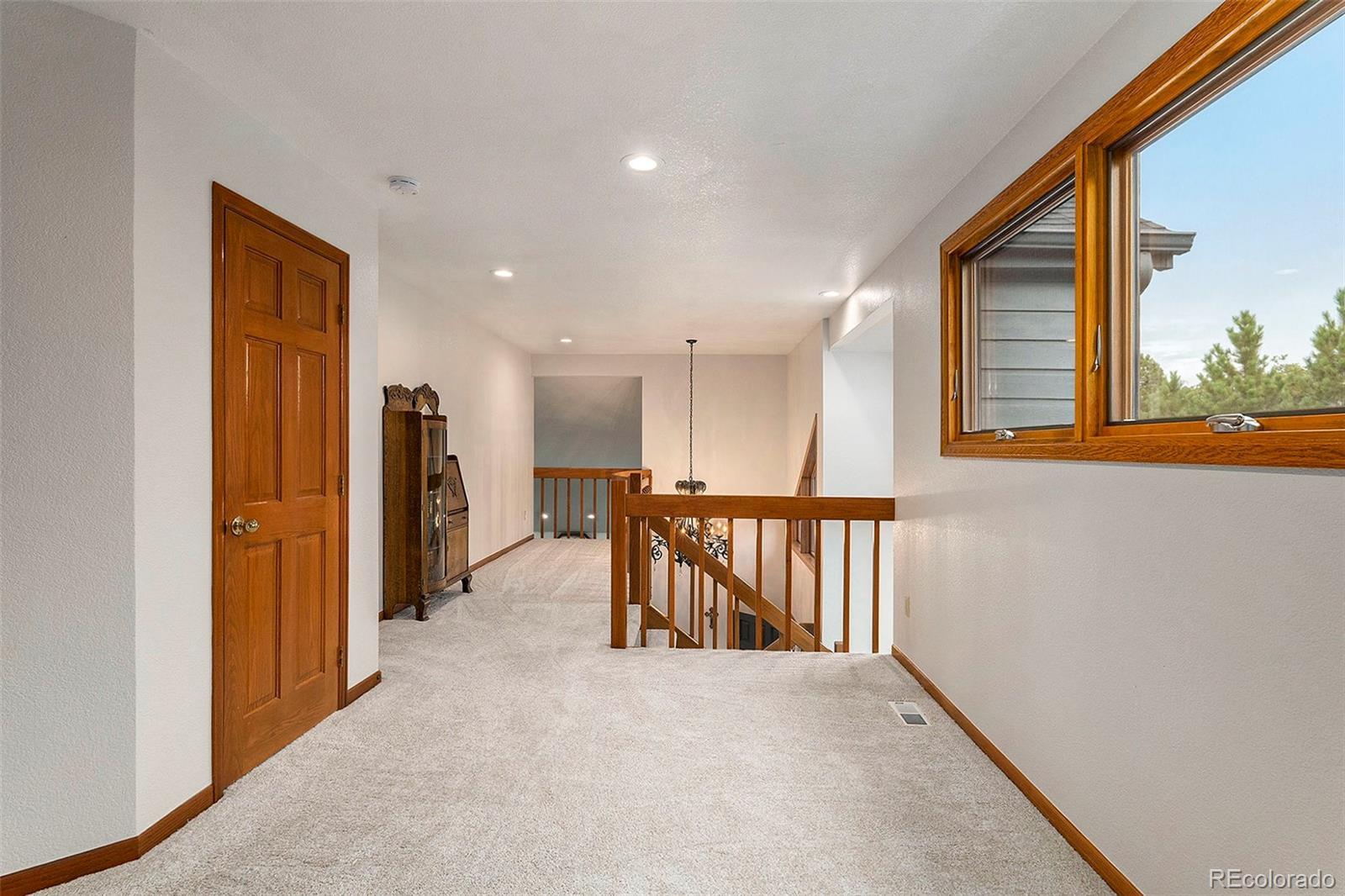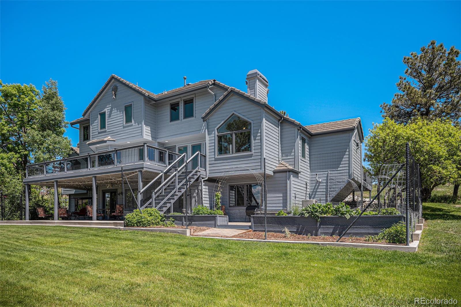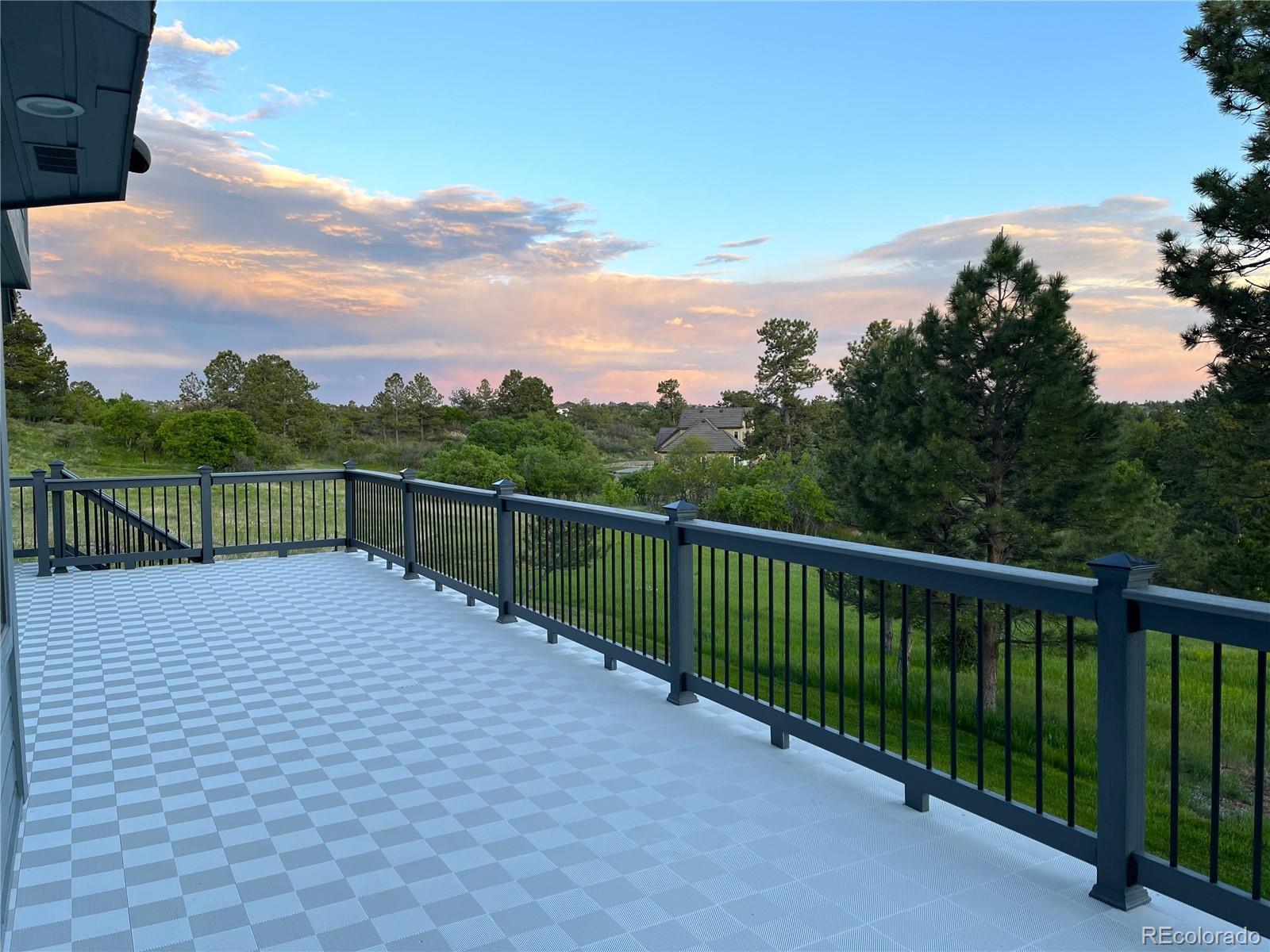 Over $350K in upgrades to this absolutely stunning 2.3 acre, meticulously maintained 5.592 sq.ft., custom 2 story home with spectacular mountain views in the highly acclaimed Misty Pines subdivision of Parker, Colorado. Here you will find a private collection of 62 custom homes in peaceful seclusion with large lots, scenic views, and surrounded by The Pinery community that is known for it's 27 hole professional golf course and perfectly nestled in the towering pine tress and natural landscape of this spectacular area. Wind your way up the extended paved private drive and arrive at the elegant courtyard style entry and you will begin to appreciate all that this property has to offer. Once inside, you will love the exposed wood beams, extended refinished hardwood floors, dramatic architectural features, and large windows that flood the home with natural light and perfectly frame the outdoor splendor and majestic mountain views. As you explore the spacious main floor you will find the beautifully remodeled kitchen with beautiful Quartz counters, custom tile backsplash, and appliances. Continue and find the picture perfect formal living and dining rooms with vaulted ceiling, gas fireplace and a dramatic second story overlook. The family room offers a brick faced gas fireplace and can be easily converted to a second dining space. Don't miss the private study and laundry room. Indulge in peaceful relaxation in the luxurious main floor primary suite with a completely remodeled, sparkling white spa-like en suite, gas fireplace, huge closets, and private deck access. The impressive second story is equally amazing with 3 large bedrooms, including a full guest suite, and a second full bathroom. The professionally finished walk-out basement is an entertainer's dream with a large rec room, wet bar, workout room, full bathroom, and storage room. Too much to list...Brand new roof, huge 3.5 car garage w/ epoxy coated floors and storage, reconstructed decks, protected garden & more!