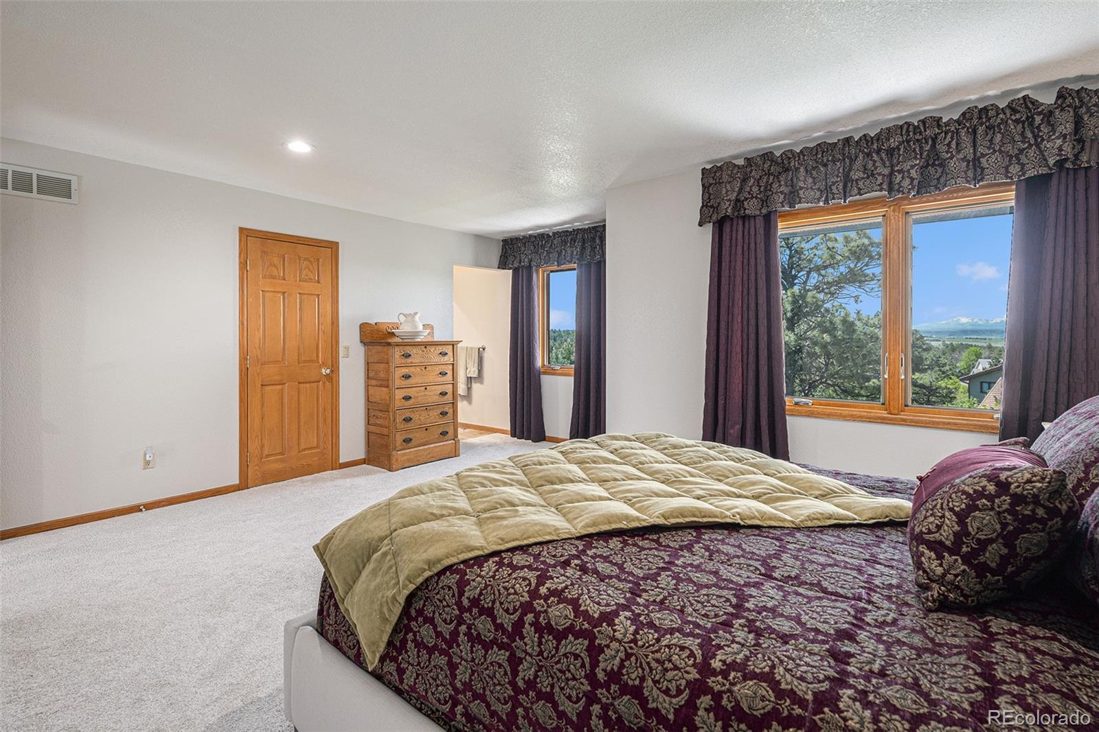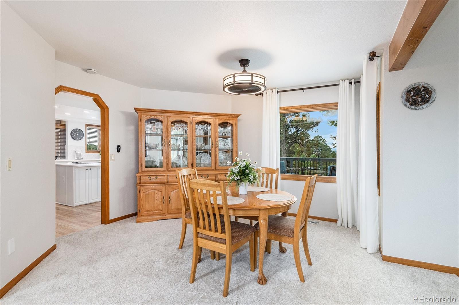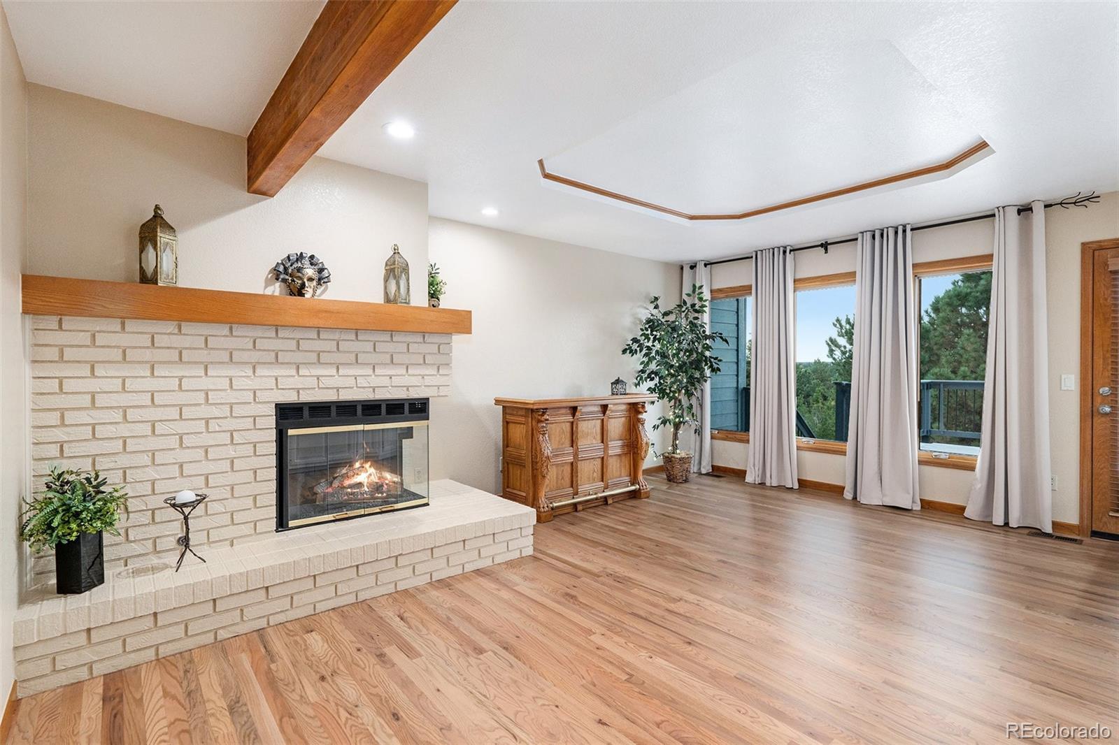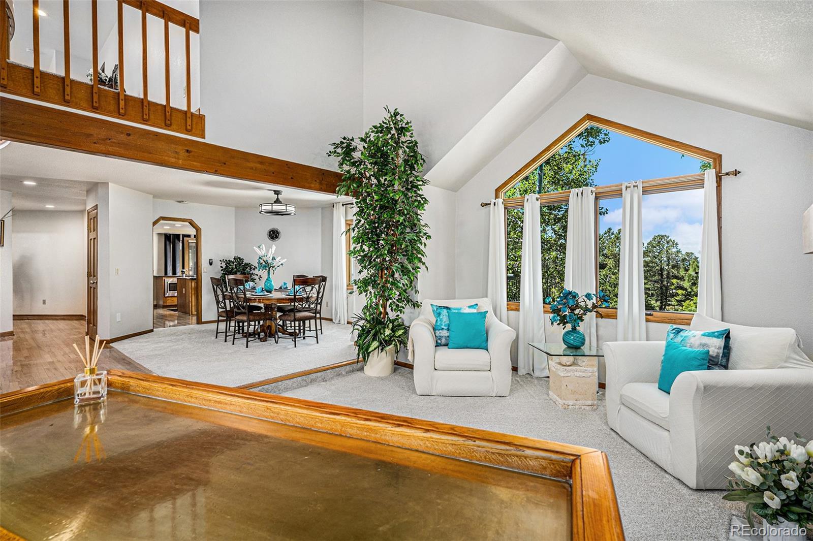 Over $350K in upgrades to this absolutely stunning 2.3 acre, meticulously maintained 5.592 sq.ft., custom 2 story home with spectacular mountain views in the highly acclaimed Misty Pines subdivision of Parker, Colorado. Here you will find a private collection of 62 custom homes in peaceful seclusion with large lots, scenic views, and surrounded by The Pinery community that is known for it's 27 hole professional golf course and perfectly nestled in the towering pine tress and natural landscape of this spectacular area. Wind your way up the extended paved private drive and arrive at the elegant courtyard style entry and you will begin to appreciate all that this property has to offer. Once inside, you will love the exposed wood beams, extended refinished hardwood floors, dramatic architectural features, and large windows that flood the home with natural light and perfectly frame the outdoor splendor and majestic mountain views. As you explore the spacious main floor you will find the beautifully remodeled kitchen with beautiful Quartz counters, custom tile backsplash, and appliances. Continue and find the picture perfect formal living and dining rooms with vaulted ceiling, gas fireplace and a dramatic second story overlook. The family room offers a brick faced gas fireplace and can be easily converted to a second dining space. Don't miss the private study and laundry room. Indulge in peaceful relaxation in the luxurious main floor primary suite with a completely remodeled, sparkling white spa-like en suite, gas fireplace, huge closets, and private deck access. The impressive second story is equally amazing with 3 large bedrooms, including a full guest suite, and a second full bathroom. The professionally finished walk-out basement is an entertainer's dream with a large rec room, wet bar, workout room, full bathroom, and storage room. Too much to list...Brand new roof, huge 3.5 car garage w/ epoxy coated floors and storage, reconstructed decks, protected garden & more!