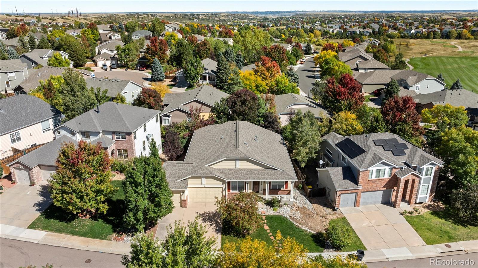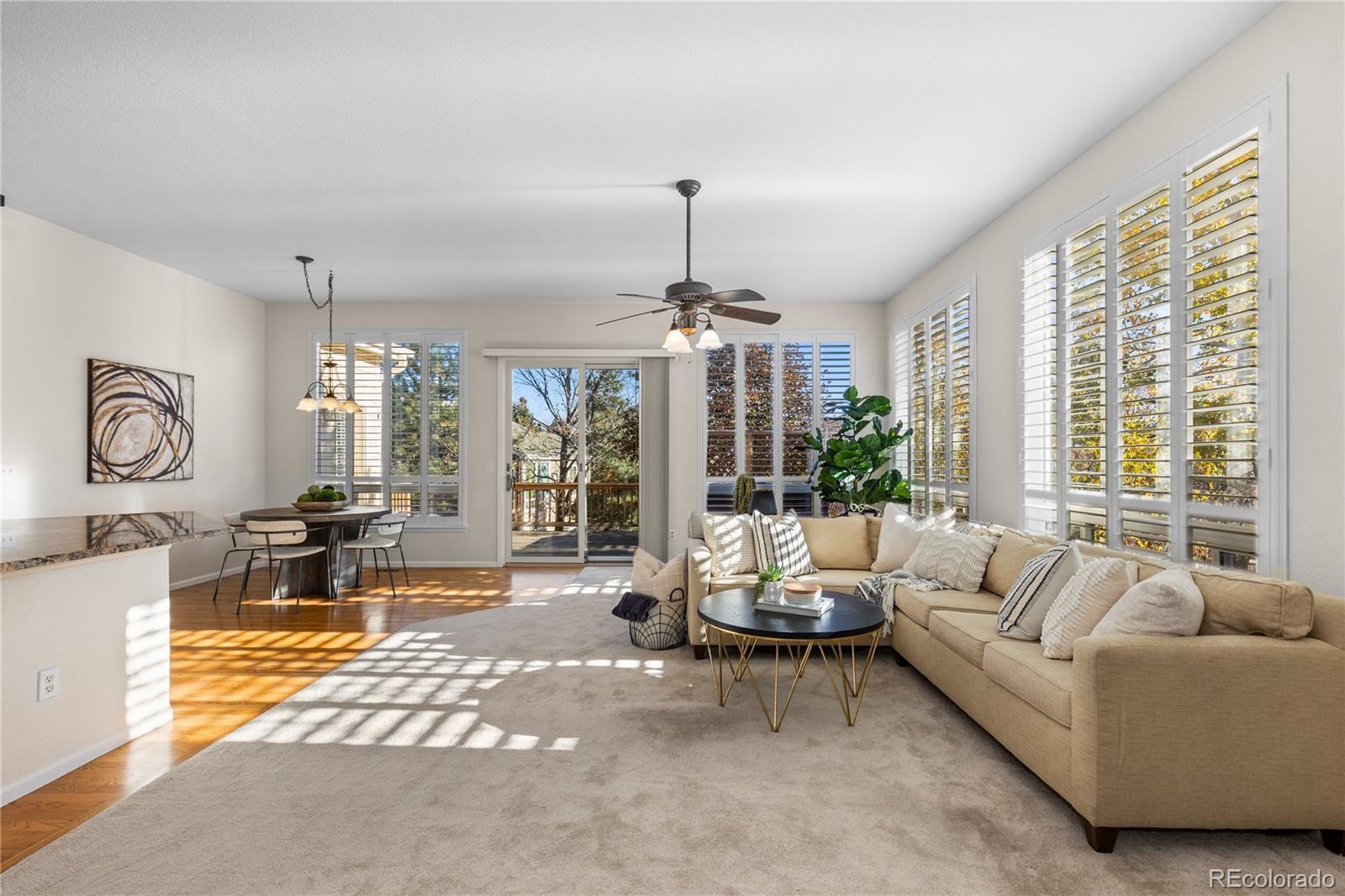 Enjoy the ease of main-floor living in this beautifully updated ranch-style home tucked into a quiet Castle Pines neighborhood. From the moment you step onto the welcoming front porch, the home feels bright, open, and instantly comfortable. Inside, vaulted ceilings and abundant natural light create an inviting flow through the living and formal dining spaces—perfect for everyday living or hosting friends. A dedicated home office near the entry provides a peaceful space for remote work, study, or creative projects. The heart of the home is the open-concept kitchen and family room, where oak hardwood floors, new carpet, and custom cabinetry bring warmth and style together. A modern kitchen with granite countertops, stainless steel appliances, a walk-in pantry, and a large island makes cooking and gathering effortless. The cozy family room centers around a gas fireplace, framed by plantation shutters that add timeless charm and privacy. Step through the sliding door to a redwood deck with a six-person hot tub—your own backyard oasis for coffee at sunrise or evenings under the stars. The private, landscaped yard is ideal for entertaining, relaxing, or simply enjoying Colorado’s beautiful seasons. The primary suite offers a peaceful retreat with private deck access and a newly updated five-piece bath. Two additional main-level bedrooms share a full bath, enhanced with solar tube lighting that fills the space with soft daylight. The finished basement extends the home’s versatility with brand-new carpet, a spacious fourth bedroom, a full bath, and flexible areas perfect for a media room, gym, or hobby space. Lovingly maintained and truly move-in ready, this Castle Pines gem blends thoughtful updates with a premier location in the Douglas County School District—offering the lifestyle, comfort, and community buyers love to come home to.