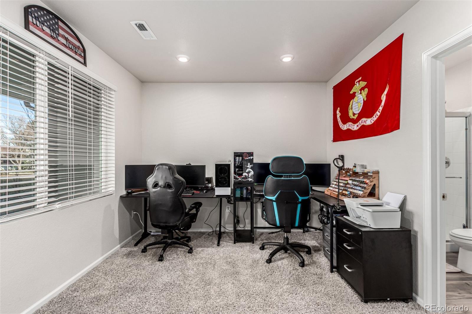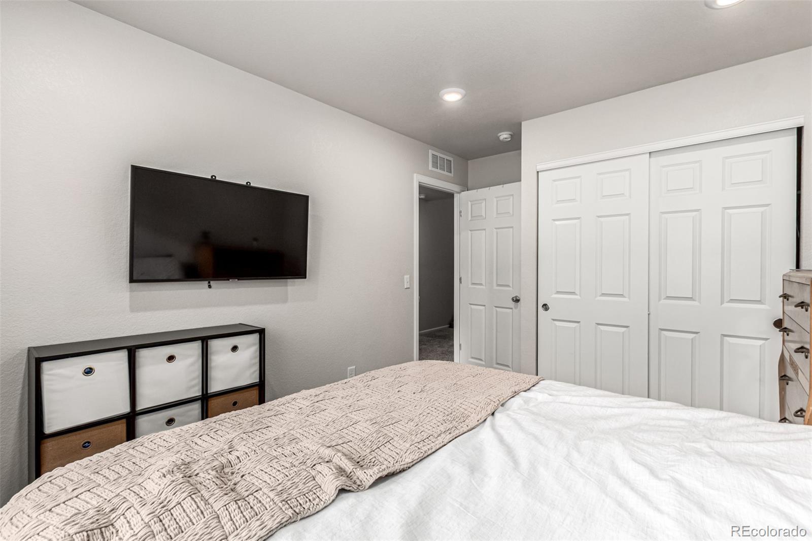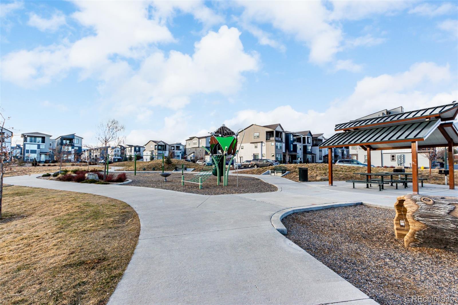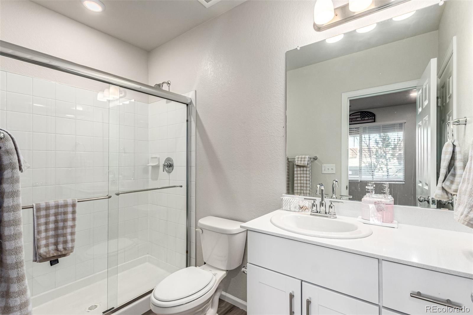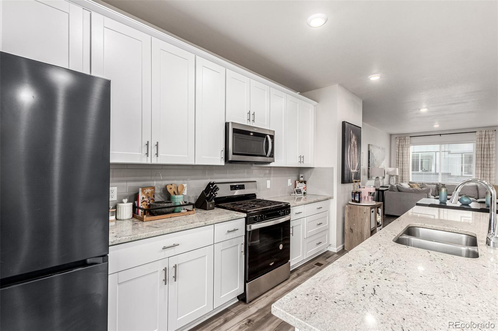 Beautifully designed and ideally located, this former model townhome offers refined living in one of Arvada’s most convenient locations. Located just minutes from the charm of Olde Town Arvada and the light rail for an easy commute into Denver, this home blends modern design with an unbeatable location. The open kitchen features crisp white cabinetry, a large granite island, stainless steel appliances, and two generous pantries, perfect for everyday living and entertaining! Just off the kitchen, a covered balcony provides a comfortable outdoor extension of the space. The main living area is bright and inviting with high ceilings, expansive windows, and upgraded lighting and technology throughout. On the main level, a versatile bonus room with a private en suite bathroom offers flexibility to suit your lifestyle, ideal as a non-conforming bedroom, home office, gym, guest space or whatever your heart desires! The primary suite is thoughtfully designed with the convenience of a dedicated laundry room located just steps away, making daily routines effortless. Clean lines and intentional design carry throughout the home, creating a timeless, contemporary feel. The best part, a private and large rooftop deck crowns the residence, offering space to unwind, entertain, or enjoy Colorado sunsets and mountain views. Energy-efficient construction and low-maintenance living complete the experience!