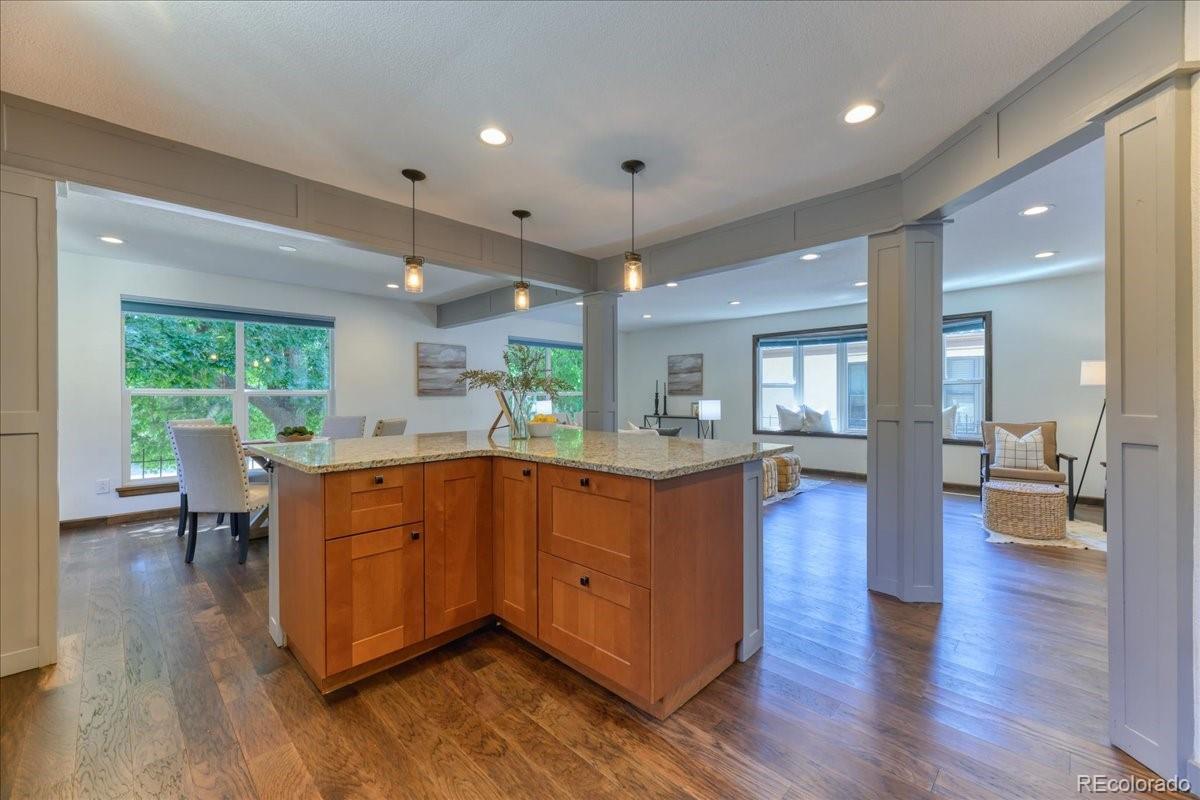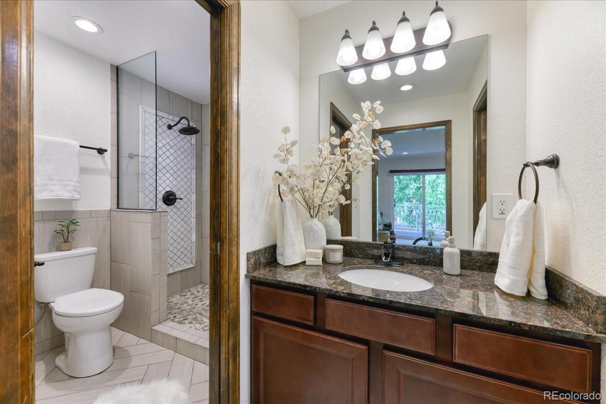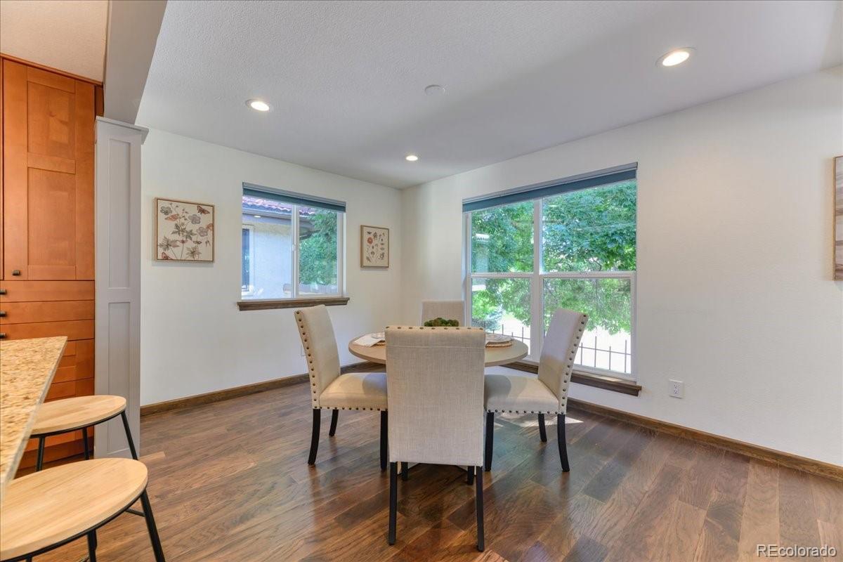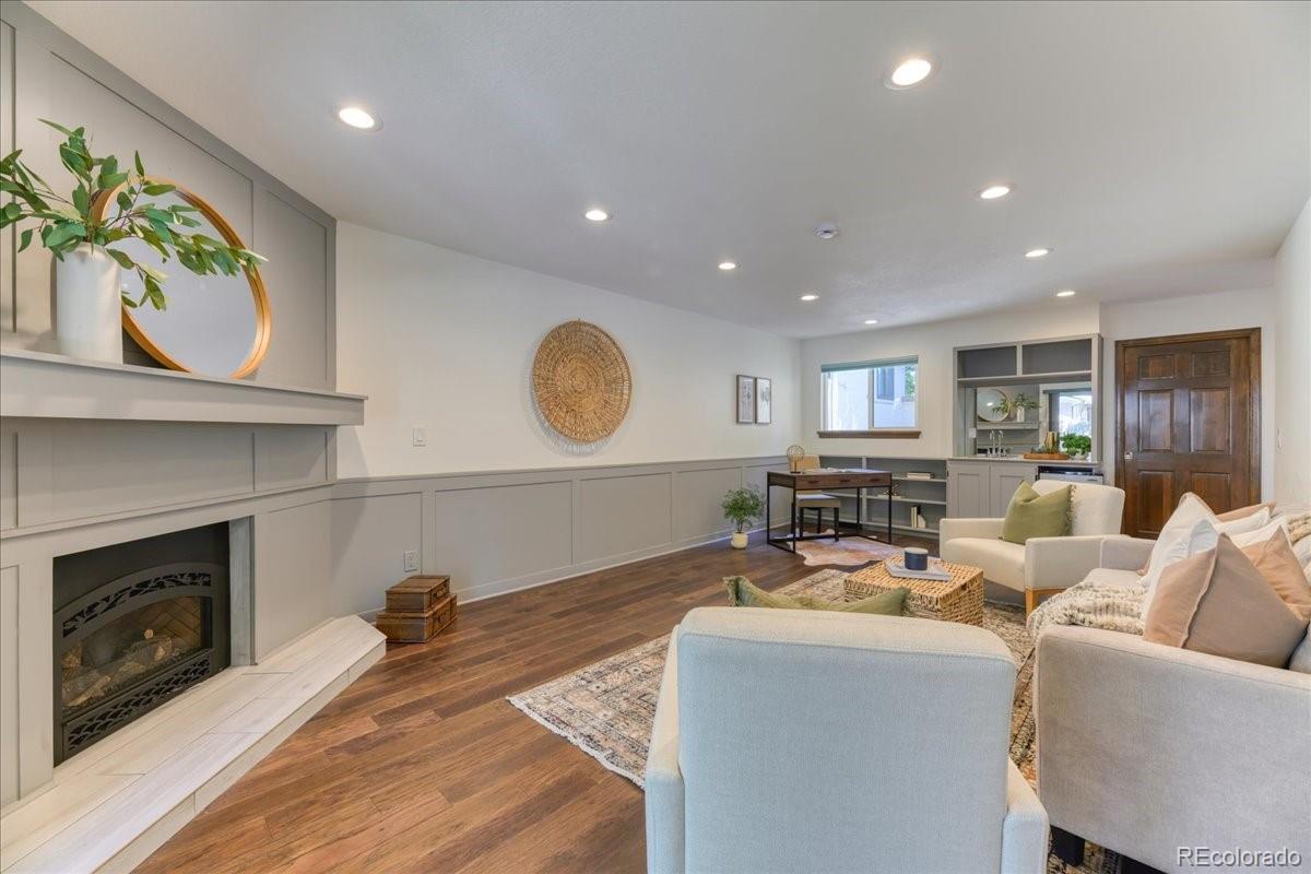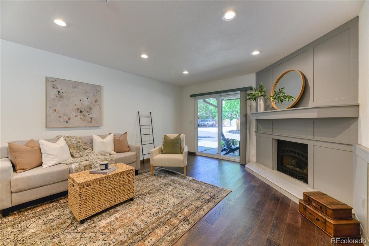 Opportunity awaits with this fresh new price! Welcome home to this light-filled, beautifully updated townhome just a short walk from Crown Hill Park. With tall ceilings and an open floor plan, the foyer leads to a spacious living room that flows easily into the dining area and gorgeous kitchen. The kitchen is truly the heart of the home, featuring 42” custom cabinetry with soft-close drawers, a huge granite island, and plenty of storage—perfect for everyday living or entertaining. Upstairs, you’ll find a large primary suite with a spa-like ensuite, walk-in closet, and an additional bedroom (non-conforming) with big windows that can be used as an office, workout space, or sitting area. A second bedroom and full bath complete this level. On the main floor, a cozy family room with gas fireplace, built-in shelving, wet bar, and access to a private patio, makes the perfect gathering spot. The finished basement adds even more living space with a generously sized ensuite bedroom, egress window, and two closets. An abundance of storage space throughout the home! The attached garage includes dual 220V outlets for EV charging, a built-in workbench, and great storage. With four outdoor living areas—including a private community garden right out back—this home truly offers something special. Minutes to Sloan’s Lake, the Highlands, Golden, and Downtown Denver, plus easy access to I-70 and 6th Ave for mountain getaways. Smoke-free, pet-free, and move-in ready, this spacious townhome lives like a single-family home—without the maintenance! Lock and leave- NO shoveling!