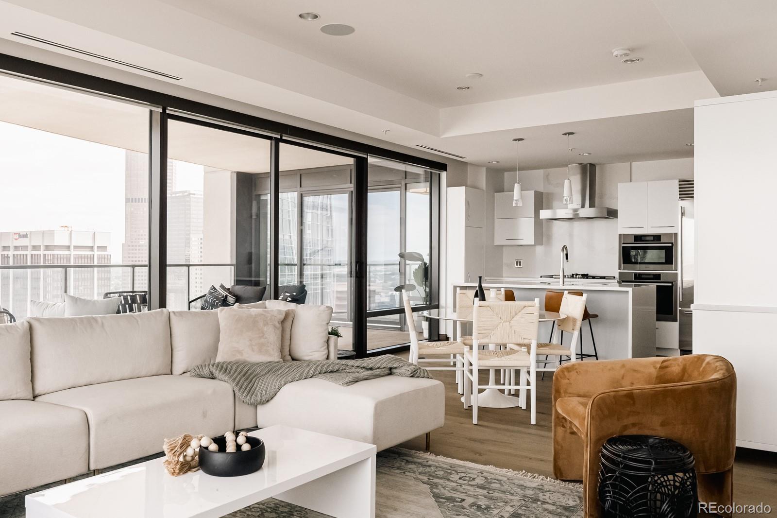 Sleek and stylish interiors await in this luxe escape poised within the Four Seasons Private Residences. A gracefully flowing floor plan flanked by a neutral color palette extends from an entry with built-in storage to an open and airy living area. Centered by built-in shelving, a modern fireplace grounds the space as natural light streams in through vast windows. Expansive sliding glass doors open to reveal seamless connectivity to a 373-square-foot balcony boasting city and mountain views. A dining area adjoins to a kitchen complete with granite and marble countertops, Sub-Zero appliances and a center island with seating. Enjoy ultimate relaxation in a spacious primary bedroom featuring balcony access and a spa-like bathroom with a soaking tub. A secondary bedroom presents potential for a home office or accommodation for guests. A private residential experience enhanced by iconic Four Seasons hospitality - concierge service, spa, elevated fitness center, pool, in-residence dining, housekeeping services and meticulously serviced common areas.