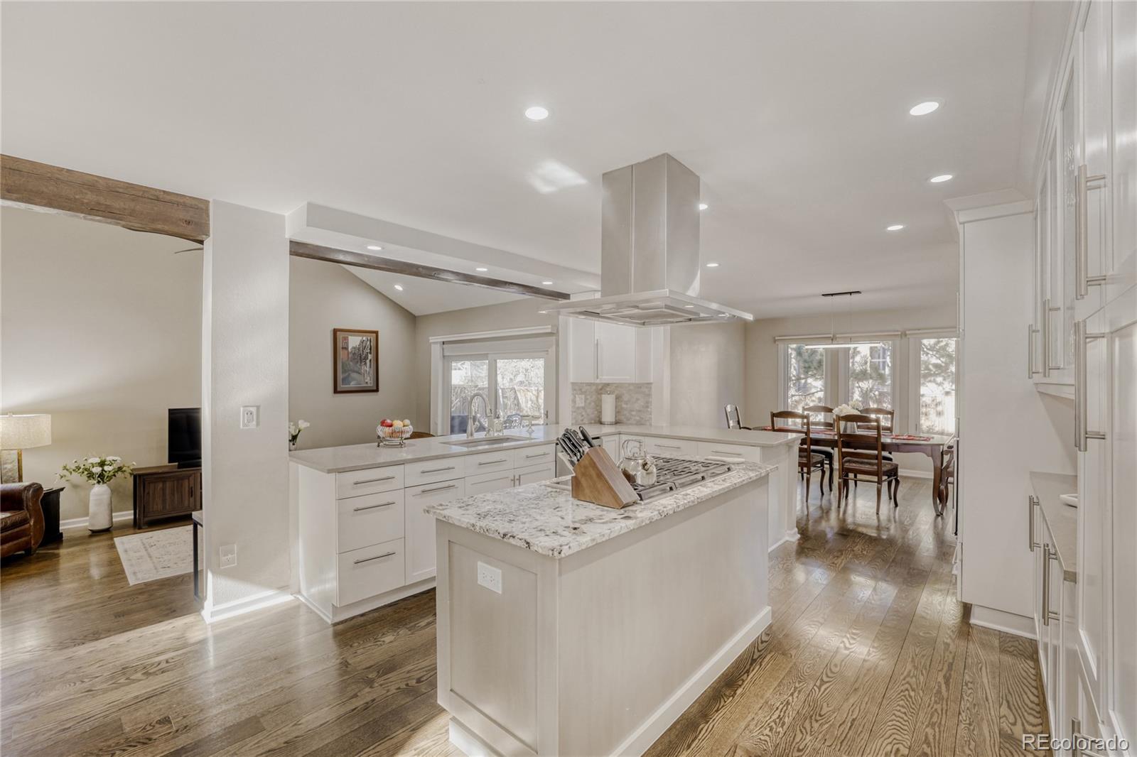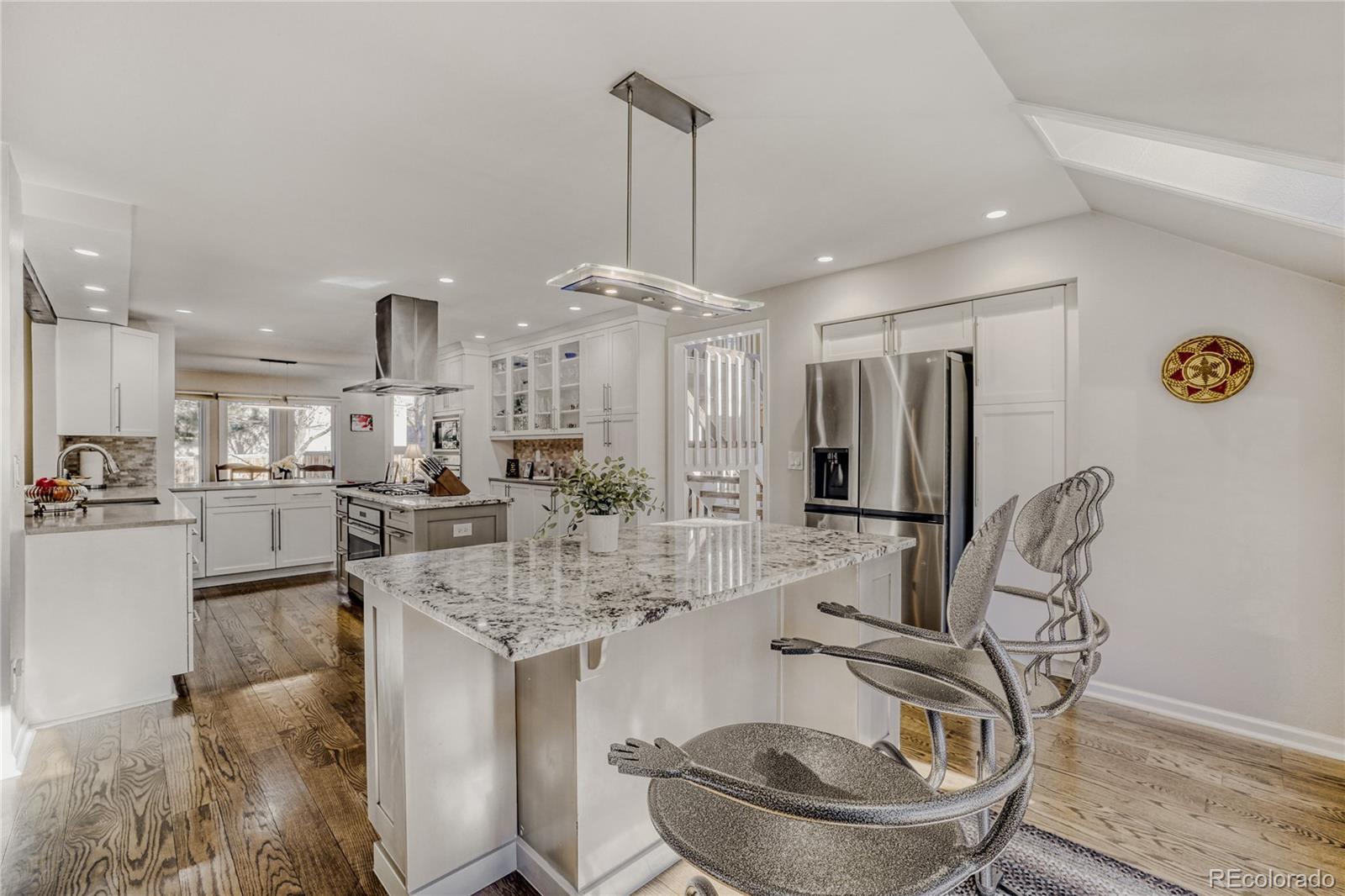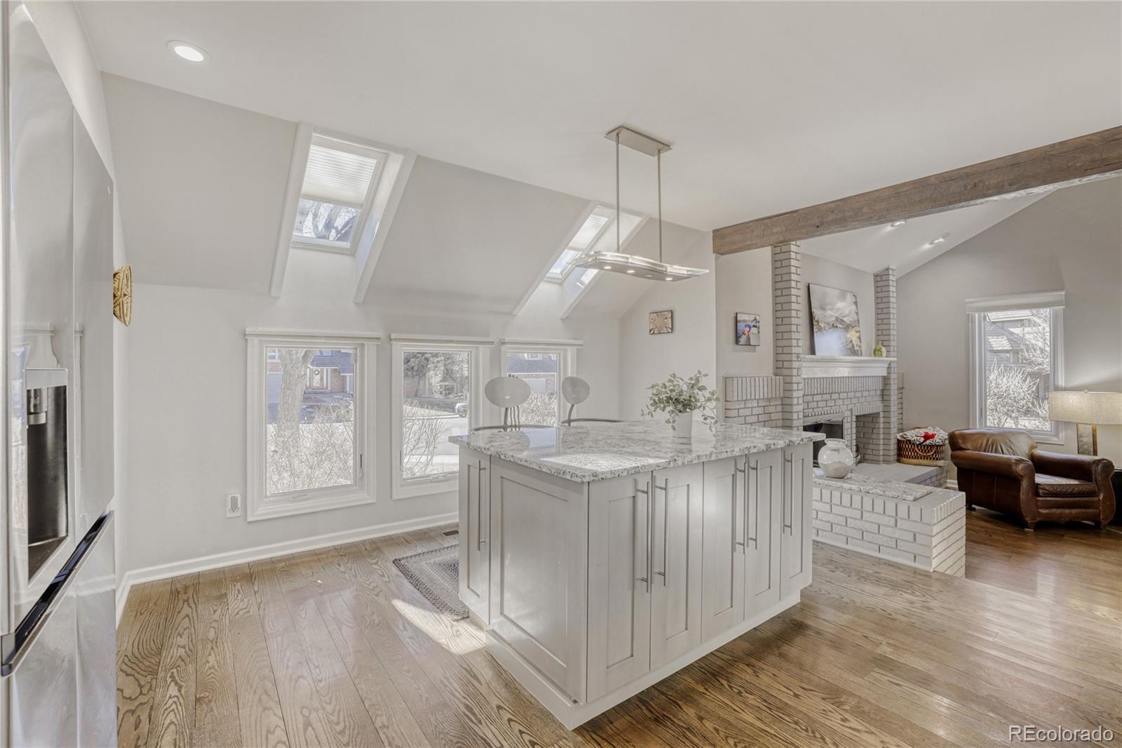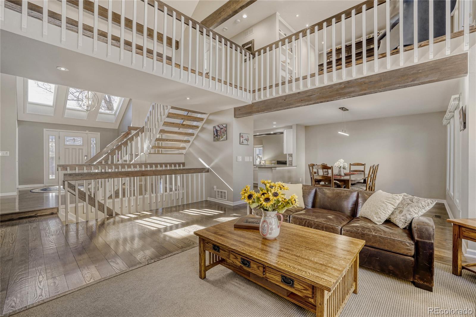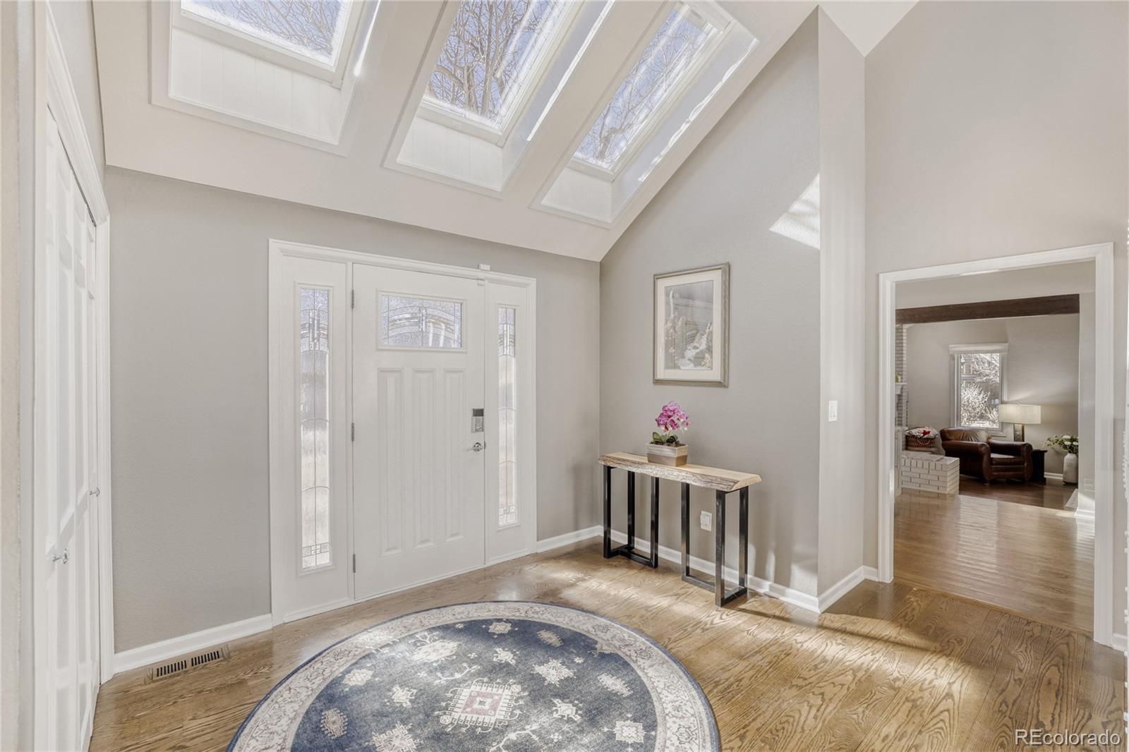 Perfectly positioned, this exceptional Arapahoe Estates residence offers a rare blend of privacy, space, and timeless design. From the moment you arrive, the light-filled front foyer, with soaring ceilings and skylights, sets a welcoming tone and draws you effortlessly into the heart of the home. Exquisitely remodeled with an updated kitchen festuring two Wolf ovens, Wolf stove and microwave, granite and corian countertops. Desirable main floor primary bedroom and updated bathroom with heated floors, custom vanity and a soaking tub. Stunning hardwood floors on both the main level and upper levels. This home is ready for you to move right in! Vaulted ceilings, expansive windows, and an open, flowing floor plan fill the interior with natural light throughout. The thoughtfully designed kitchen connects seamlessly to both the formal dining room and a sunny breakfast area, overlooking the beautifully landscaped, park-like backyard. The inviting family room features a dramatic vaulted ceiling and striking brick accent wall with a wood-burning fireplace, creating a warm and elegant gathering space that opens directly to the outdoor patio. With five generously sized bedrooms, a dedicated office, and a finished basement ideal for a gym, media room, or private retreat, this home offers flexibility and comfort for modern living and entertaining. Outdoors, mature landscaping frames a serene backyard setting, perfect for summer barbecues, lawn games, and relaxed evenings surrounded by nature. Located within highly regarded school boundaries, including the walkable Newton Middle School, and offering convenient access to downtown Denver, C-470, I-25, the DTC, and DIA. Enjoy proximity to The Streets at SouthGlenn, Trader Joe’s, Whole Foods, and the Goodson Recreation Center. Lovingly maintained, this remarkable home presents an exceptional opportunity for its next owners to personalize a truly special property in one of the area’s most sought-after neighborhoods.