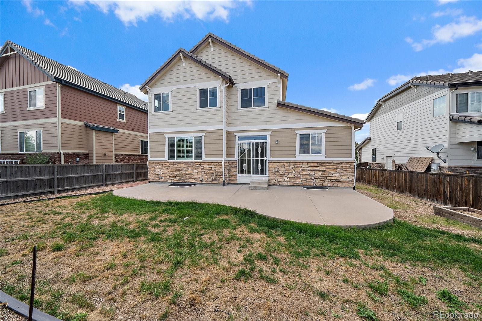 Welcome to a great home in the Cherry Creek School District, tucked away on a quiet cul-de-sac backing to a greenbelt. Freshly painted interior and resurfaced hardwood floors on the main level make this home move-in ready. Open floor plan with high ceilings and excellent natural light. Tile roof, 3-car garage, and community pool are added bonuses. Fantastic location with easy access to Southlands Mall, E-470, DTC, and DIA. Buyers will love the private backyard setting and convenient neighborhood amenities. Seller is offering a $7,500 carpet concession.