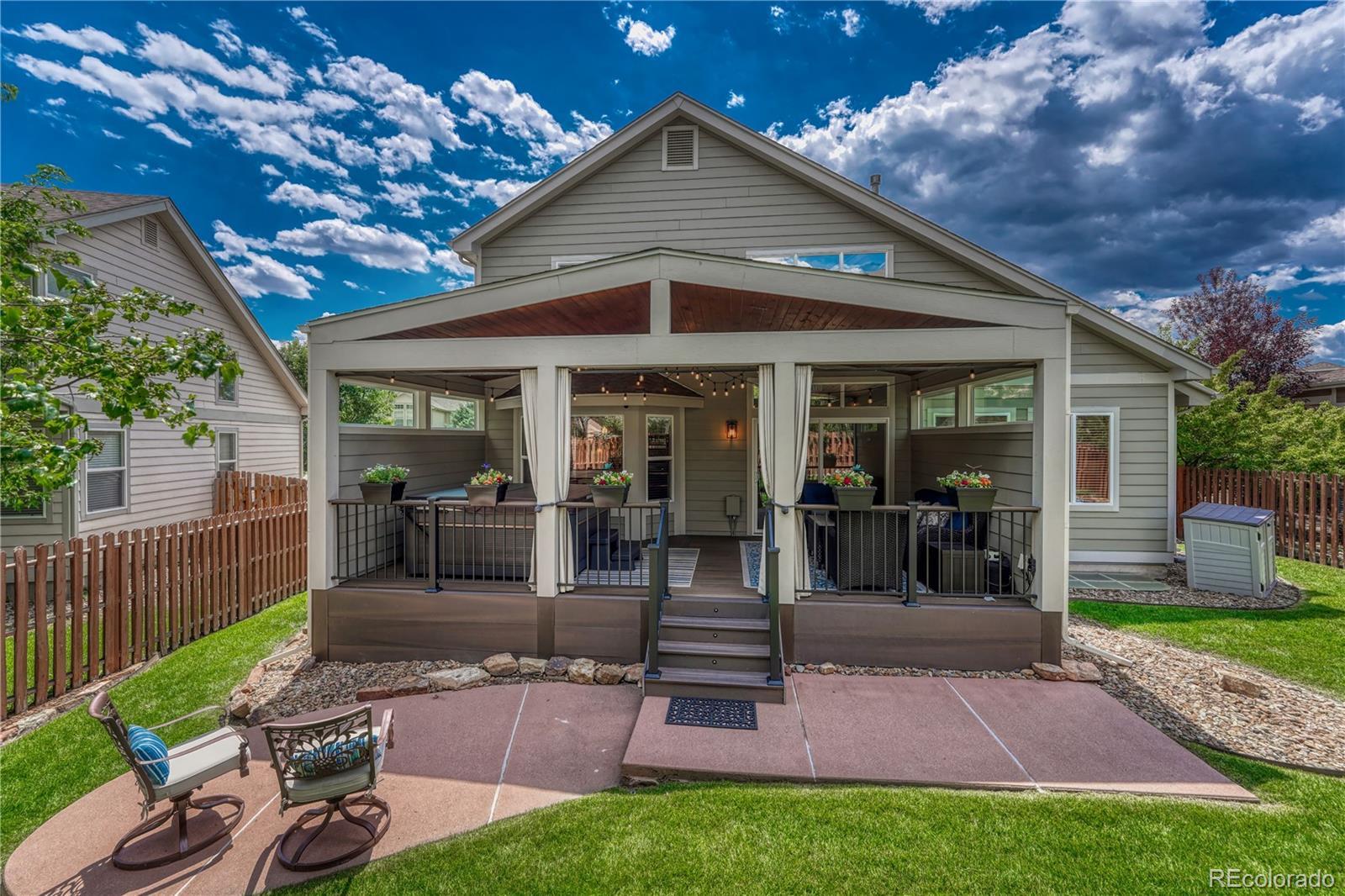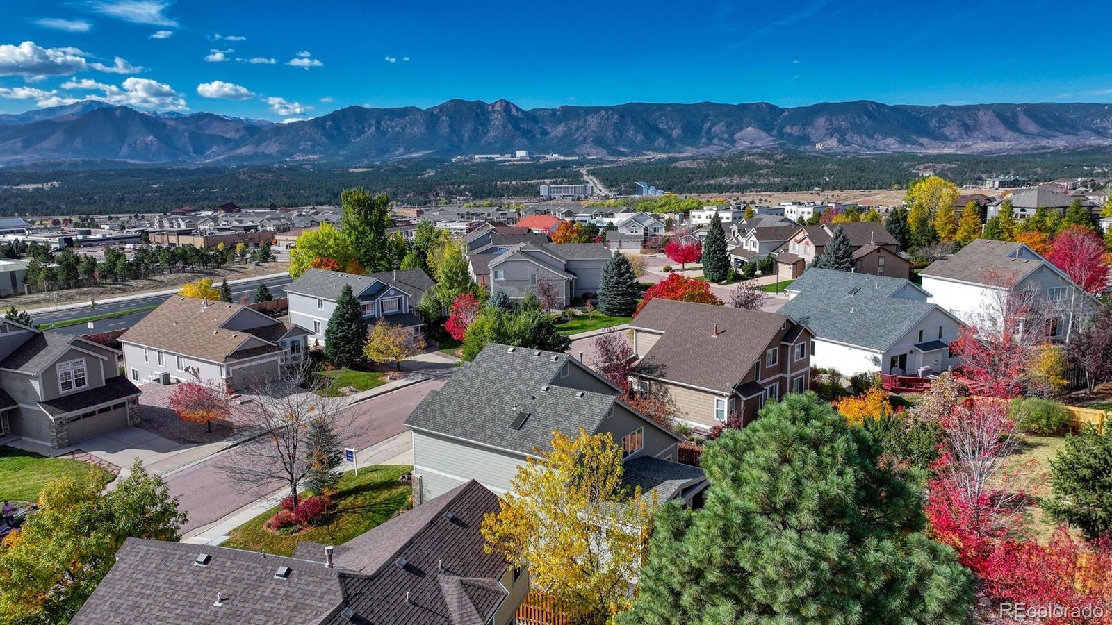 CALL FOR SELLER INCENTIVES! *UPDATED FROM PRIMARY SUITE TO CARPETING! Imagine living in the best location—*TRAILS and CITY CONVENIENCES just minutes from your front door! This beautiful & meticulously maintained home blends comfort & style with *MOUNTAIN VIEWS & mature landscaping. Step inside! You will find a spacious family room with cozy *GAS FIREPLACE & a GOURMET eat-in kitchen that boasts *GRANITE COUNTERTOP, a center island, a breakfast bar, and stainless-steel appliances or step outdoors into a retreat with a *CUSTOM BUILT PATIO, featuring an impressive eleven-foot gable that creates a grand, open feel. The *TONUGE-N-GROVE PINE ceiling adds warmth and character, blending rustic charm with timeless elegance. Perfect for entertaining or simply unwinding, it’s a space that feels both inviting & extraordinary. The primary suite is a well-appointed *UPDATED PRIVATE RETREAT with a large walk-in closet & a spa-like bath complete with a Jetta soaking tub. Additional features include *NEW CARPET on upper and lower levels, *LUXURY VINYLE TILE on main, new kitchen & bath backsplash, window treatments, LED lighting, James Hardie fiber cement siding w/ warranty, *SALTWATER HOT TUB, smart thermostat, new patio slider, exterior lighting, insulated garage door & opener w/app, *75-gallon water heater w/ extended warranty, *NEW KITCHEN FIXTURES AND *REMODELED BATHS, *NEW ceiling fans in upstairs bedrooms, smart sprinkler controls, and more. Finished basement w/ an exercise area. Central A/C & forced-air heating for year-round comfort. Do you *LOVE the OUTDOORS, this home offers *QUICK ACCESS to hiking trails, golf, & cycling routes while minutes from city conveniences. Academy D20 School District & Northgate area home, near schools, hiking, biking, & shopping. Within minutes of FLYING HORSE Country Club, Polaris Point, USAFA, USAFA golf, and only 30 minutes from Castle Rock and DTC.