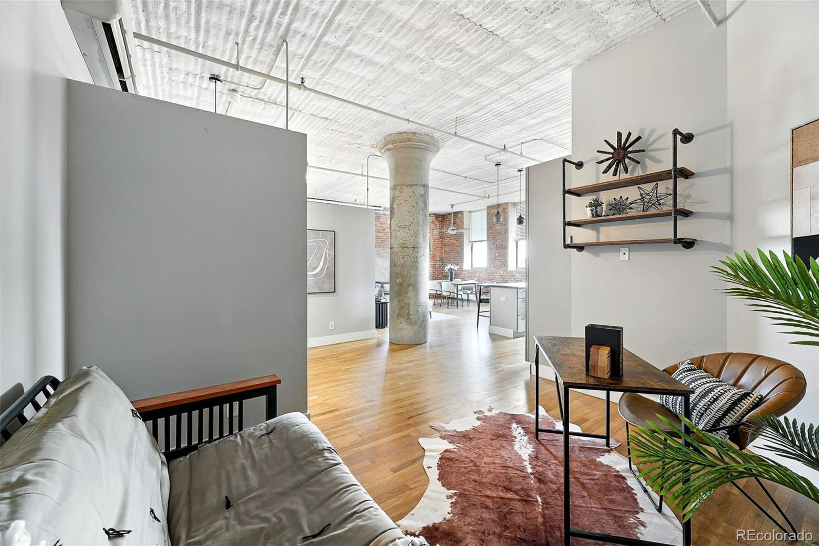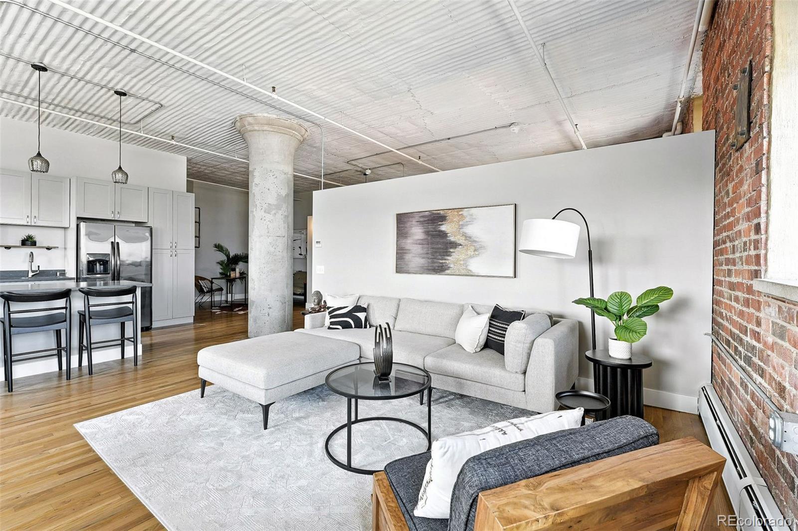 Welcome to Unit 3E at 2261 Blake Street, a rare end unit find in the vibrant heart of Denver's Ball Park neighborhood. This modern loft captures the best of downtown living with an open 1-bedroom + office/guest/2nd bedroom layout that seamlessly blends historic charm with modern updates and the RARE bonus of 2 DEEDED PARKING SPOTS! Upon entering, you'll be greeted by wood floors and historic exposed brick walls and large bank of windows. The spacious open kitchen is equipped with an eat in island and is ready to entertain. The large living/dining room features west and north-facing windows, flooding the space with natural light and mountain views throughout the home. Enter out onto the private balcony and enjoy fireworks from nearby Coors Field or take in the views. The Ensuite bedroom offers ample space with a large closet, 3/4 bath with large walk-in shower. The additional office space can easily be converted into a guest area or second bedroom. Modern conveniences include in-unit mini split for cooling, and in-unit washer and dryer add to the convenience of the home! This unit includes two deeded parking spots, 1 in the underground secure garage (#24) just 10' to the elevator for easy in and out access. The surface spot #72 is located in the secure/gated lot adjacent to the building with easy access as well. There is secure storage for the unit and the building has a roof top deck with grill, 360 degree city views and is ready for the next fireworks show at Coors as well! In this prime location, you will be ready to host events, watch fireworks on the balcony or rooftop deck or catch the the train from Union Station, Enjoy all the entertainment options of Downtown, McGregor, Milk Milk Market, RiNo and beyond. The best of Denver is at your doorstep. Make this unique loft your urban sanctuary and don't miss the opportunity to call Ballpark home!