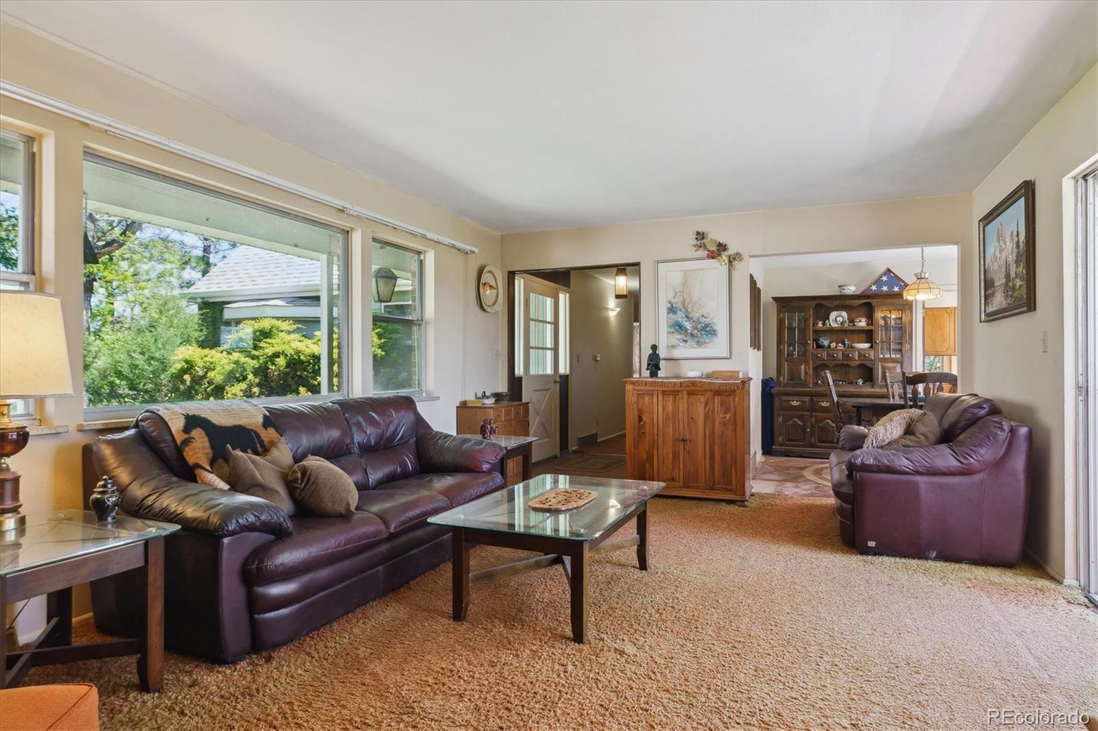 Step back in time and imagine the possibilities with this vintage 1960s home, perfectly set on nearly 10 acres just 5 miles from Historic Castle Rock. A rare find for those seeking land, views, and potential, this property offers sweeping mountain vistas and room to create the lifestyle you’ve dreamed of. Enjoy peaceful mornings on the covered porch, or take your best shot from your own “driving range” across the open acreage. The 46’x23’ detached building with three overhead doors and concrete floors is ideal for collector cars, a workshop, or future studio space. The original wood barn and pasture add to the nostalgic charm, ready for restoration or repurposing. Inside, the home reflects its era—with a spacious kitchen and breakfast nook, formal living and dining rooms, and a main floor primary suite with ensuite bath. Two additional bedrooms on the main and a loft upstairs provide flexible use for guests or office space. The walkout basement offers a cozy wood-burning stove, space for games or exercise, and a sunny enclosed sunroom to enjoy the views year-round. A bonus unfinished area above the garage—accessible from inside or by exterior staircase—could be transformed into a home office or guest suite. With a 2-car attached garage, back deck overlooking the mountains, and a sense of history throughout, this home is ready for the next chapter. Bring your vision and see the opportunity this close-in acreage property offers.