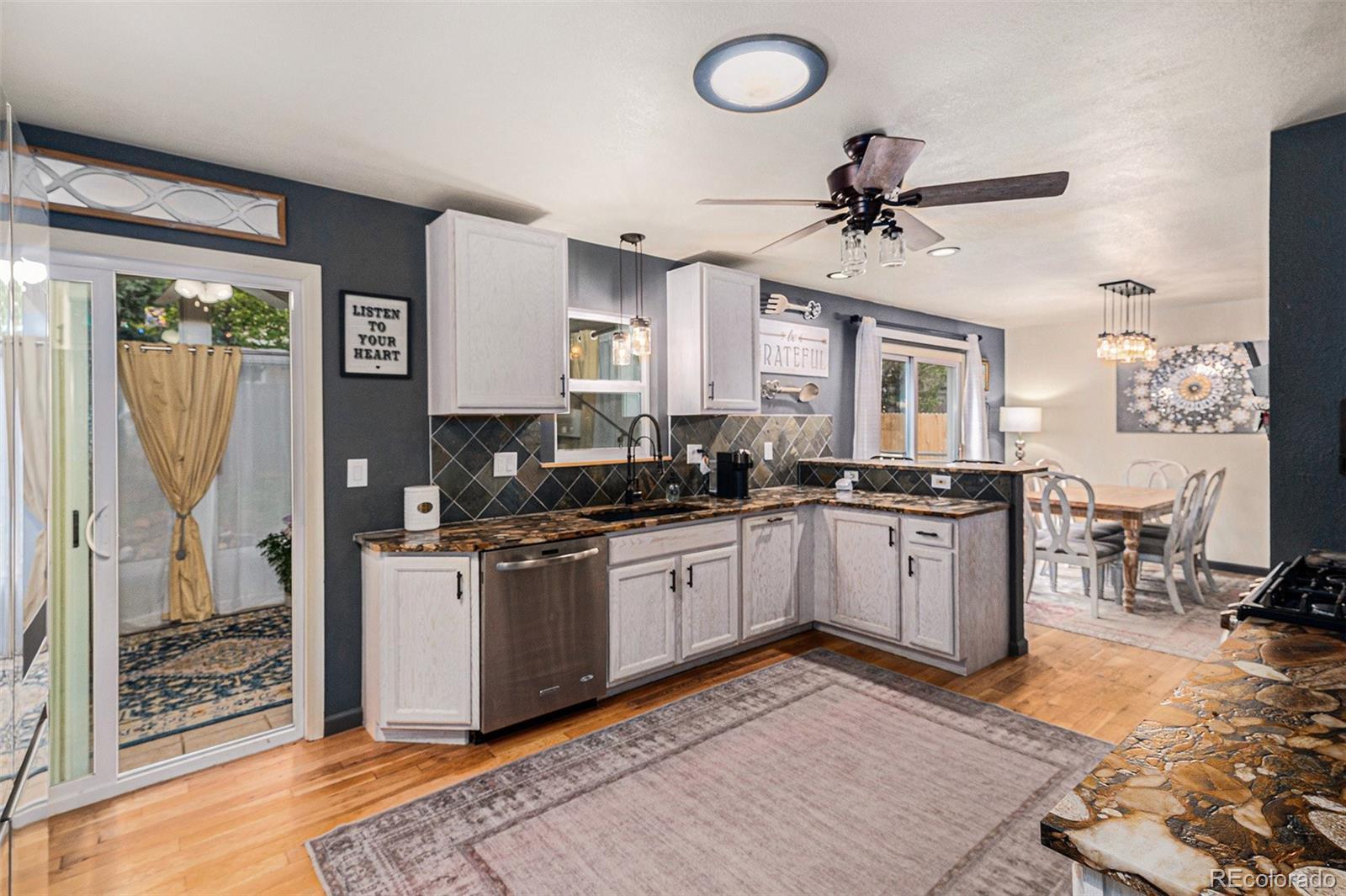 Beautifully updated throughout and move-in ready, this versatile ranch home offers exceptional comfort and possible basement rental income. Fresh interior paint and thoughtfully selected contemporary finishes create a bright, welcoming feel from the moment you step inside. The open main level showcases gorgeous hardwood floors and a cozy brick-surround fireplace as a warm focal point. The remodeled kitchen features quartz countertops, a gas range, Insta-View stainless steel refrigerator, and a breakfast bar for casual seating and entertaining. A sun-drenched, temperature-controlled sunroom provides the perfect year-round retreat. Three main-level bedrooms include a serene primary suite with a rustic wood accent wall and a spa-inspired en-suite bath complete with heated tile floors, a luxurious shower, and a charming clawfoot tub. The recently finished basement significantly enhances the home’s versatility with its own full kitchen, living area, dedicated laundry, and two spacious bedrooms—each with a private en-suite bath. Ideal for multi-generational living, rental income, or Airbnb, this lower-level suite offers both comfort and privacy. Updates include new flooring, remodeled bathrooms, added closets, egress windows, sump pumps, and a newly replaced main sewer line to the street. Outside, enjoy a private backyard with a sunny deck—perfect for entertaining or relaxing on warm evenings. Energy-efficient solar panels help keep utility costs low, and three sump pumps (including a battery-backed system) provide added peace of mind. Ideally located near I-25 and C-470 with easy access to shopping, dining, two King Soopers locations, Lifetime Fitness, Medema Park, great schools, and friendly neighbors. Everyday conveniences like Starbucks, a dry cleaner, and a doughnut shop are just a short walk away. Whether you’re seeking multi-generational flexibility, income potential, or simply a beautifully updated home in a prime location—this one truly offers it all.