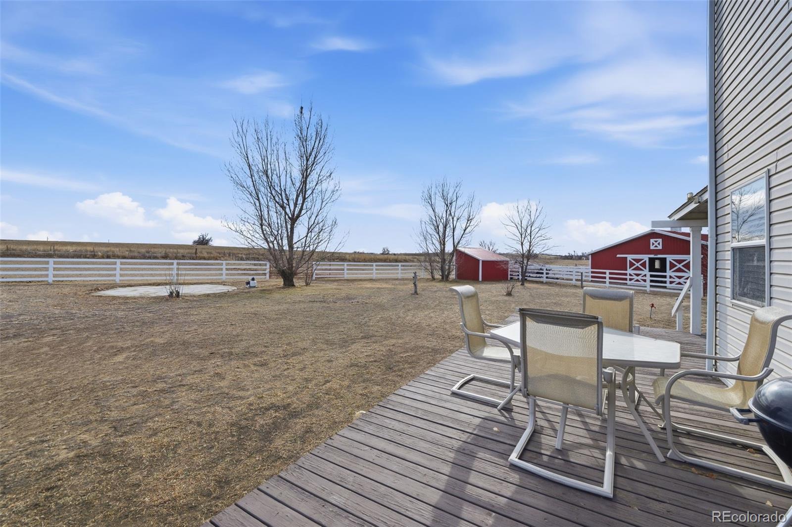 Bring your Horses!! Situated at the end of a private drive with no through traffic, this beautifully maintained home offers a rare blend of space, serenity, and functional upgrades on just over 5 acres of land. Step inside to discover a freshly updated interior featuring new main-level flooring, repainted walls and trim, and a refreshed kitchen with beautiful cabinets and a stylish new backsplash. The kitchen also boasts appliances less than two years old—making both everyday living and entertaining a breeze. Office space, living room dine in kitchen and views to your covered deck frame the property’s natural setting. Three bedrooms upstairs with the primary bedroom with views for days. Outside, the standout red barn with 4 corrals and space for your equipment. The acreage is parceled out so that your animals can have their own space or you can move them around. Located off the main road and with highway access to Denver. You can get off work downtown and be feeding the animals in no time. Surrounded by open space, this home delivers the quiet, relaxed lifestyle you’ve been dreaming of while still providing easy access to local amenities and commuter corridors. Don’t miss your opportunity to own this special property where peace, space, and opportunity meet.