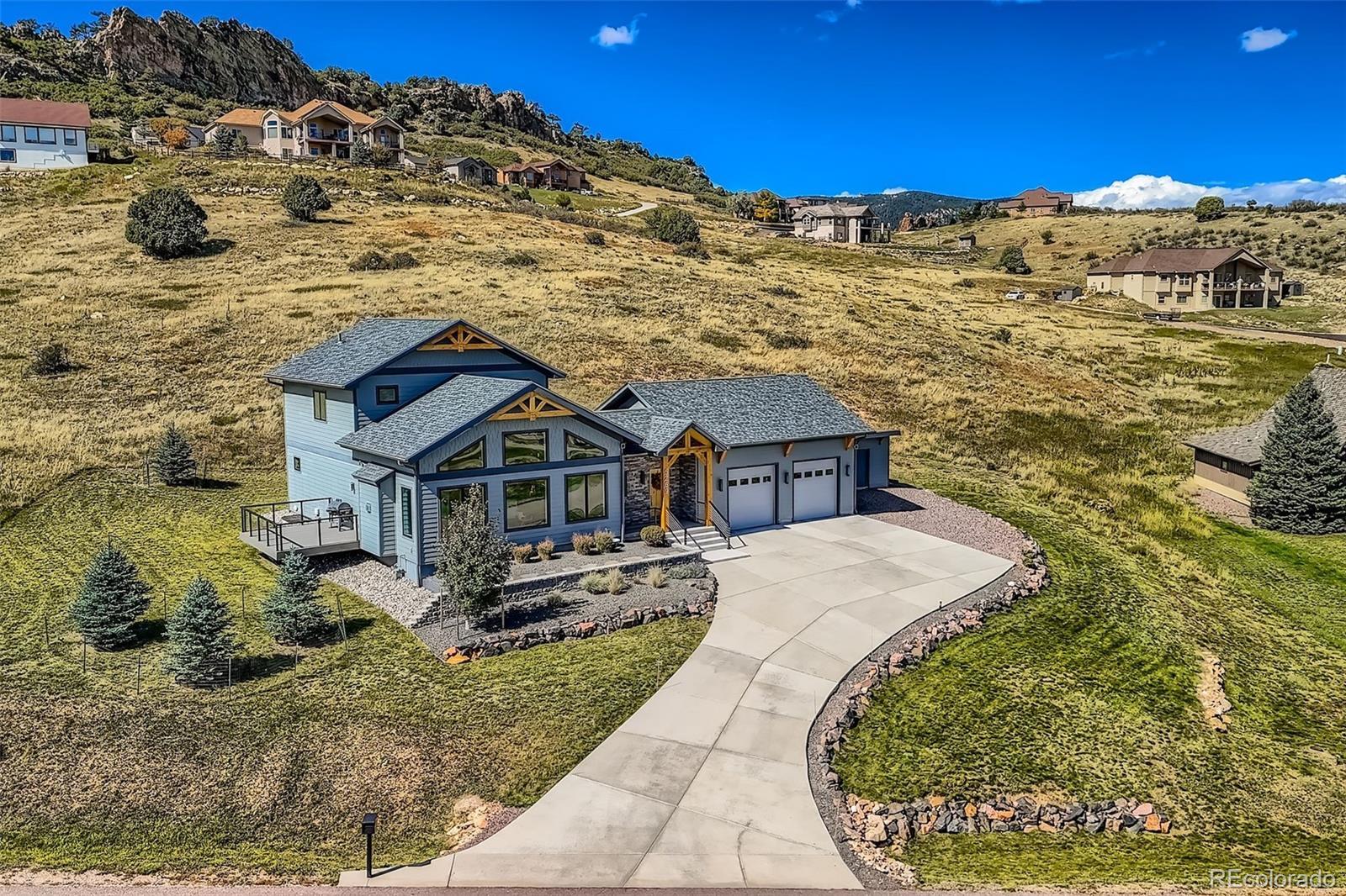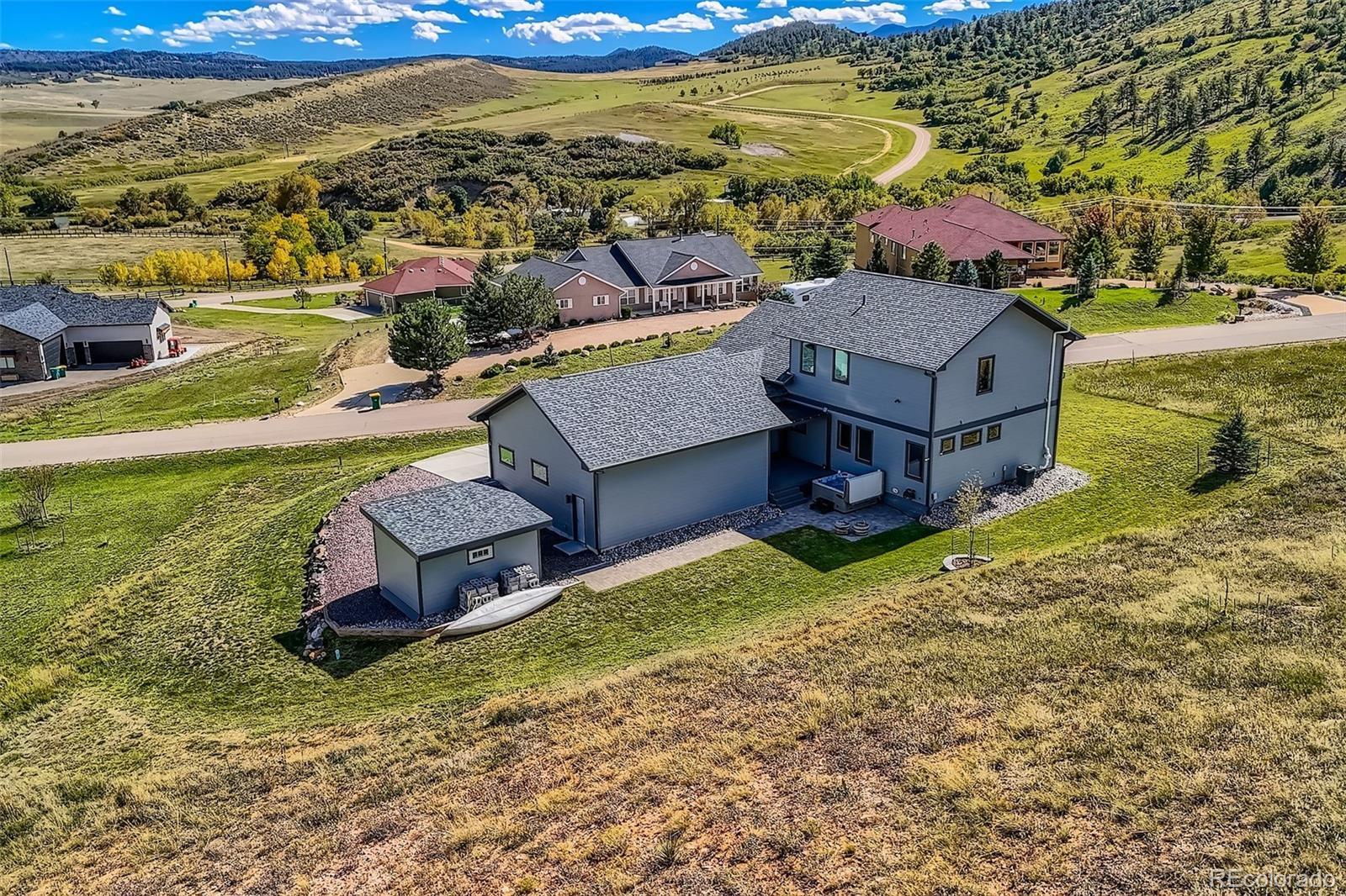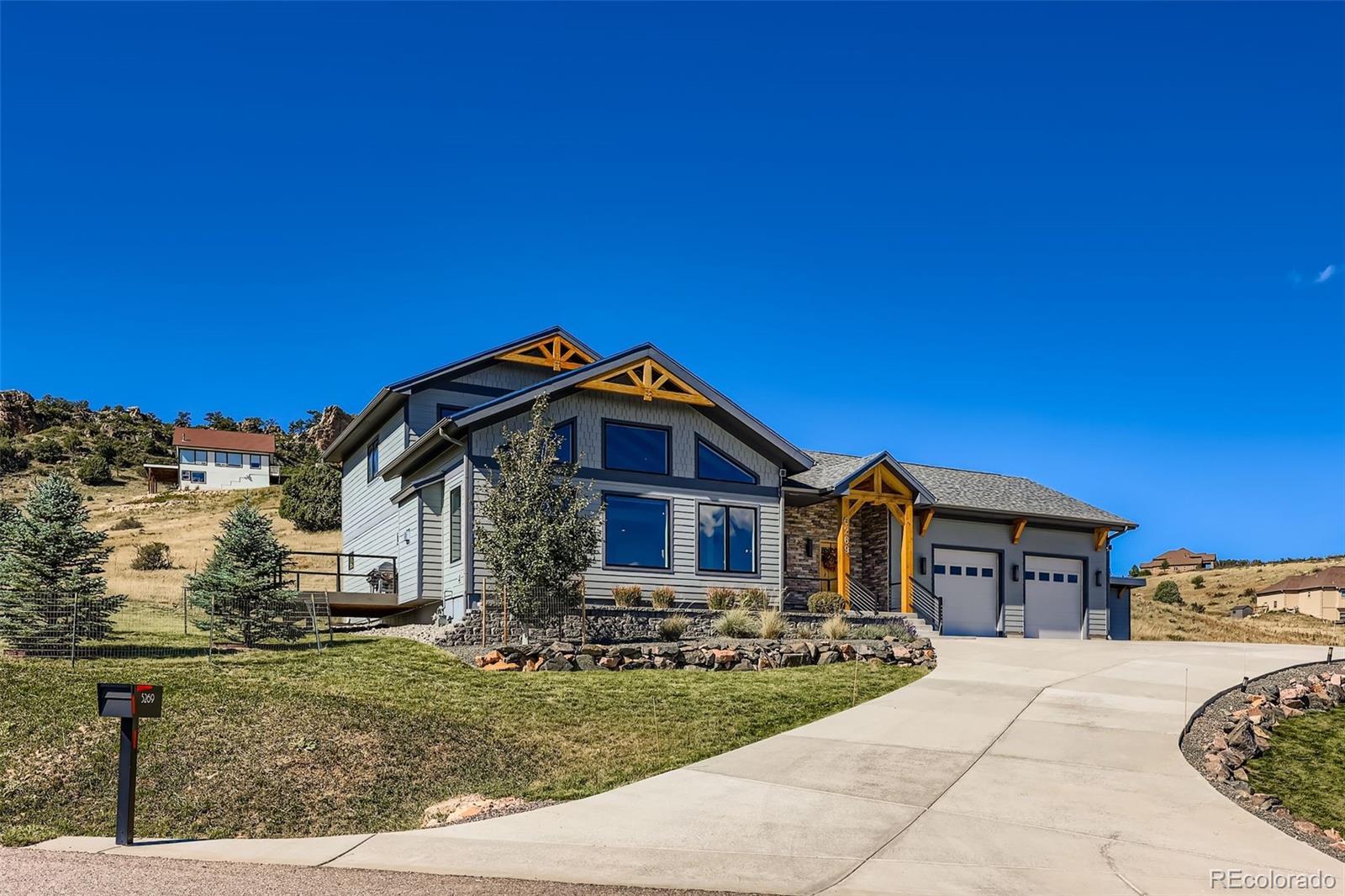 Welcome to your Colorado Dream Home, where rustic charm meets contemporary elegance. With nearly 3,800 finished sq ft, this Timber Frame Hybrid offers 4 bedrooms, 4 bathrooms, and convenient main-level living, all set on a 1-acre lot with sweeping views of Perry Park, Dawson Butte, and dramatic red rock formations. Pella windows, oak hardwood floors, and 8x8 exposed beams create a warm yet sophisticated feel. The vaulted great room with timber accents, wood-paneled ceiling, and dry bar with beverage fridge provides the perfect gathering space. The stunning kitchen features concrete countertops, custom cabinetry, tile backsplash, pantry, stainless appliances, and gas range, with a spacious island offering both prep space and casual seating. Interior Timbers are Better Eastern white pine wood. The exterior Timbers are rough sawn western red cedar. The main-level primary suite includes heated tile flooring, a spa-inspired ensuite bath, and a custom walk-in closet. Upstairs, a loft plus two bedrooms share a full bath, while the finished lower level offers a family/flex room, additional bedroom, and ¾ bath—perfect for guests or multi-gen living. Enjoy the outdoors with 2 composite decks: one with a pergola and powder-coated shutters for year-round comfort, and another showcasing panoramic views. Additional highlights include Pella windows, insulated garage with attic access, and RV parking with water/sewer/electric hookups. On demand water, steam humidifier, utility sink in basement mech room. Hail resistant architectural roof shingles by Owens Corning Duration. Hail resistant James Hardie cement board siding. Located in desirable Perry Park, one of Douglas County’s premier golf communities, this home offers access to acres of open space, trails, horse stables, and stunning natural scenery. Just 5 mins from Sandstone Ranch Open Space, 20 mins to Castle Rock, and 40 mins to DTC or Colorado Springs—this property blends privacy, beauty, and convenience.