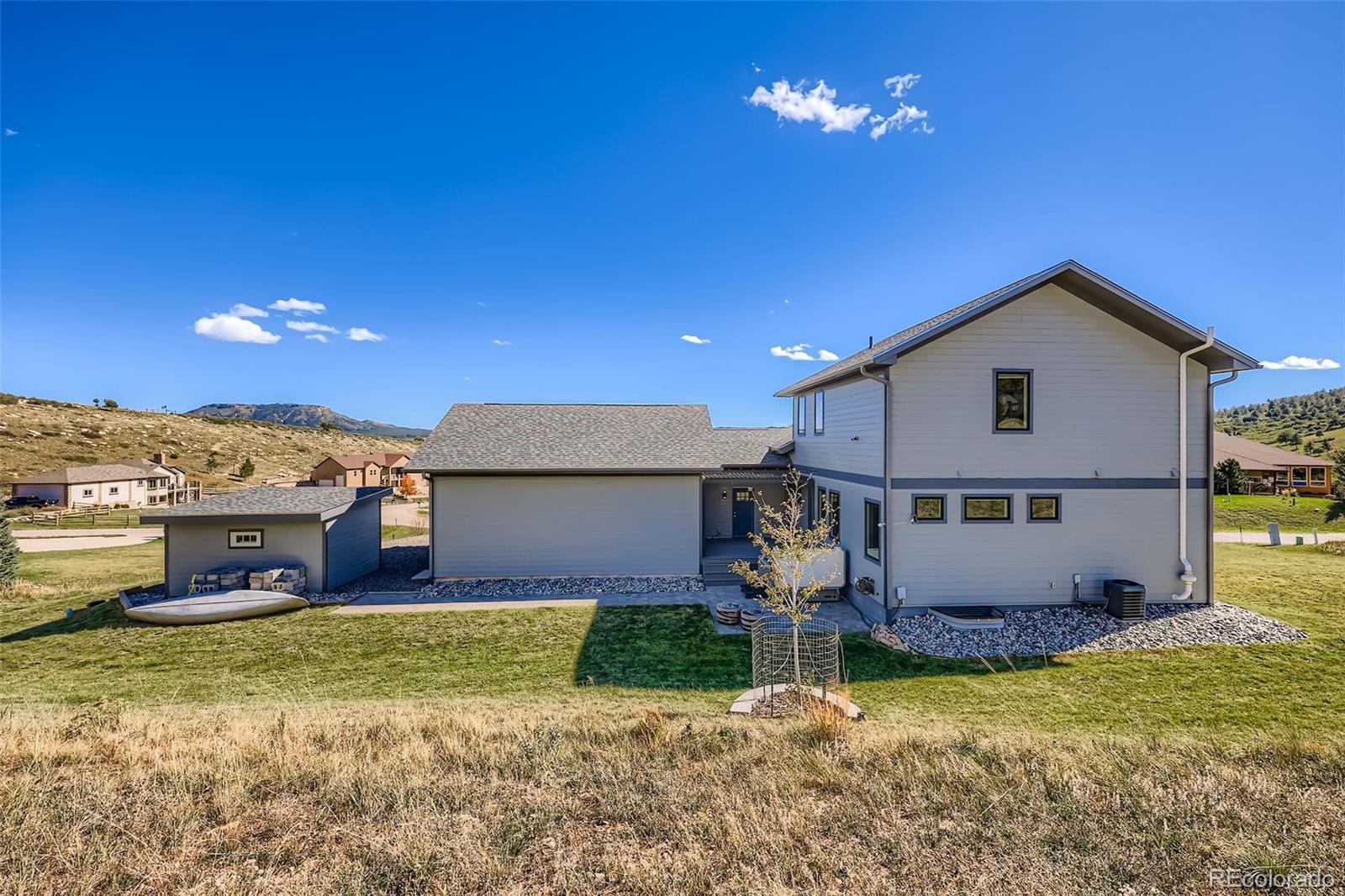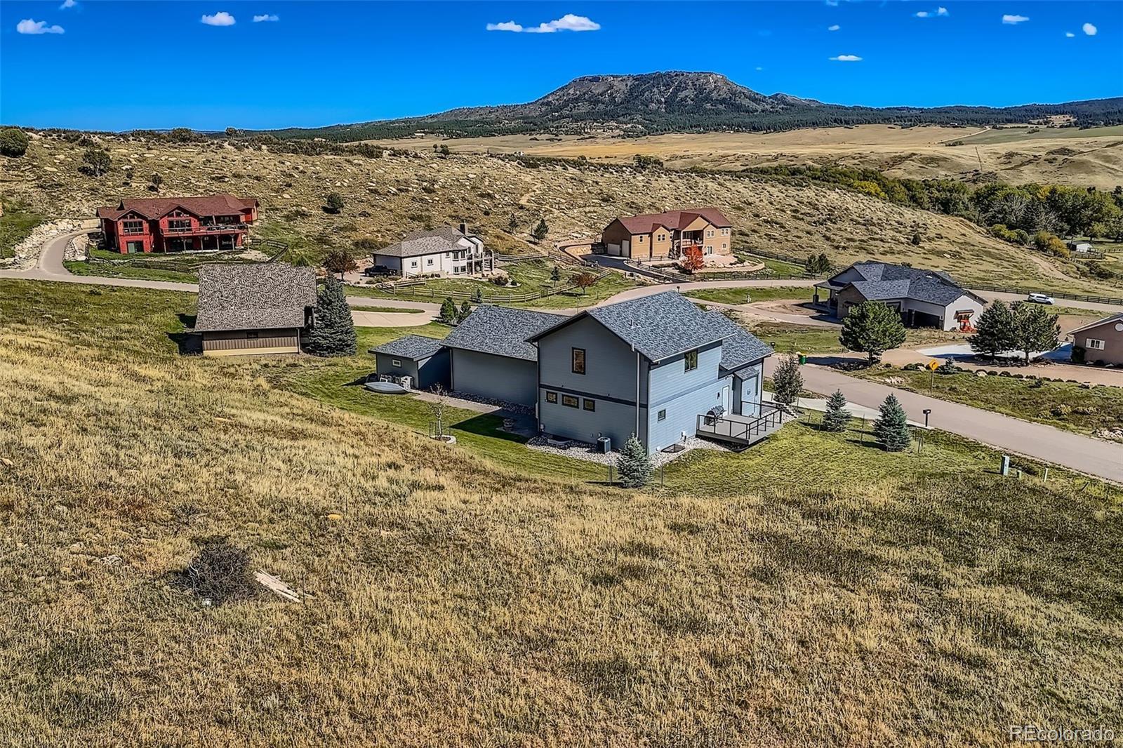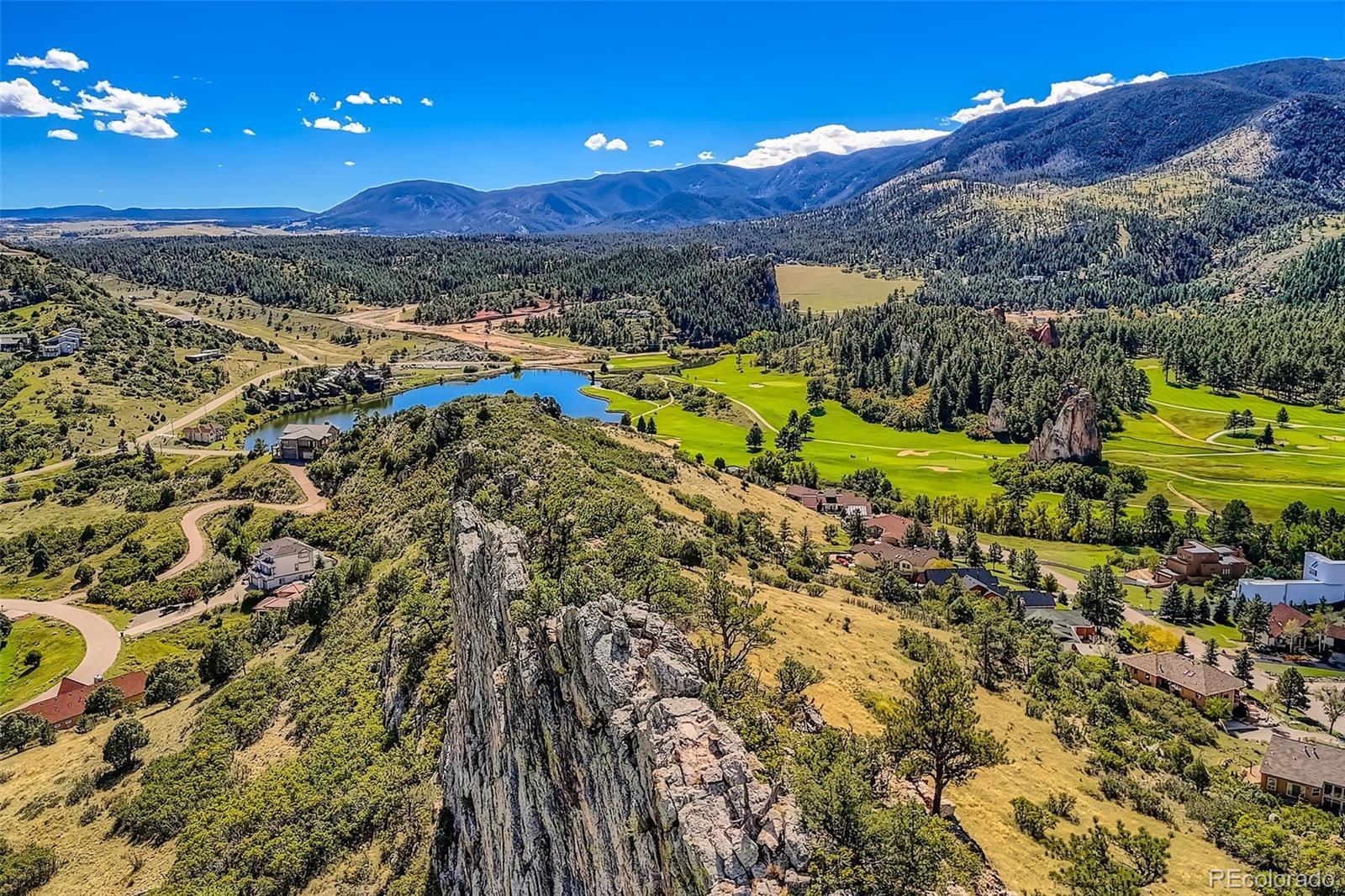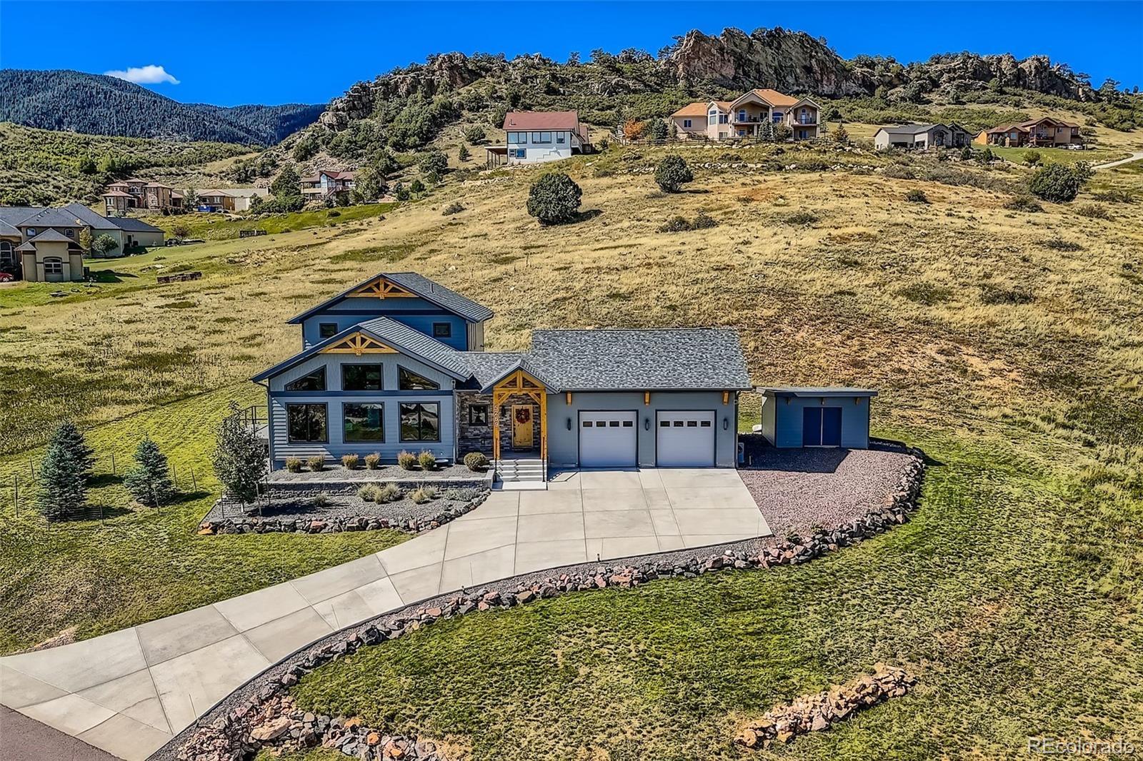 Welcome to your Colorado Dream Home, where rustic charm meets contemporary elegance. With nearly 3,800 finished sq ft, this Timber Frame Hybrid offers 4 bedrooms, 4 bathrooms, and convenient main-level living, all set on a 1-acre lot with sweeping views of Perry Park, Dawson Butte, and dramatic red rock formations. Pella windows, oak hardwood floors, and 8x8 exposed beams create a warm yet sophisticated feel. The vaulted great room with timber accents, wood-paneled ceiling, and dry bar with beverage fridge provides the perfect gathering space. The stunning kitchen features concrete countertops, custom cabinetry, tile backsplash, pantry, stainless appliances, and gas range, with a spacious island offering both prep space and casual seating. Interior Timbers are Better Eastern white pine wood. The exterior Timbers are rough sawn western red cedar. The main-level primary suite includes heated tile flooring, a spa-inspired ensuite bath, and a custom walk-in closet. Upstairs, a loft plus two bedrooms share a full bath, while the finished lower level offers a family/flex room, additional bedroom, and ¾ bath—perfect for guests or multi-gen living. Enjoy the outdoors with 2 composite decks: one with a pergola and powder-coated shutters for year-round comfort, and another showcasing panoramic views. Additional highlights include Pella windows, insulated garage with attic access, and RV parking with water/sewer/electric hookups. On demand water, steam humidifier, utility sink in basement mech room. Hail resistant architectural roof shingles by Owens Corning Duration. Hail resistant James Hardie cement board siding. Located in desirable Perry Park, one of Douglas County’s premier golf communities, this home offers access to acres of open space, trails, horse stables, and stunning natural scenery. Just 5 mins from Sandstone Ranch Open Space, 20 mins to Castle Rock, and 40 mins to DTC or Colorado Springs—this property blends privacy, beauty, and convenience.