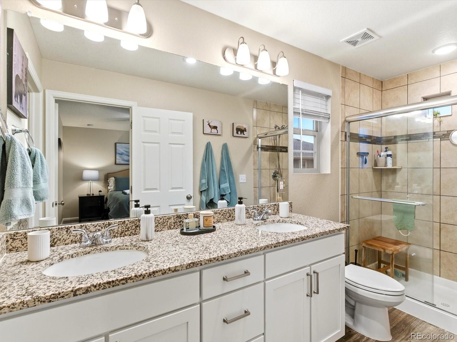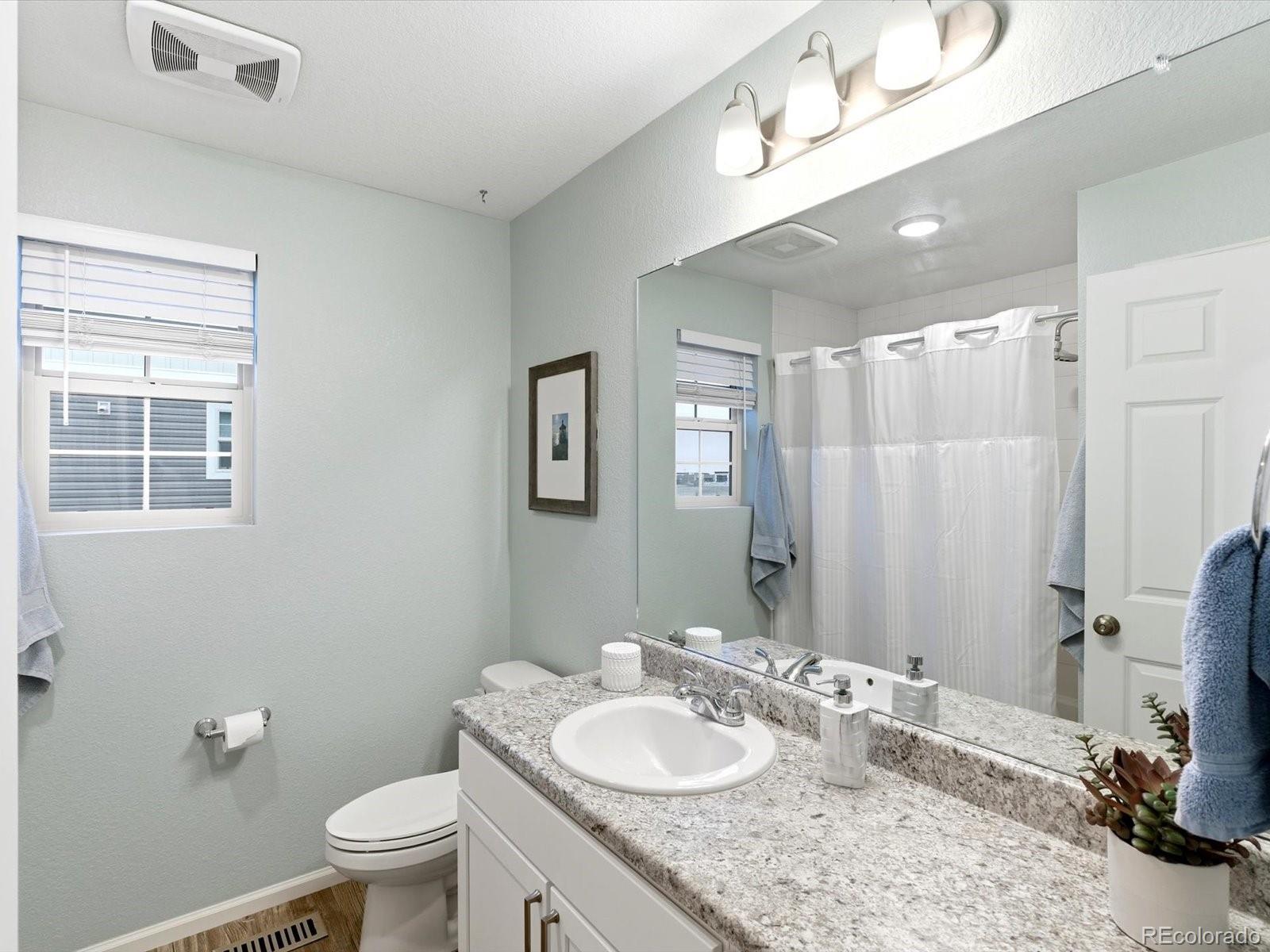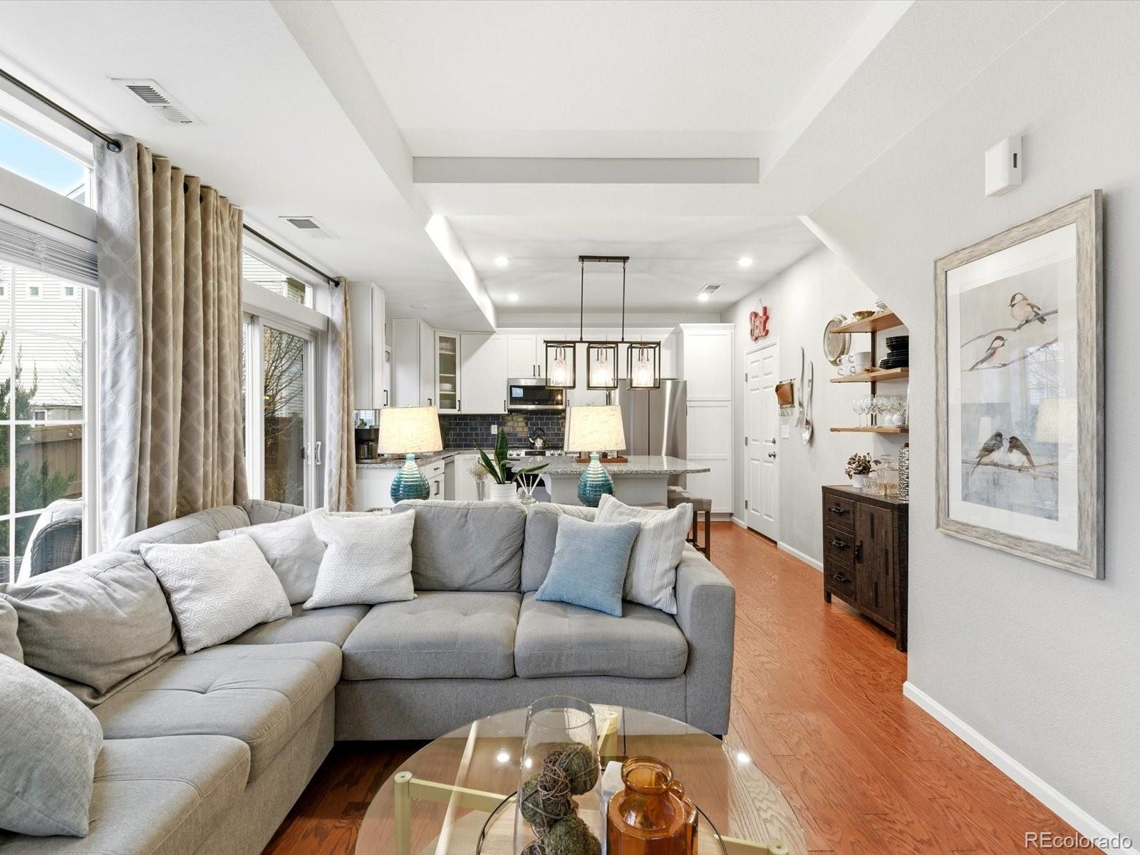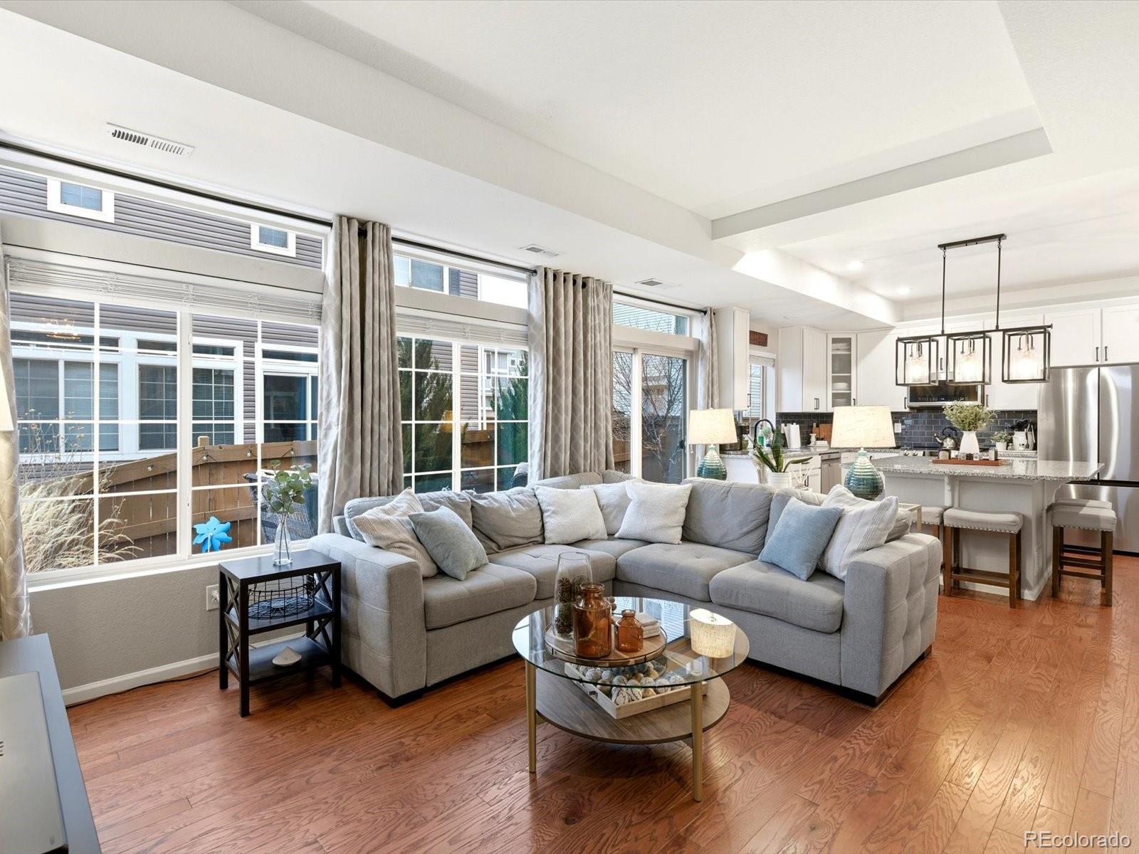 Welcome to this beautiful Reunion home, a home designed to be lived in and loved. Living in Reunion means more than just owning a home; it's about enjoying a lifestyle with two community pools, parks, multiple schools, lakes and trails galore, a well appointed rec center, a tennis/pickleball court and countless activities! The main level is bright and open, creating a natural flow that makes everyday life feel effortless. The kitchen anchors the space, with a generous granite island that easily becomes the hub for meals, homework, weekend baking, and long conversations. It opens directly to the living area, so whether you’re hosting friends or enjoying a quiet night in. A conveniently located half bath keeps the main level functional and guest-friendly. Upstairs, the layout is designed for both privacy and flexibility. The primary suite offers a comfortable retreat, a large walk-in closet, and an en-suite bath with double vanities and a walk-in shower. Two additional bedrooms can adapt to your needs—perfect as guest rooms, home offices, or a workout space. A full hallway bath, dedicated laundry room, and linen closet keep the upper level organized and easy to manage. Outside, the backyard extends your living space. The concrete patio is ideal for dining outdoors, grilling, or relaxing under the shade of mature trees. Planter boxes invite gardening, while the fire pit sets the scene for cozy evenings and casual gatherings. The wrap-around front porch offers another place to enjoy the outdoors, whether it’s morning coffee, sunset views, or watching the neighborhood come to life. A two-car garage with built-in shelving keeps storage streamlined, and ample street parking on both Waco and Walden makes hosting a breeze. Schools, shopping and restaurants nearby. Easy access to E470, I76 and Denver International Airport. Only 25 minutes to downtown Denver! Don't miss your opportunity to own this lovely home in a spectacular neighborhood!